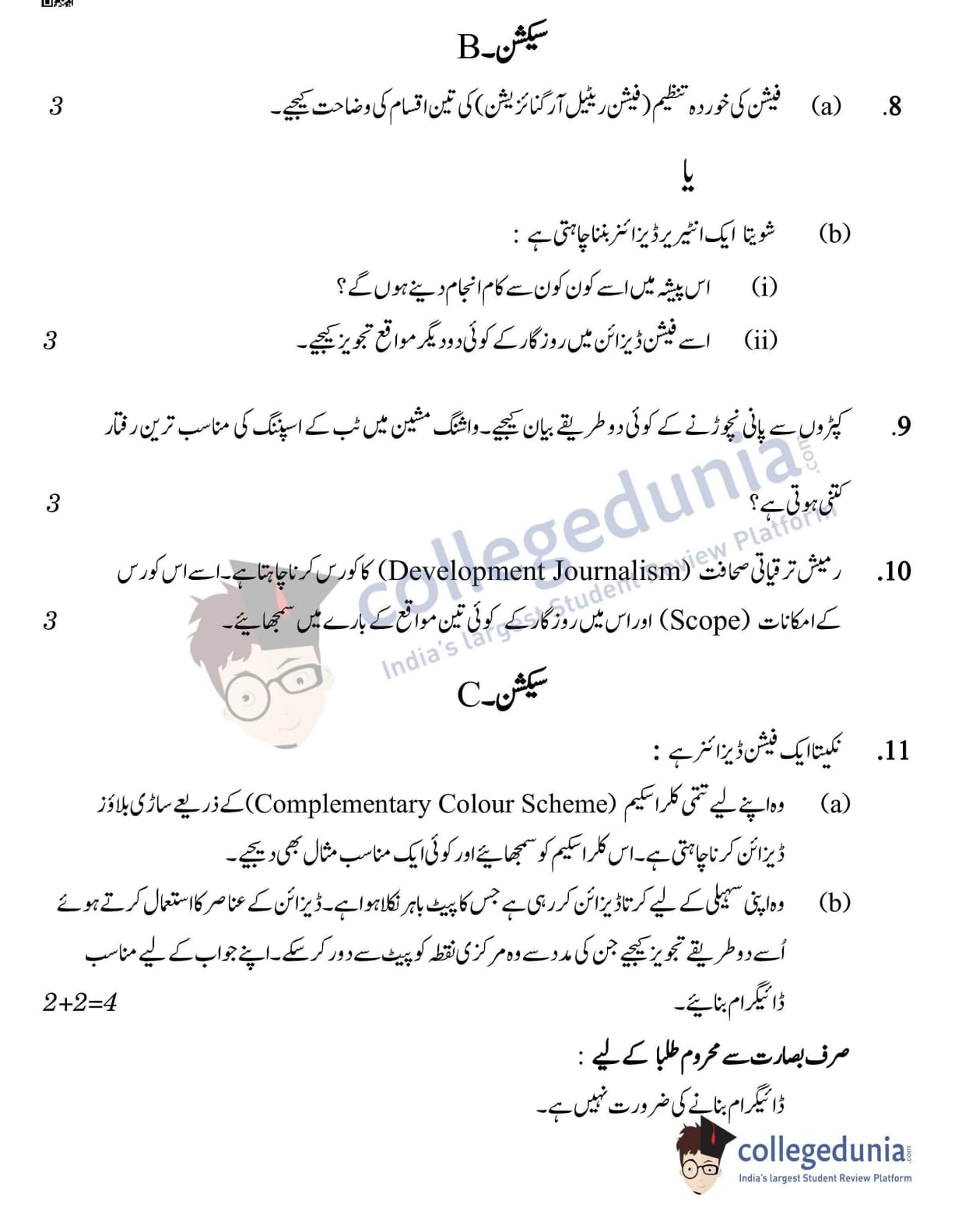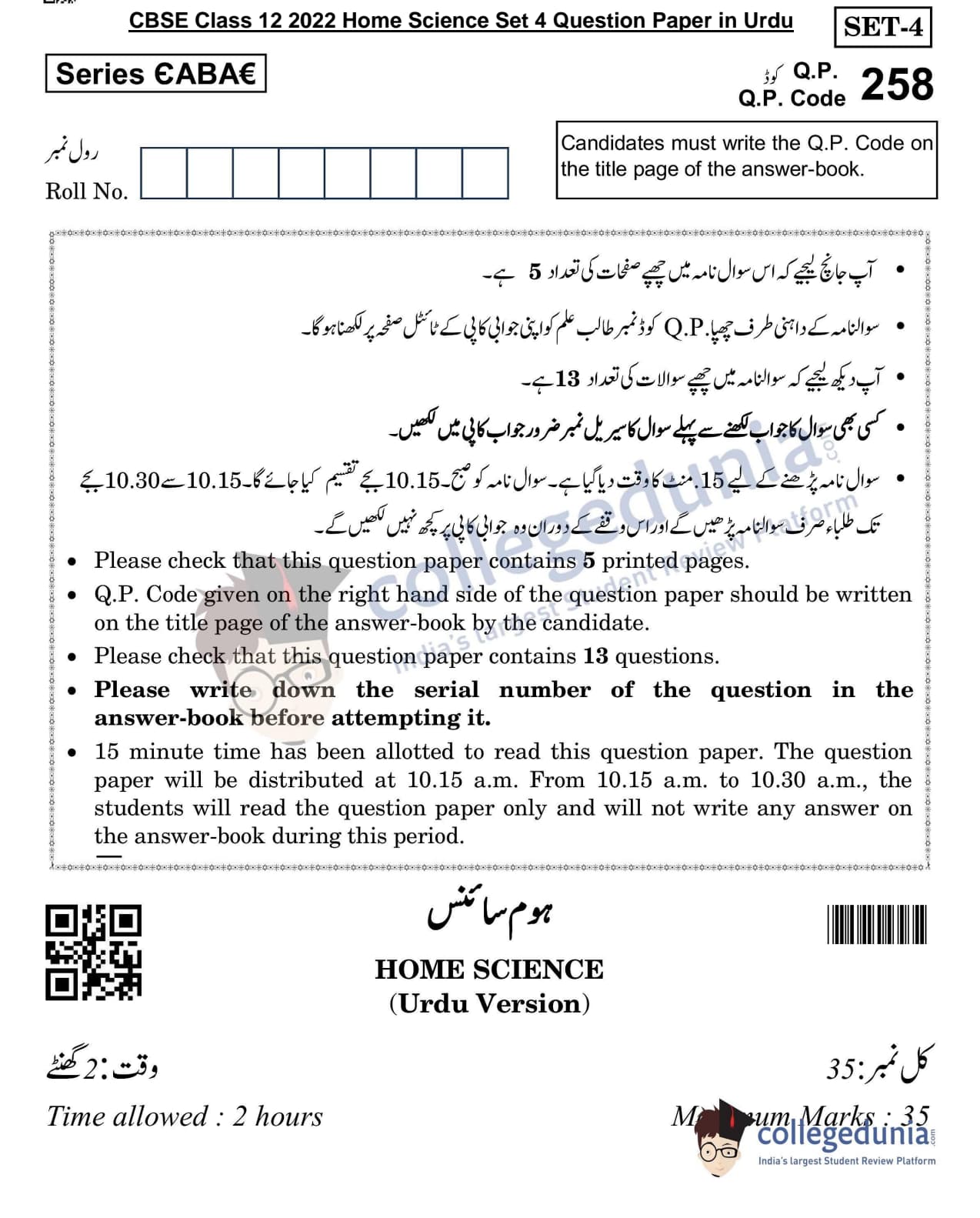 CBSE Class 12 Home Science Question Paper 2022 with Answer Key (May 25, Set 4- Morning Session)