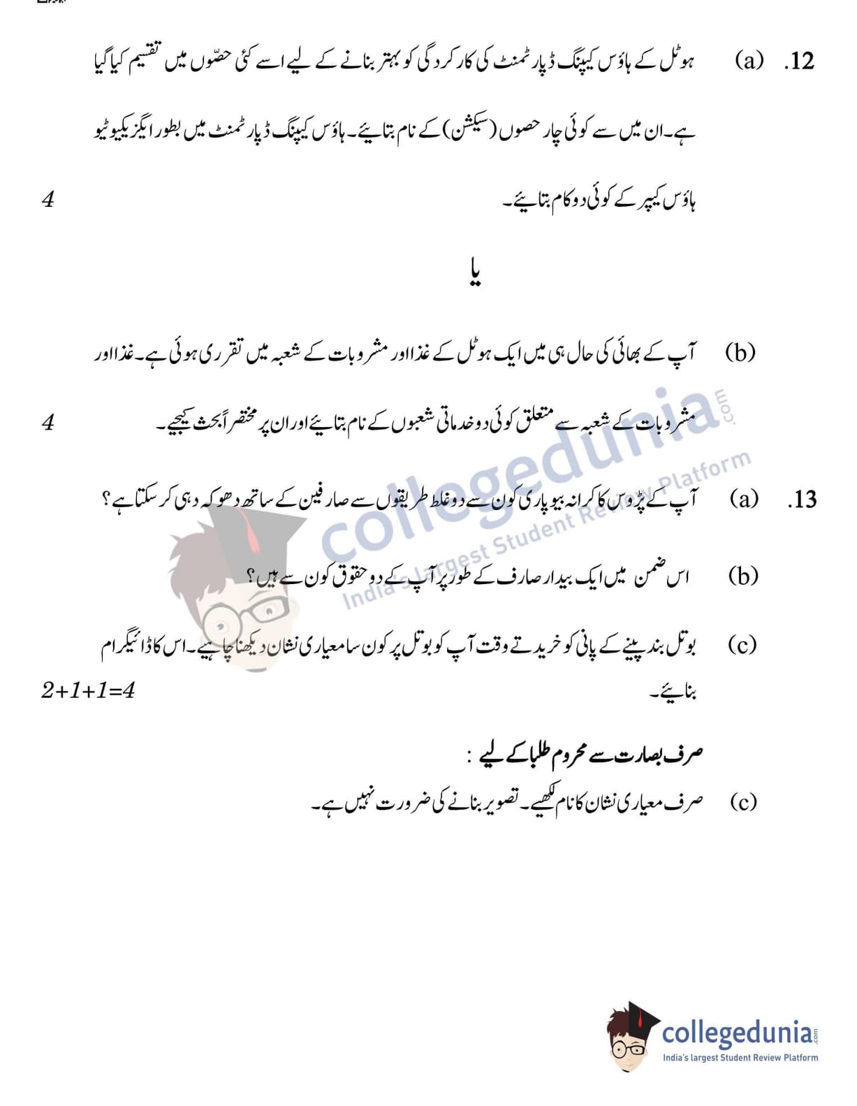 CBSE Class 12 2022 Home Science Question Paper Set 4 with Answer Key pdf is available for download. The exam was conducted by Central Board of Secondary Education on May 25, 2022 in the Morning Session 10:30 AM to 12:30 PM. The medium of paper was Urdu. In terms of difficulty level, CBSE Class 12 Home Science paper was of Moderate level. The question paper comprised a total of 13 questions.