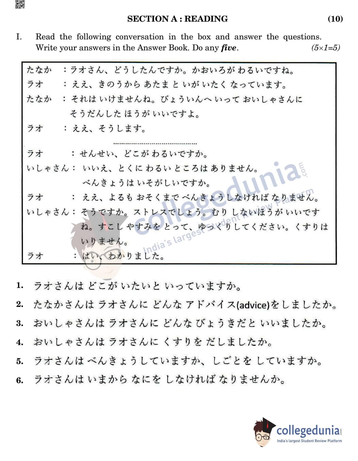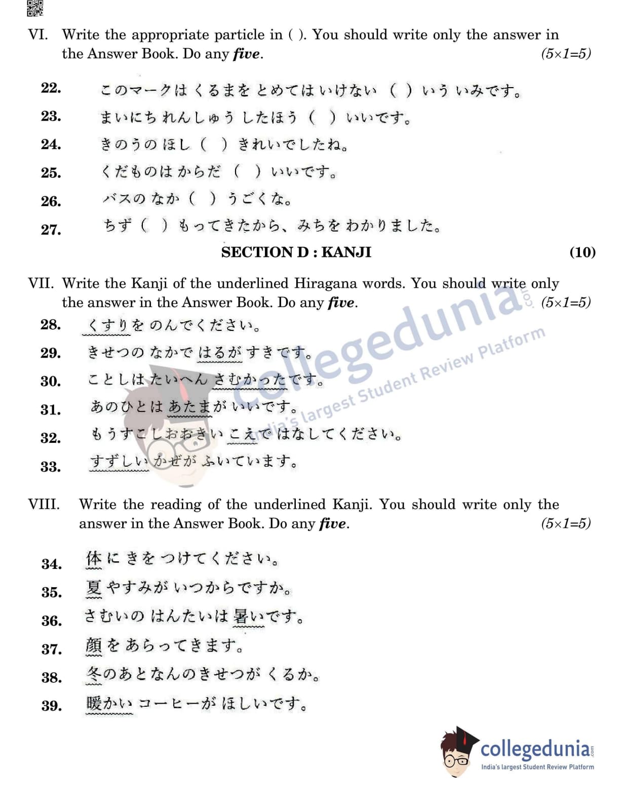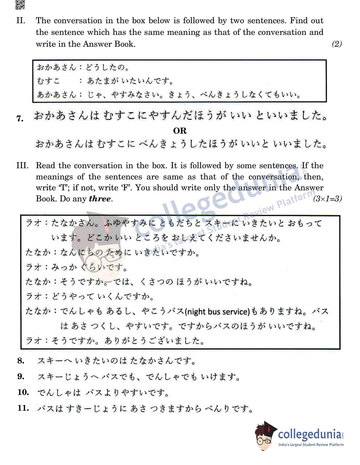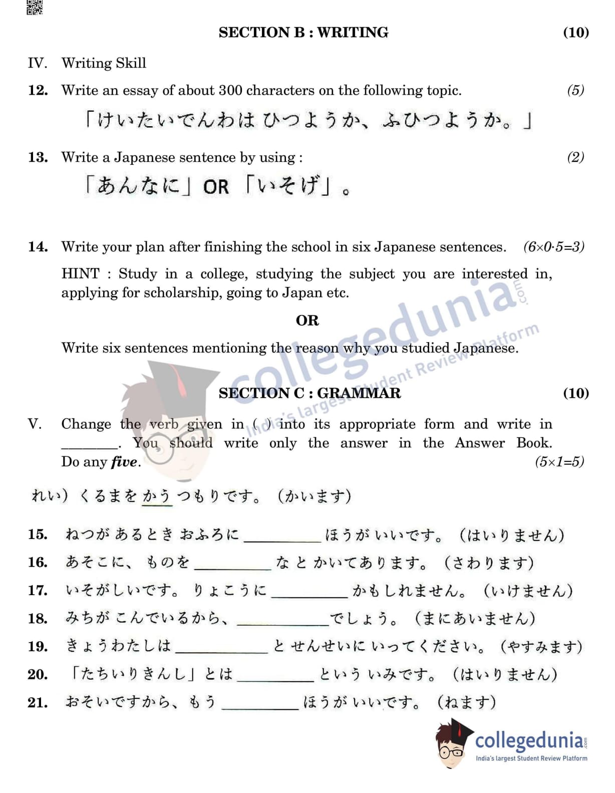 CBSE Class 12 Japanese Question Paper 2022 with Answer Key (May 11, Set 4- Morning Session)