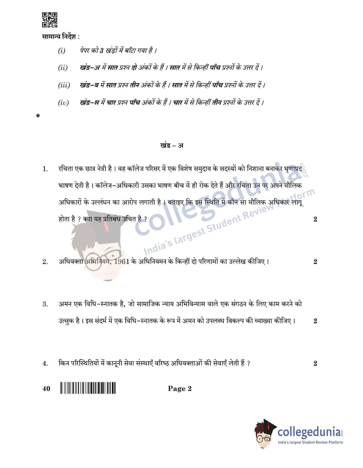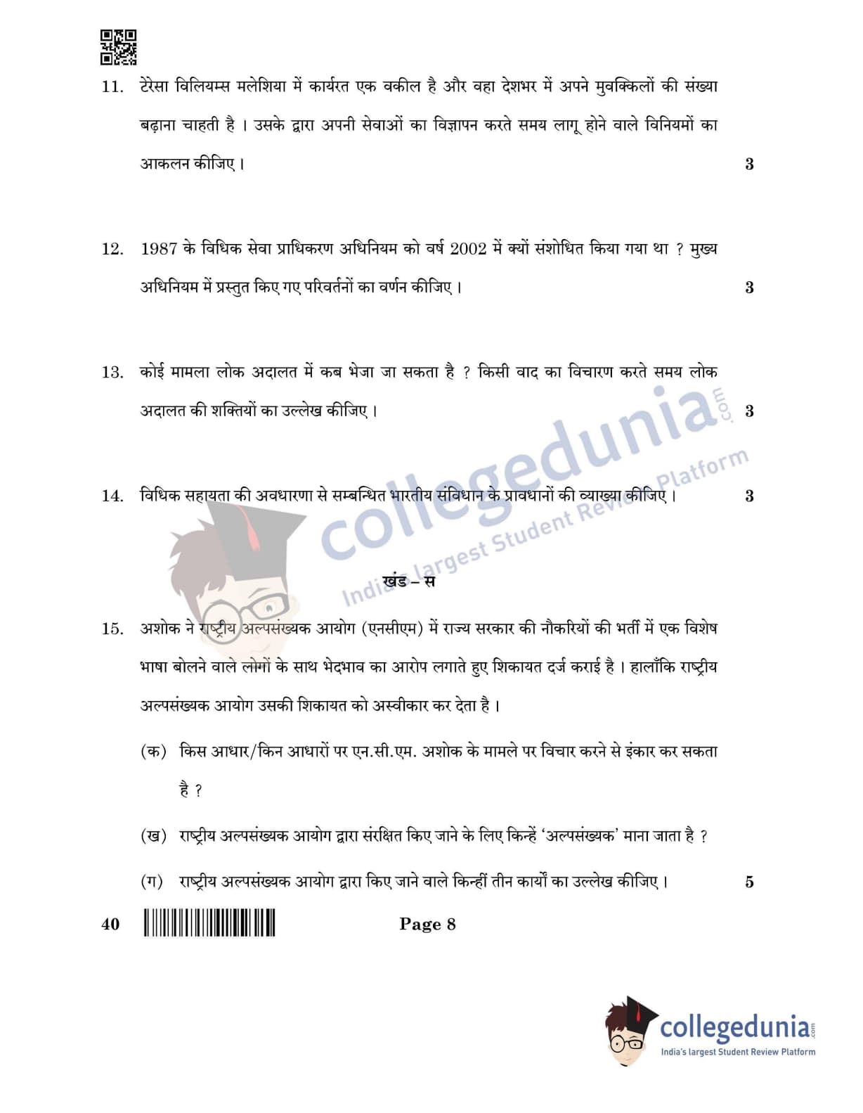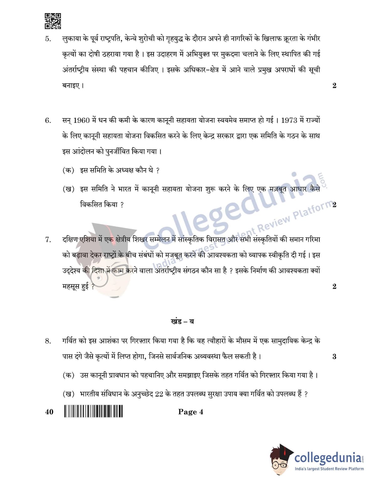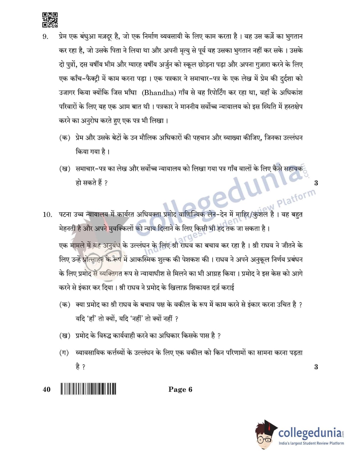 CBSE Class 12 Legal Studies Question Paper 2022 with Answer Key (June 14, Set 4- Morning Session)