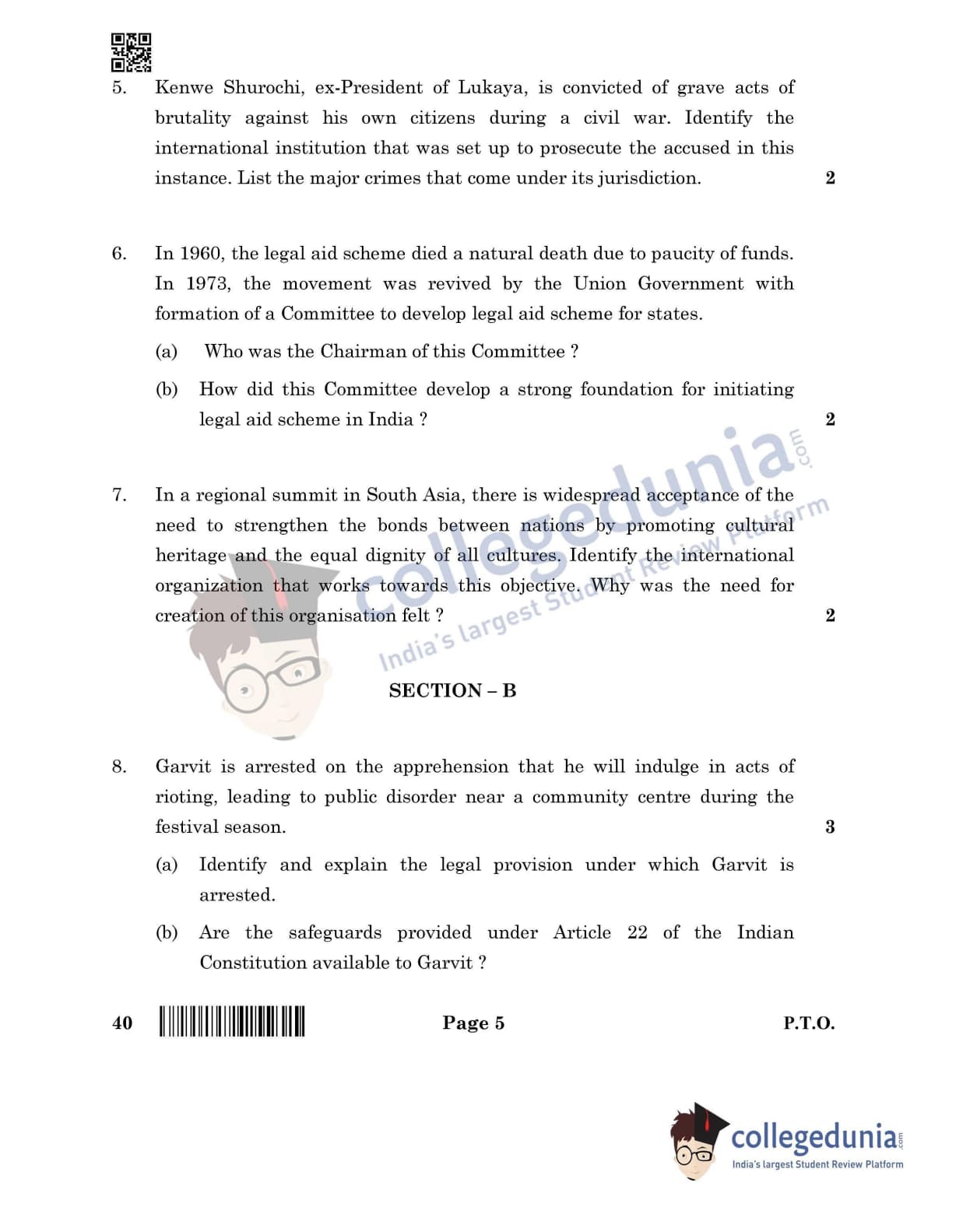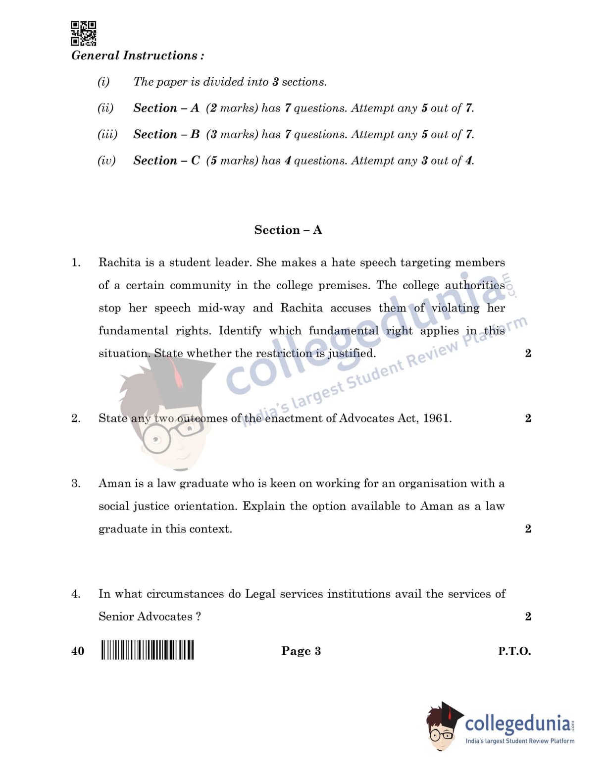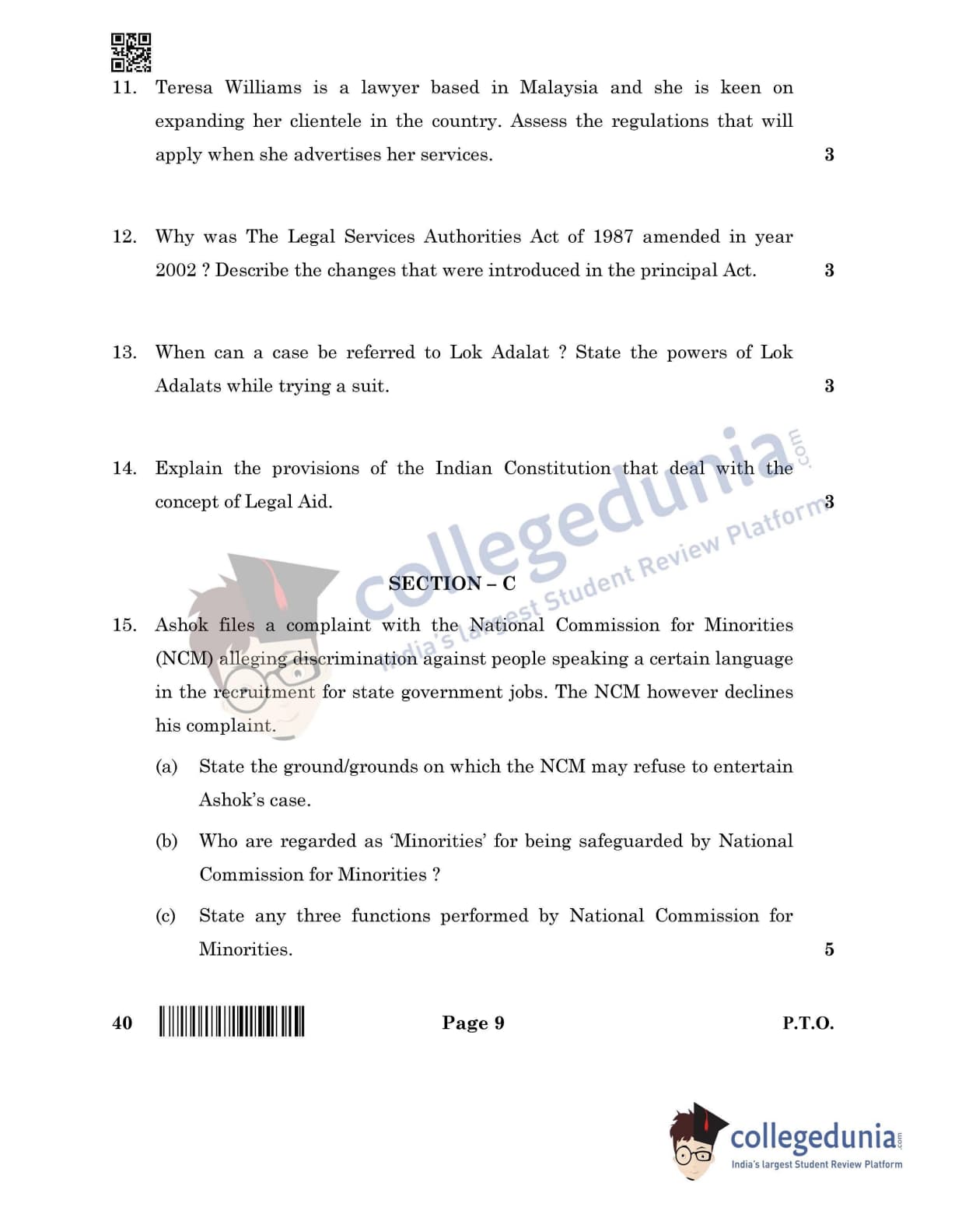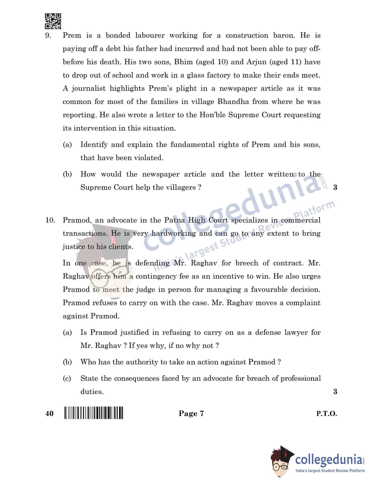 CBSE Class 12 Legal Studies Question Paper 2022 with Answer Key (June 14, Set 4- Morning Session)