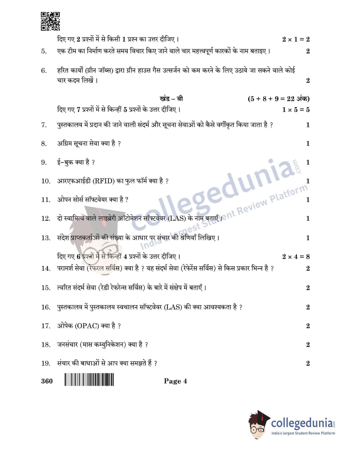 CBSE Class 12 Library & Information Science Question Paper 2022 with Answer Key (April 28, Set 4- Morning Session)