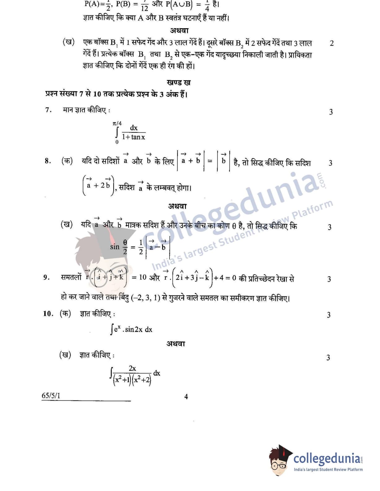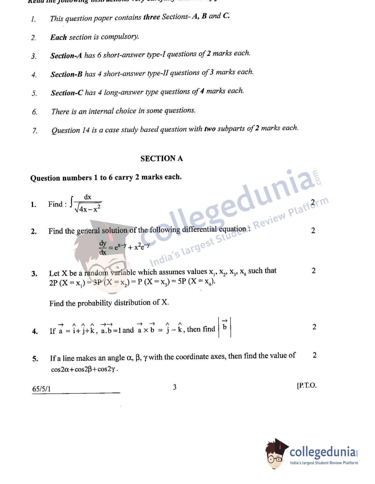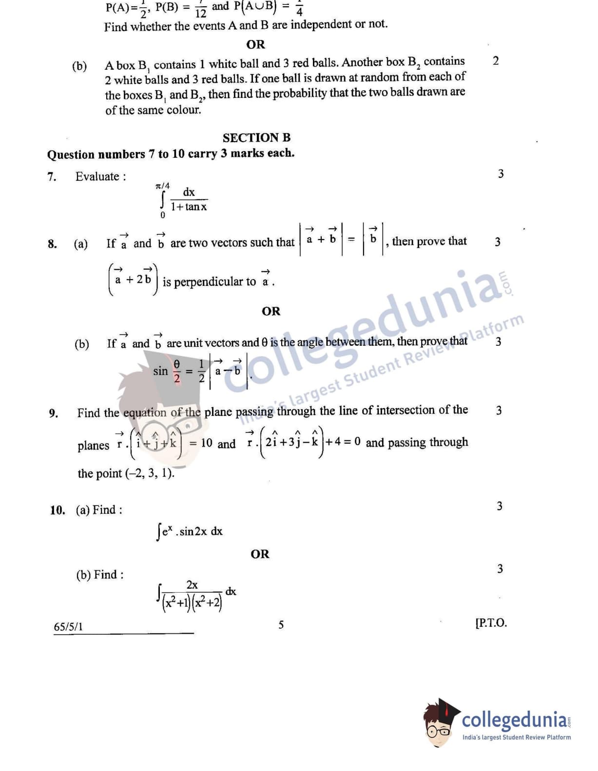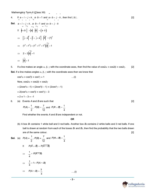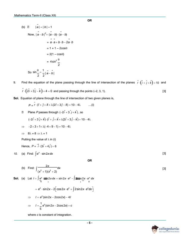 CBSE Class 12 Mathematics Question Paper 2022 with Answer Key (June 7, Set 1 - 65/5/1- Morning Session)