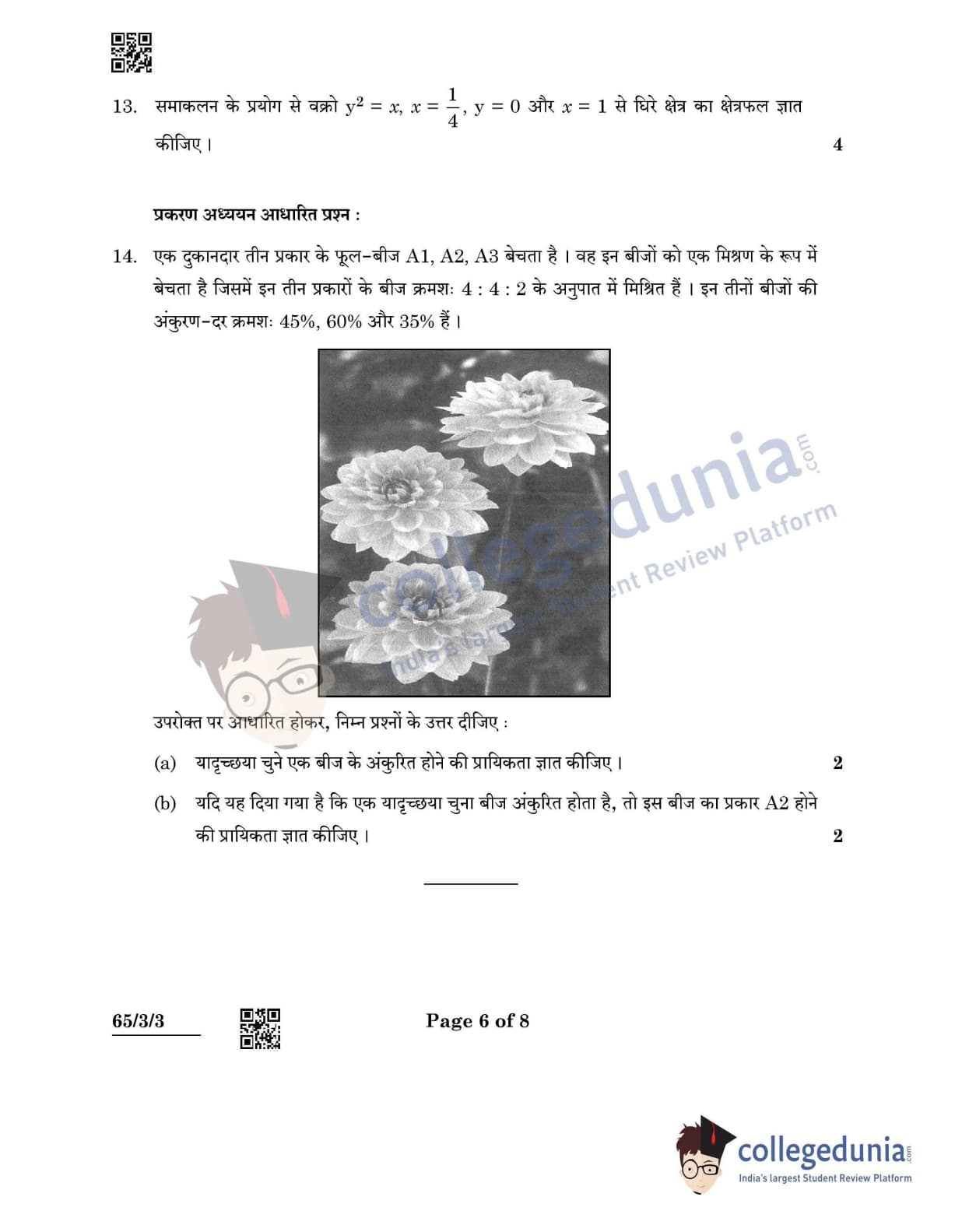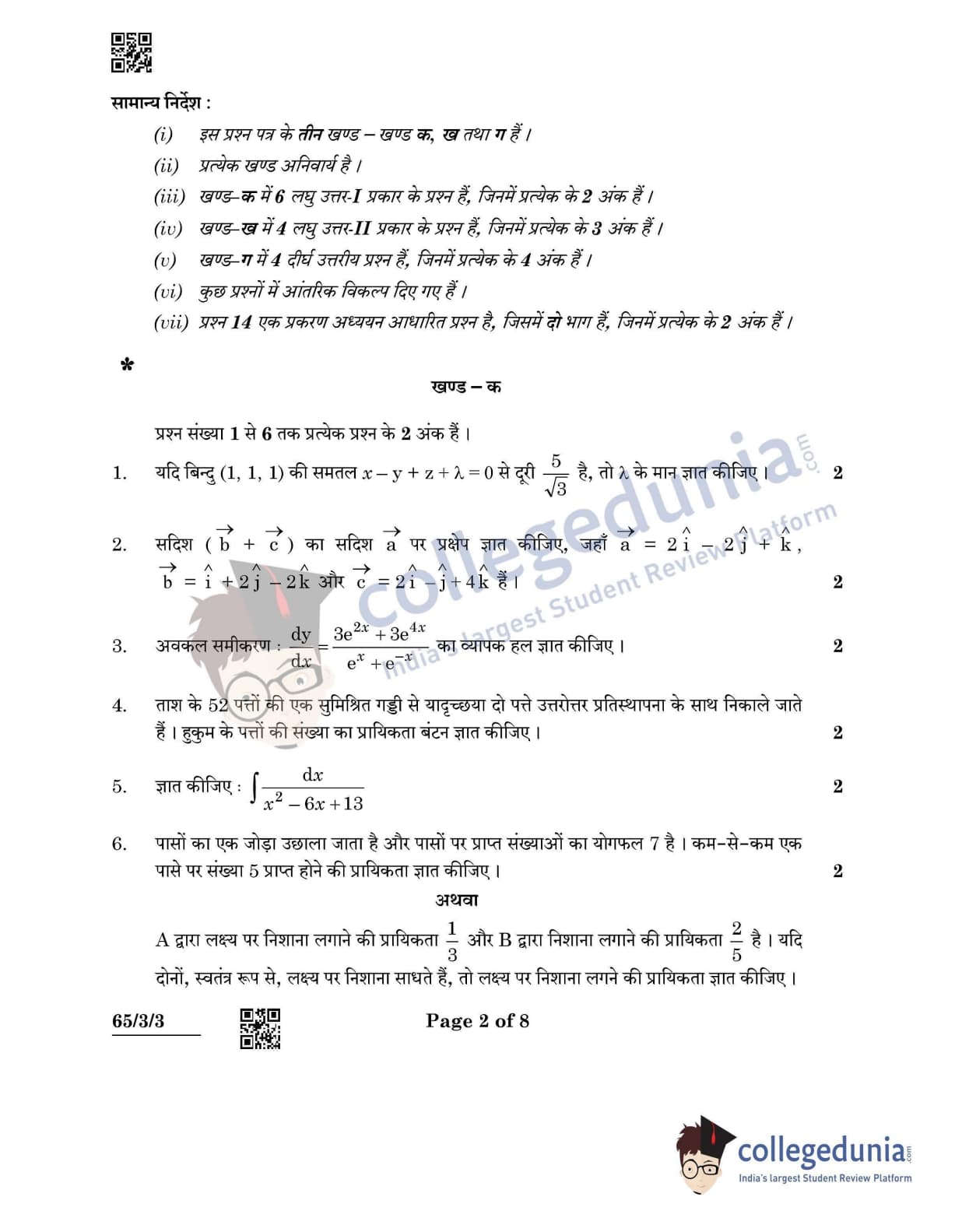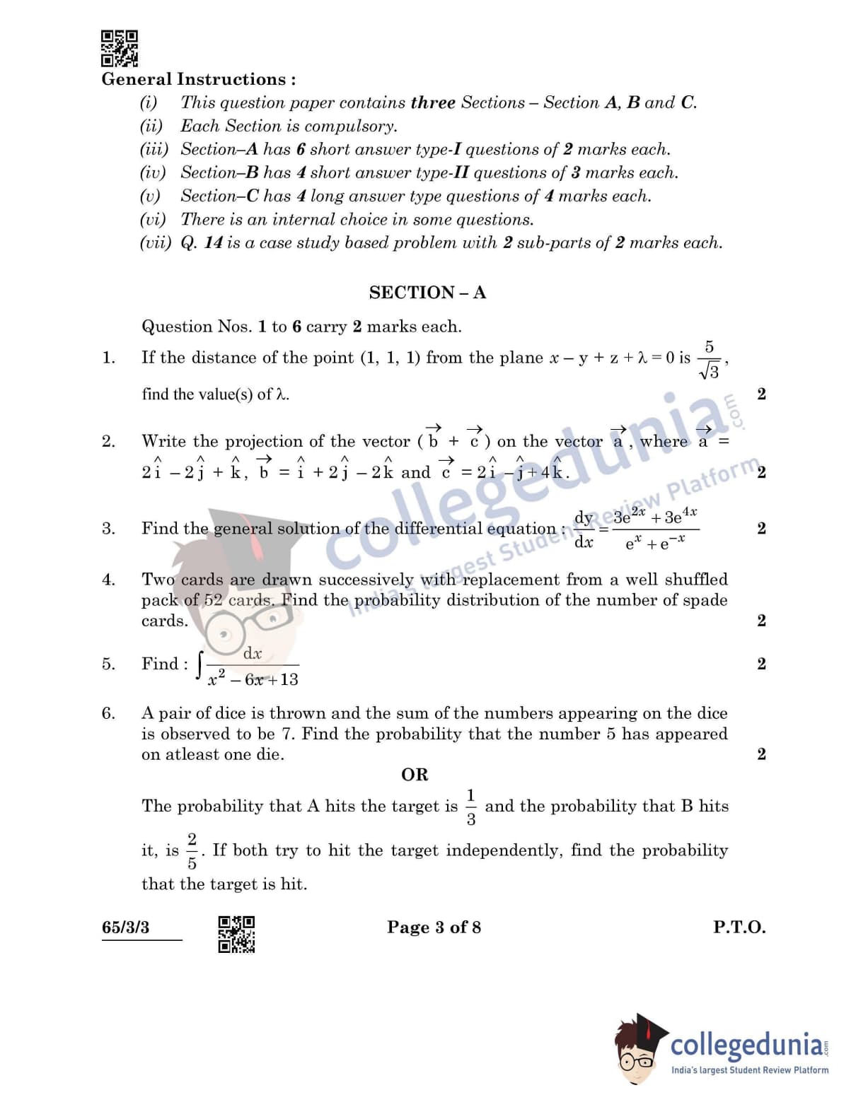 CBSE Class 12 2022 Mathematics Question Paper Set 3 - 65/3/3 with Answer Key pdf is available for download. The exam was conducted by Central Board of Secondary Education on June 7, 2022 in the Morning Session 10:30 AM to 12:30 PM. The medium of paper was English & Hindi. In terms of difficulty level, CBSE Class 12 Mathematics paper was of Moderate level. The question paper comprised a total of 14 questions divided among 3 sections.