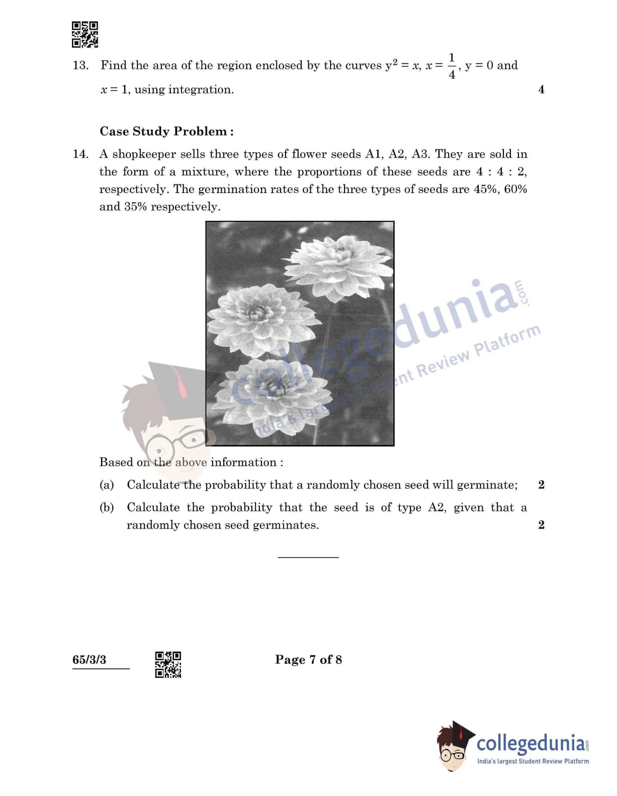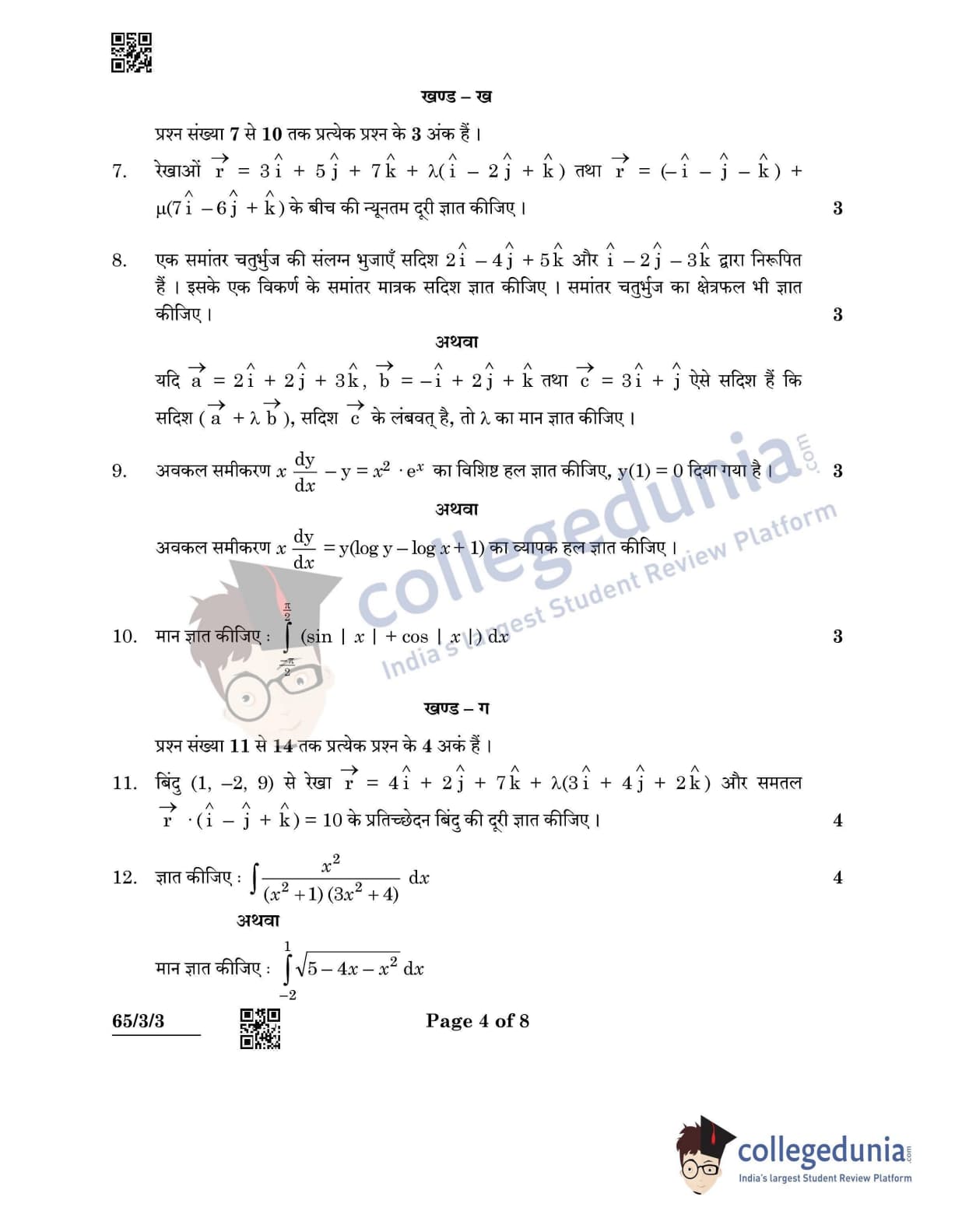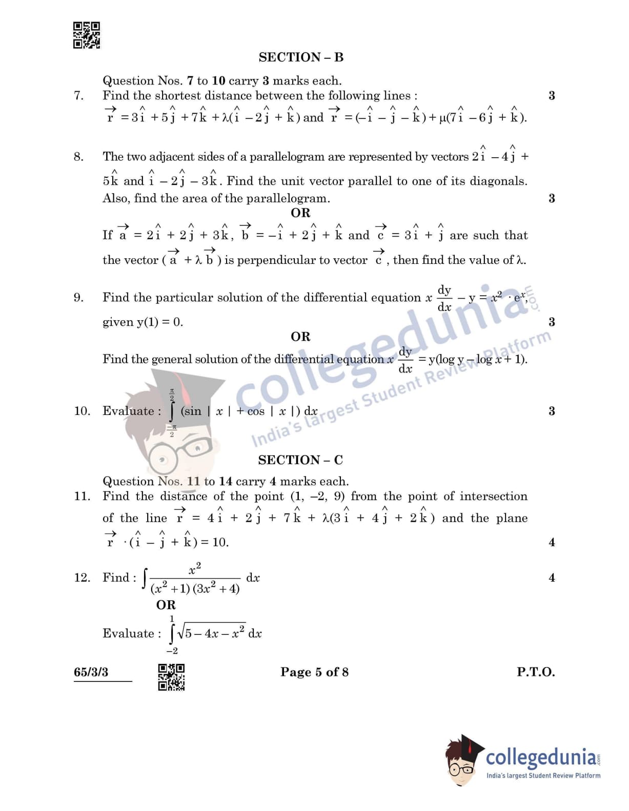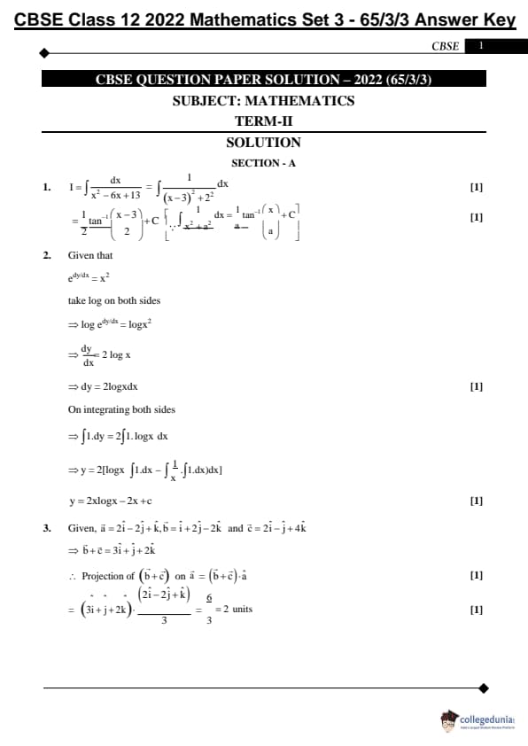 CBSE Class 12 Mathematics Question Paper 2022 with Answer Key (June 7, Set 3 - 65/3/3- Morning Session)