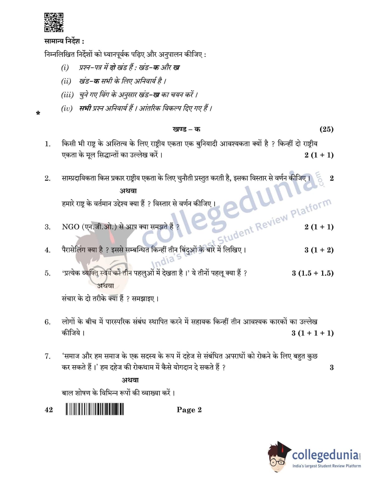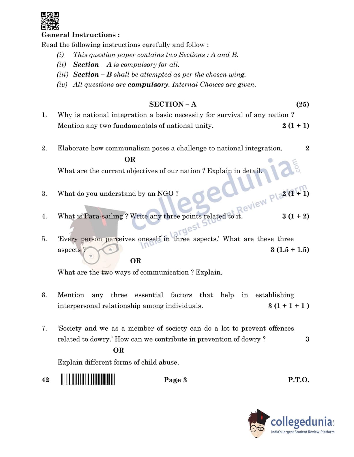 CBSE Class 12 NCC Question Paper 2022 with Answer Key (June 4, Set 4- Morning Session)