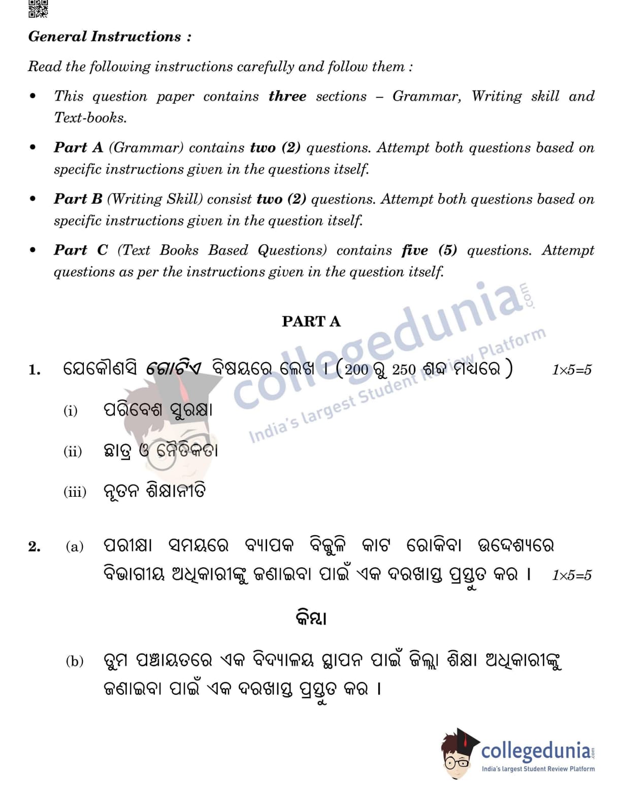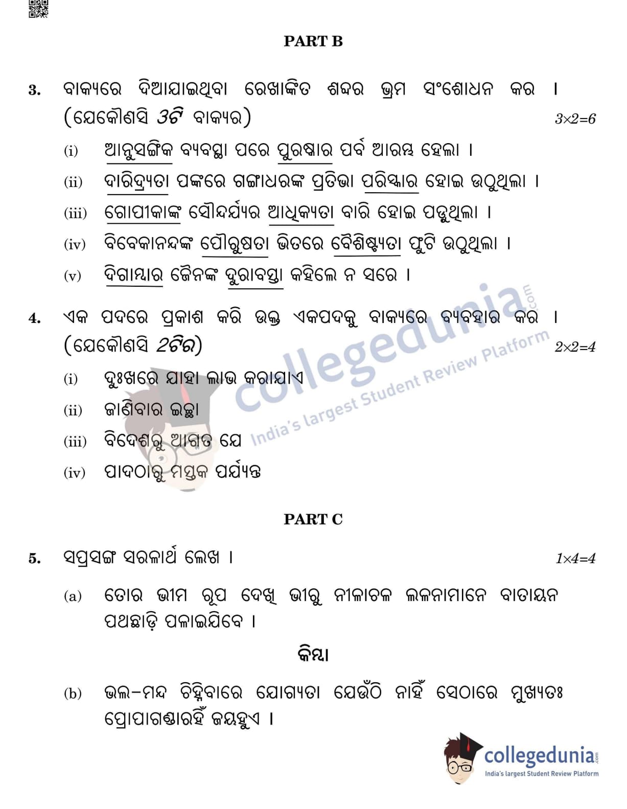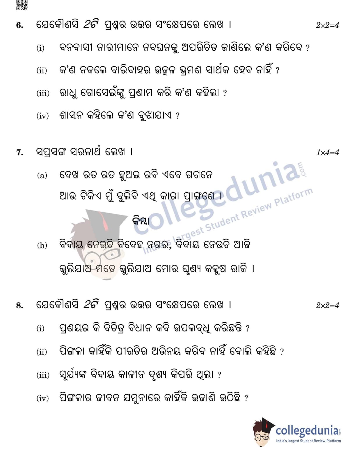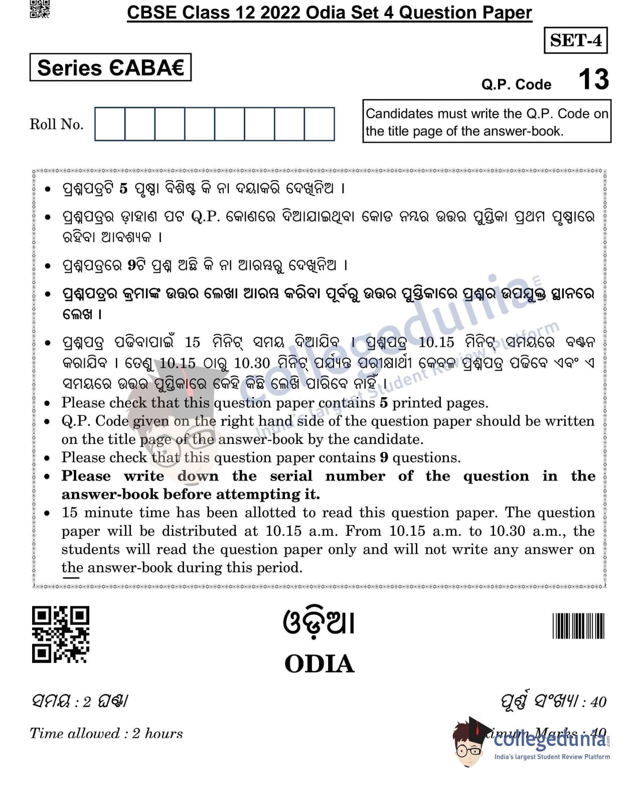 CBSE Class 12 Odia Question Paper 2022 with Answer Key (May 11, Set 4- Morning Session)