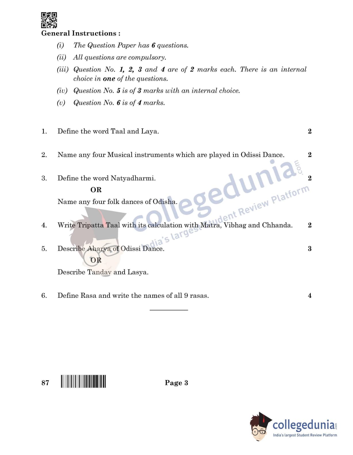 | CBSE Class 12 2022 Odissi Dance Question Paper PDF | CBSE Class 12 2022 Odissi Dance Answer Key PDF |
