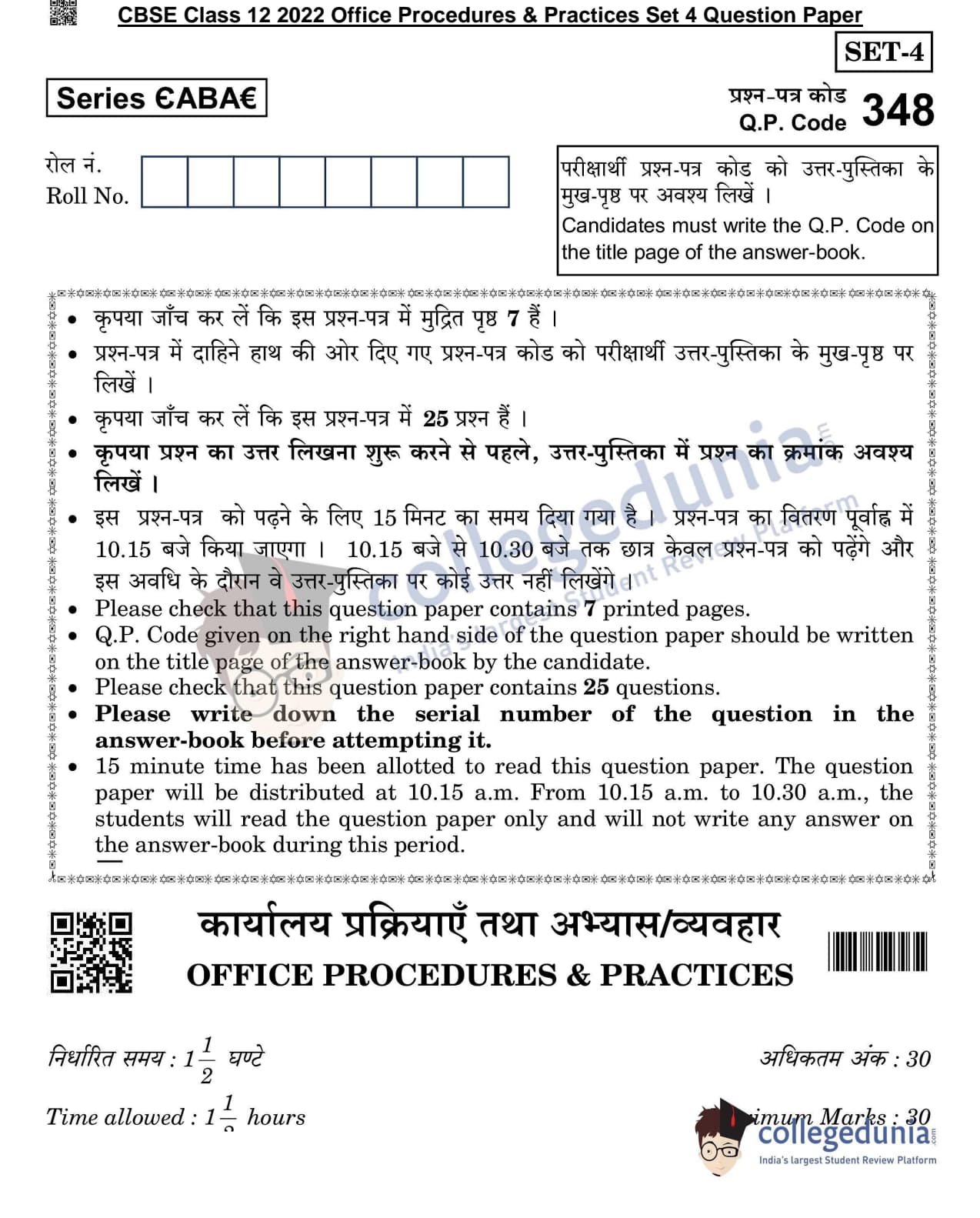 | CBSE Class 12 2022 Office Procedures & Practices Question Paper PDF | CBSE Class 12 2022 Office Procedures & Practices Answer Key PDF |