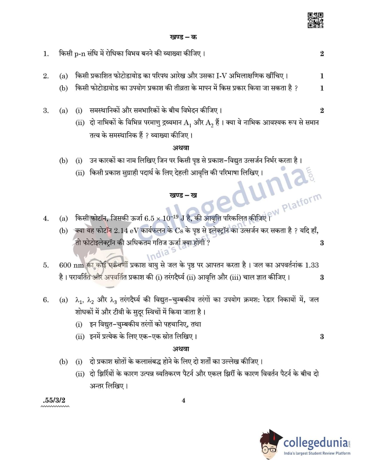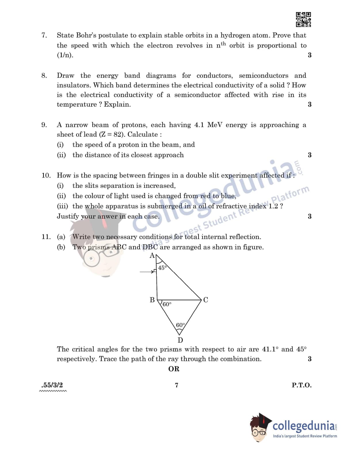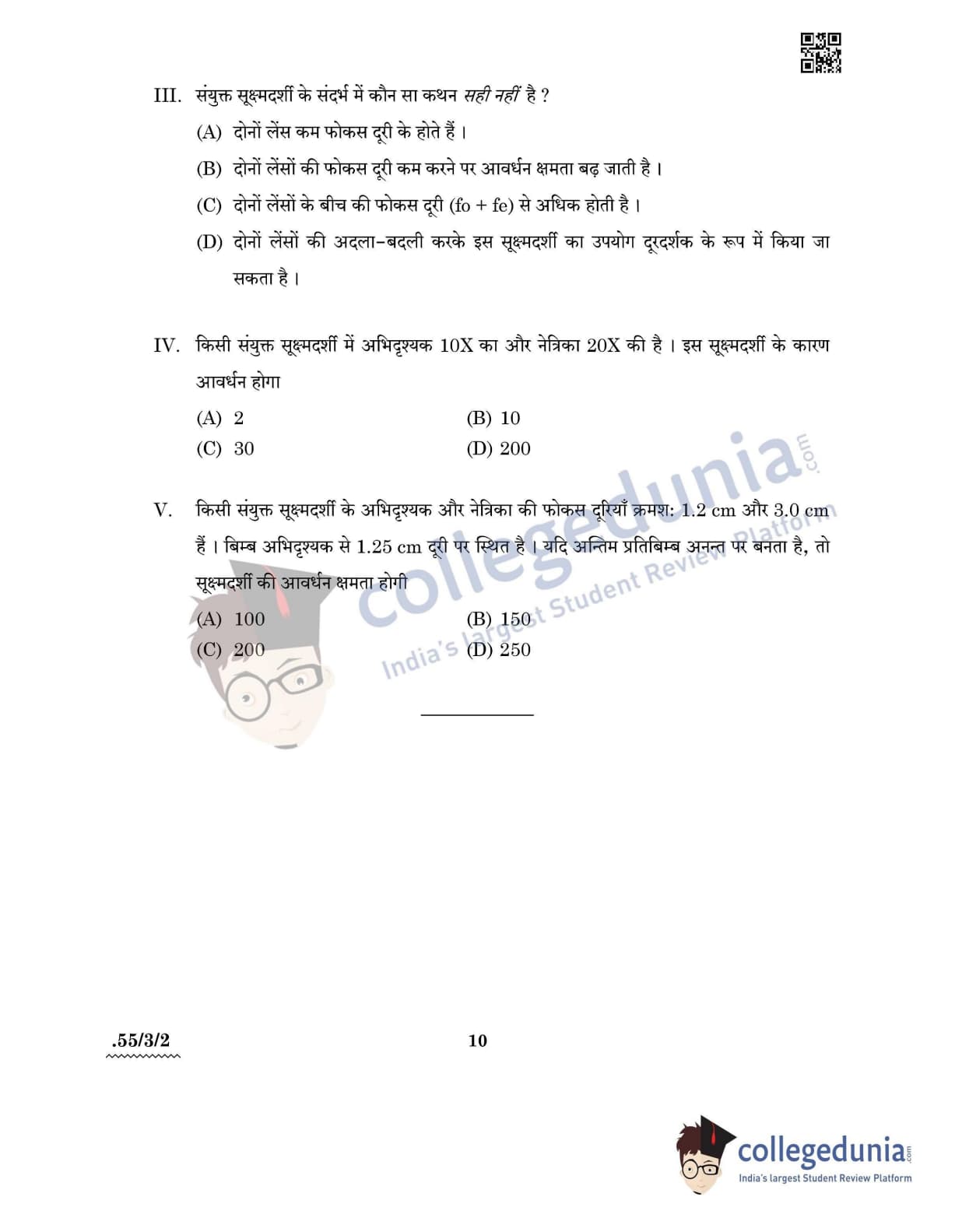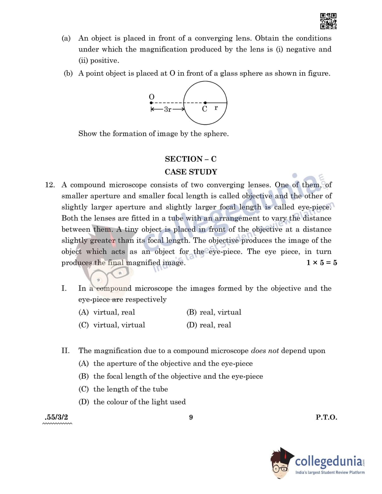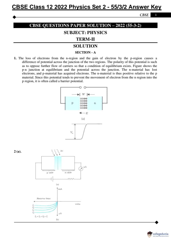 CBSE Class 12 Physics Question Paper 2022 with Answer Key (May 20, Set 2 - 55/3/2- Morning Session)