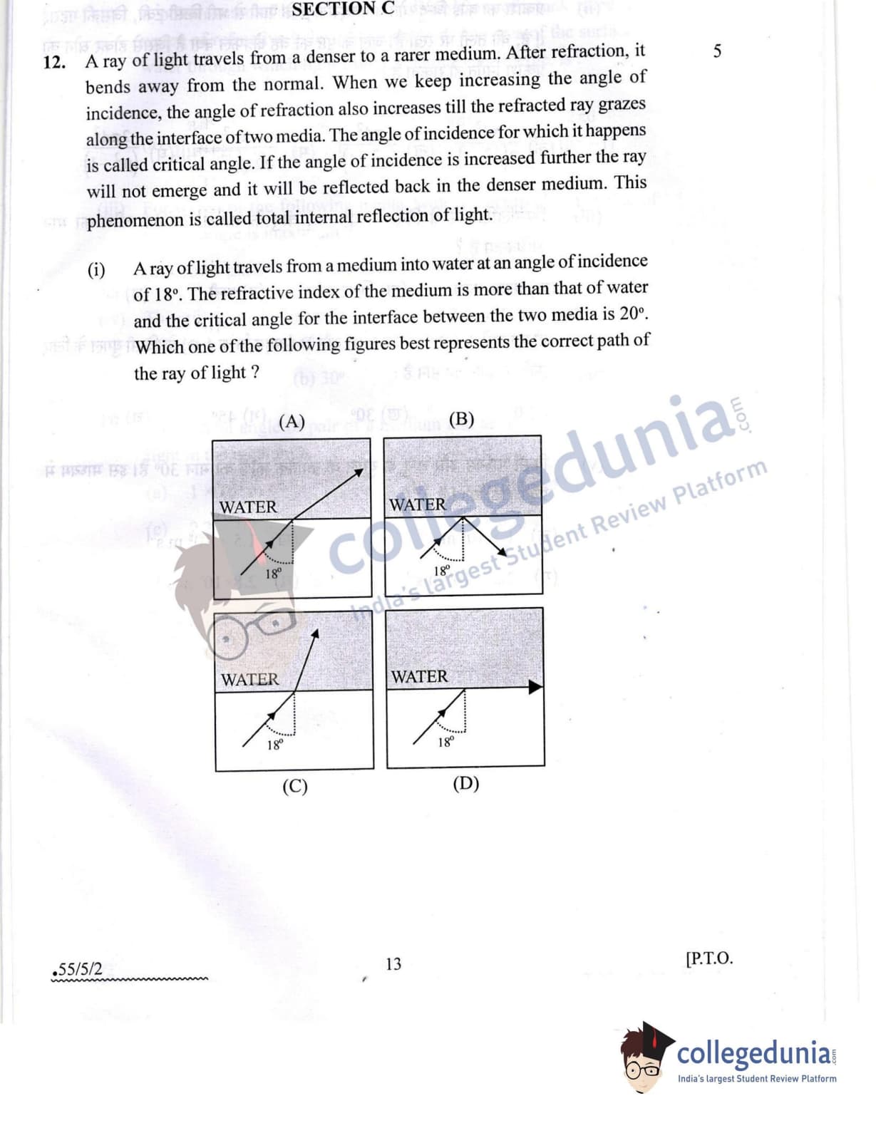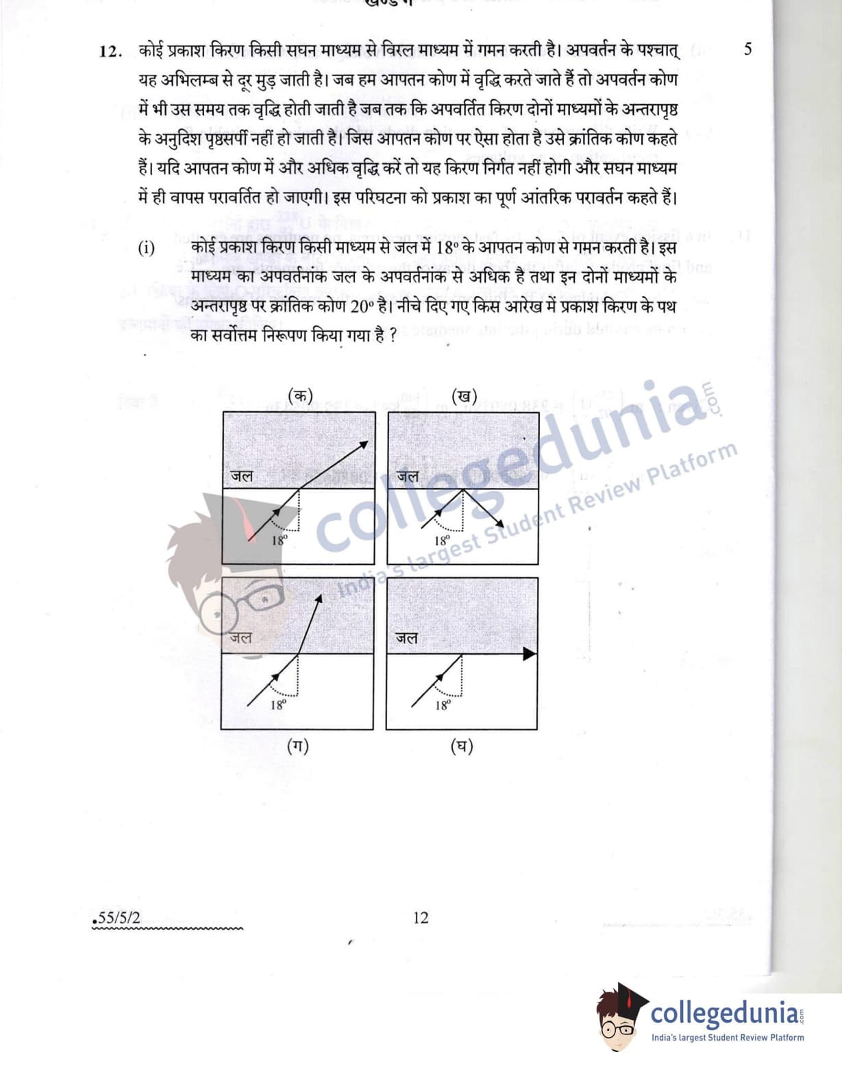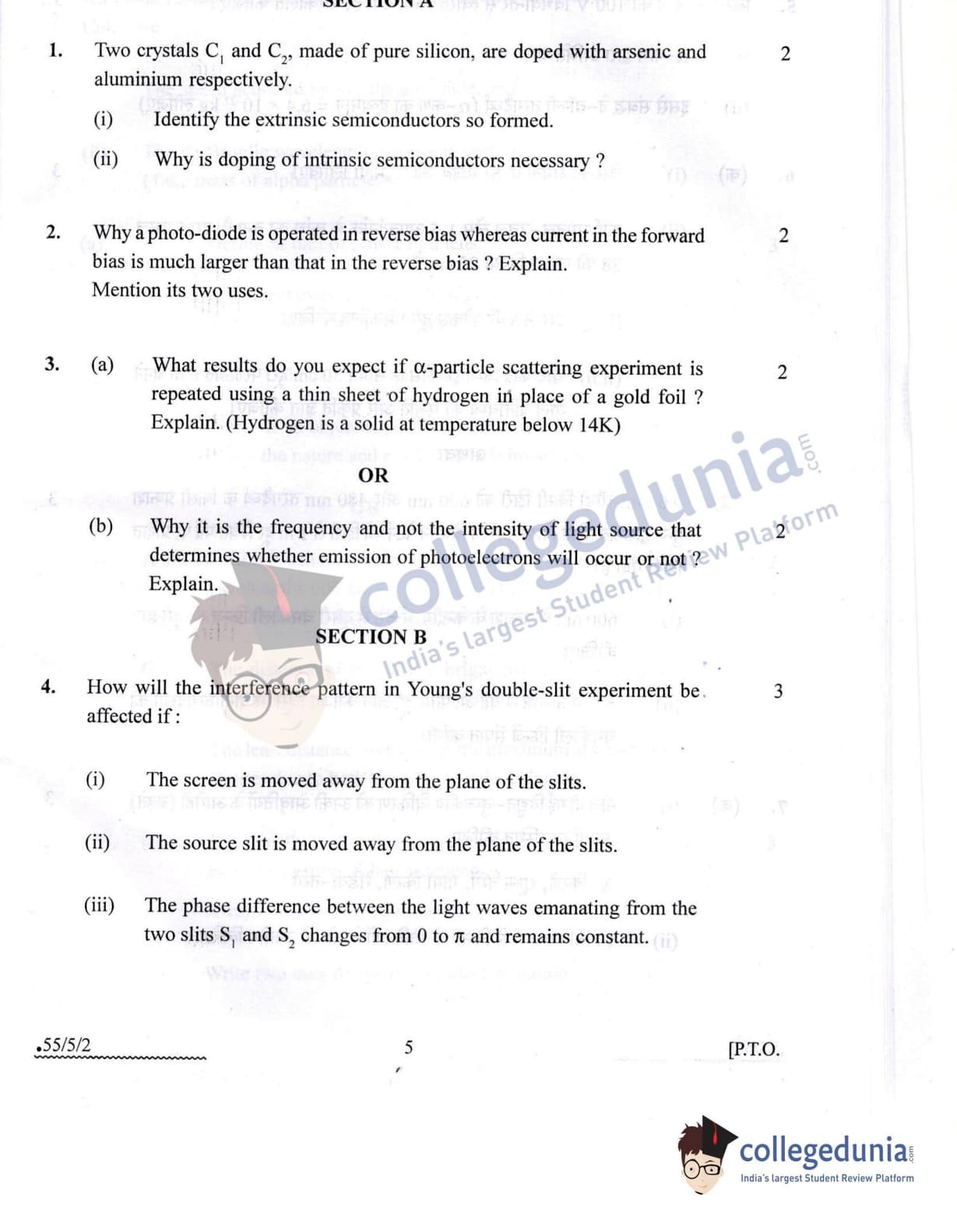 CBSE Class 12 2022 Physics Question Paper Set 2 - 55/5/2 with Answer Key pdf is available for download. The exam was conducted by Central Board of Secondary Education on May 20, 2022 in the Morning Session 10:30 AM to 12:30 PM. The medium of paper was English & Hindi. In terms of difficulty level, CBSE Class 12 Physics paper was of Moderate level. The question paper comprised a total of 12 questions divided among 3 sections.
