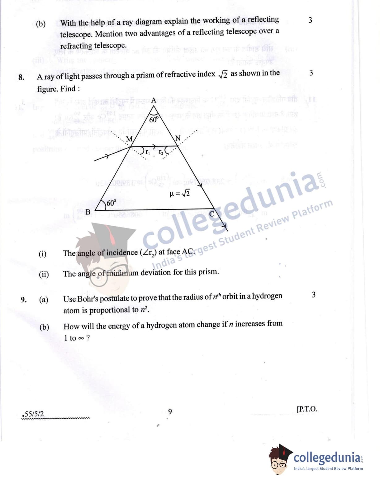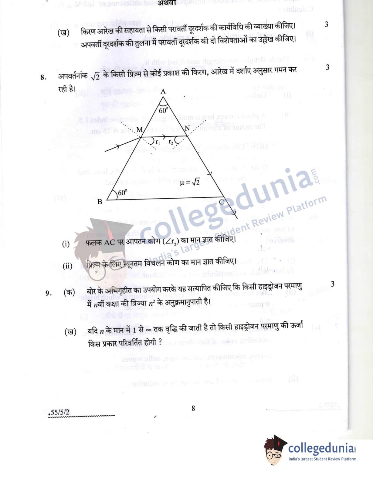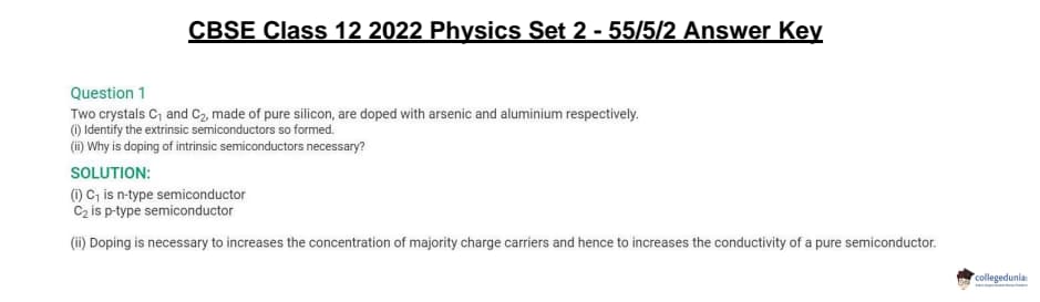 CBSE Class 12 Physics Question Paper 2022 with Answer Key (May 20, Set 2 - 55/5/2- Morning Session)
