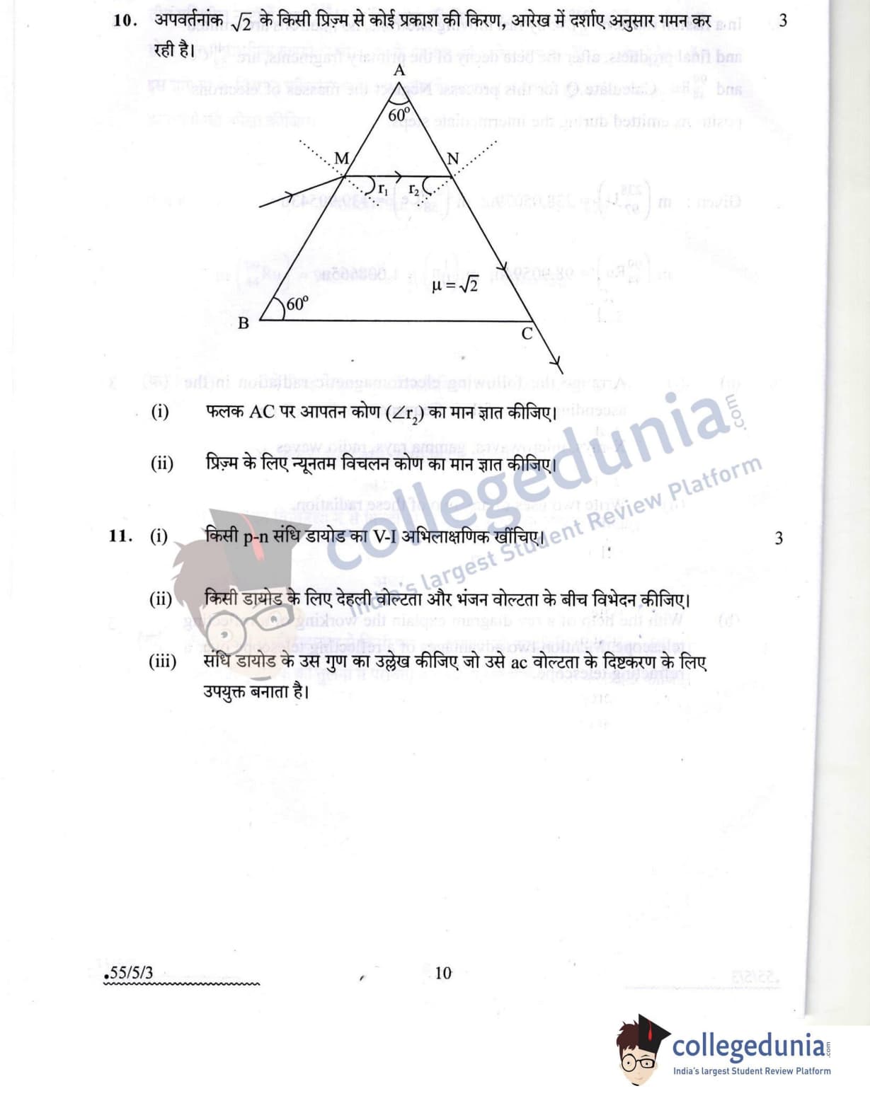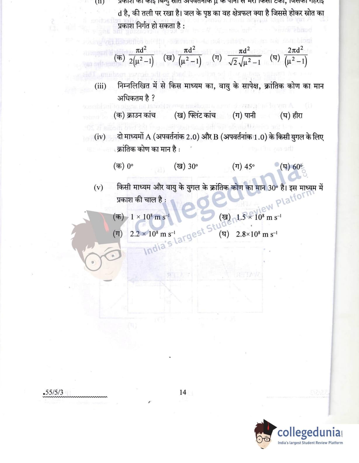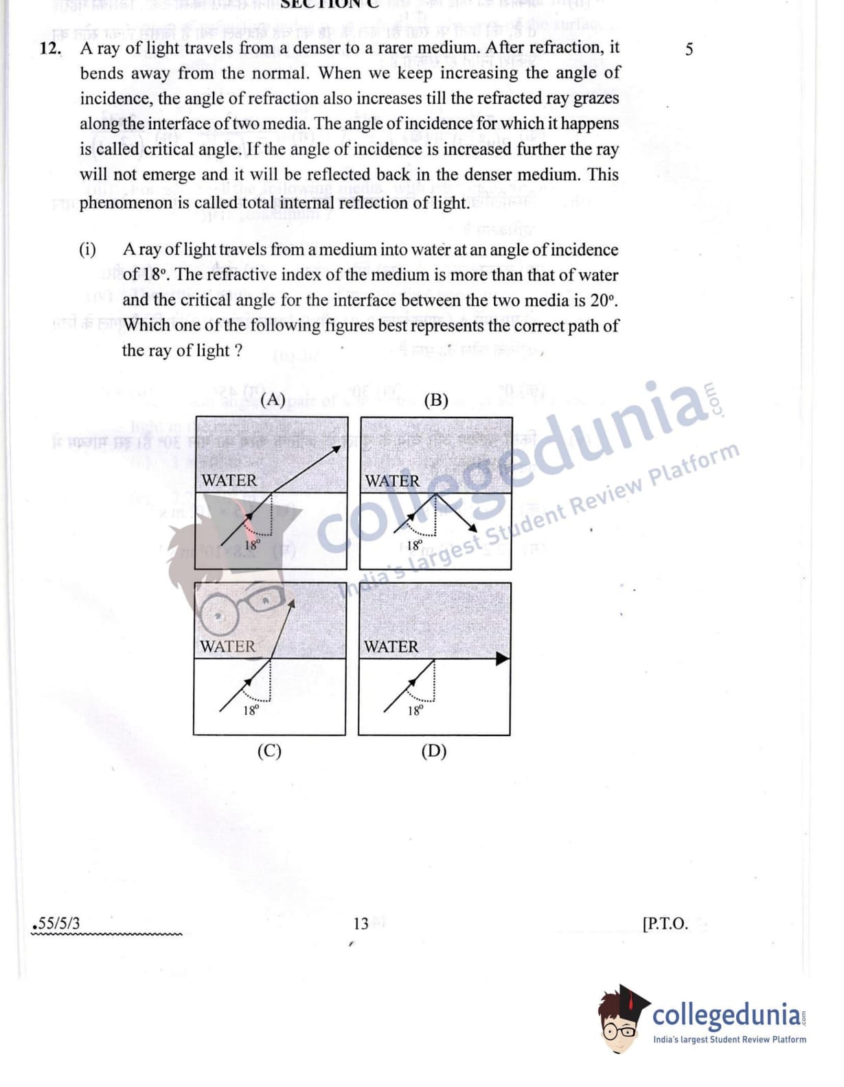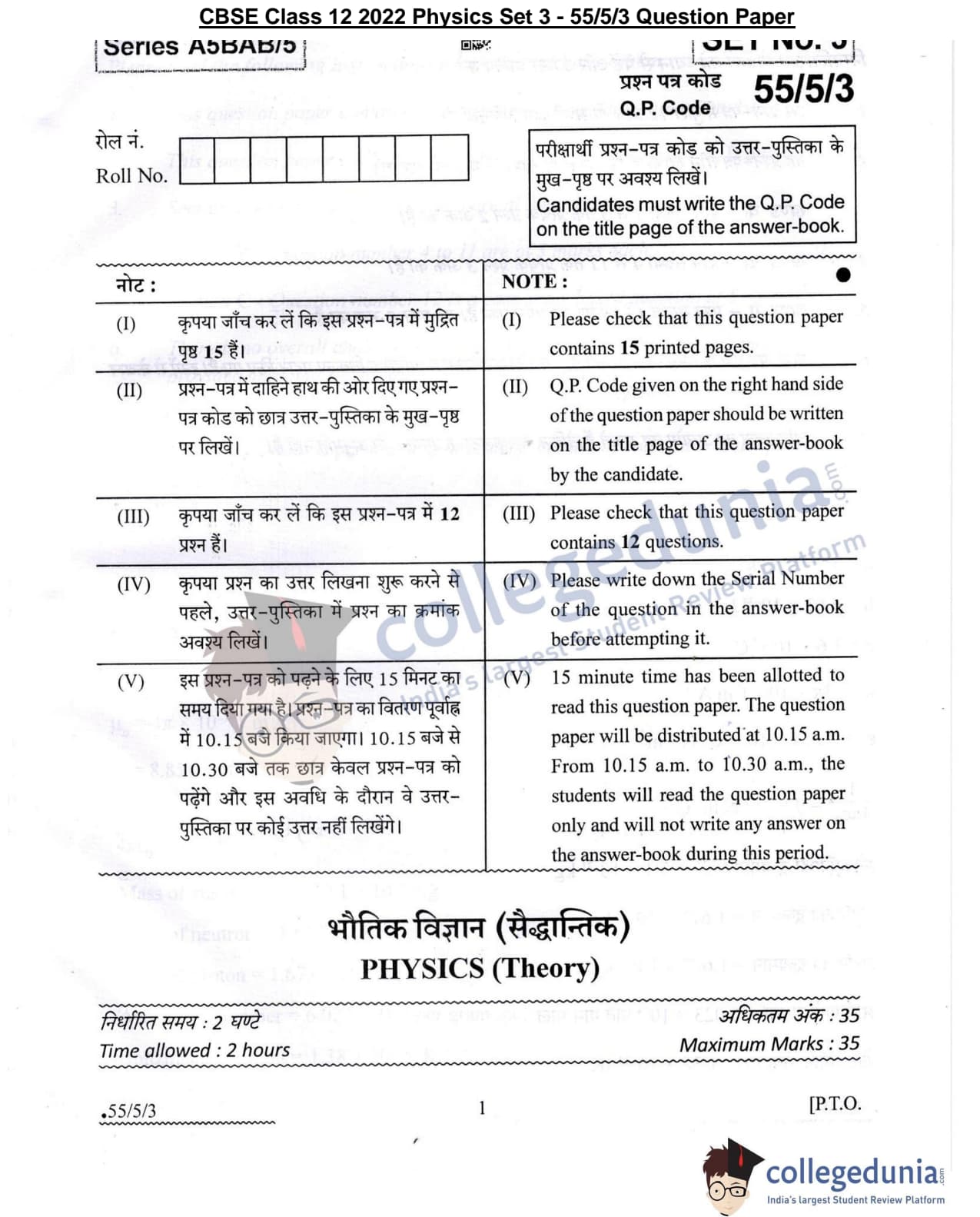 CBSE Class 12 Physics Question Paper 2022 with Answer Key (May 20, Set 3 - 55/5/3- Morning Session)