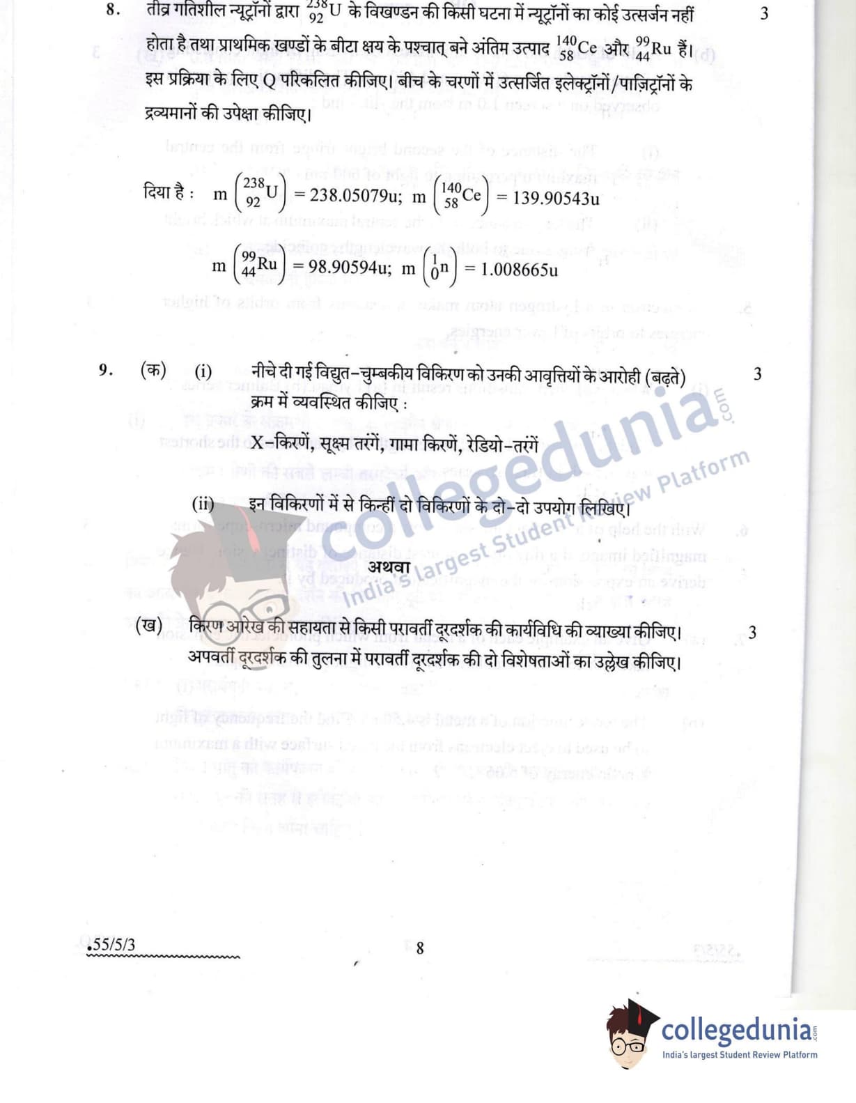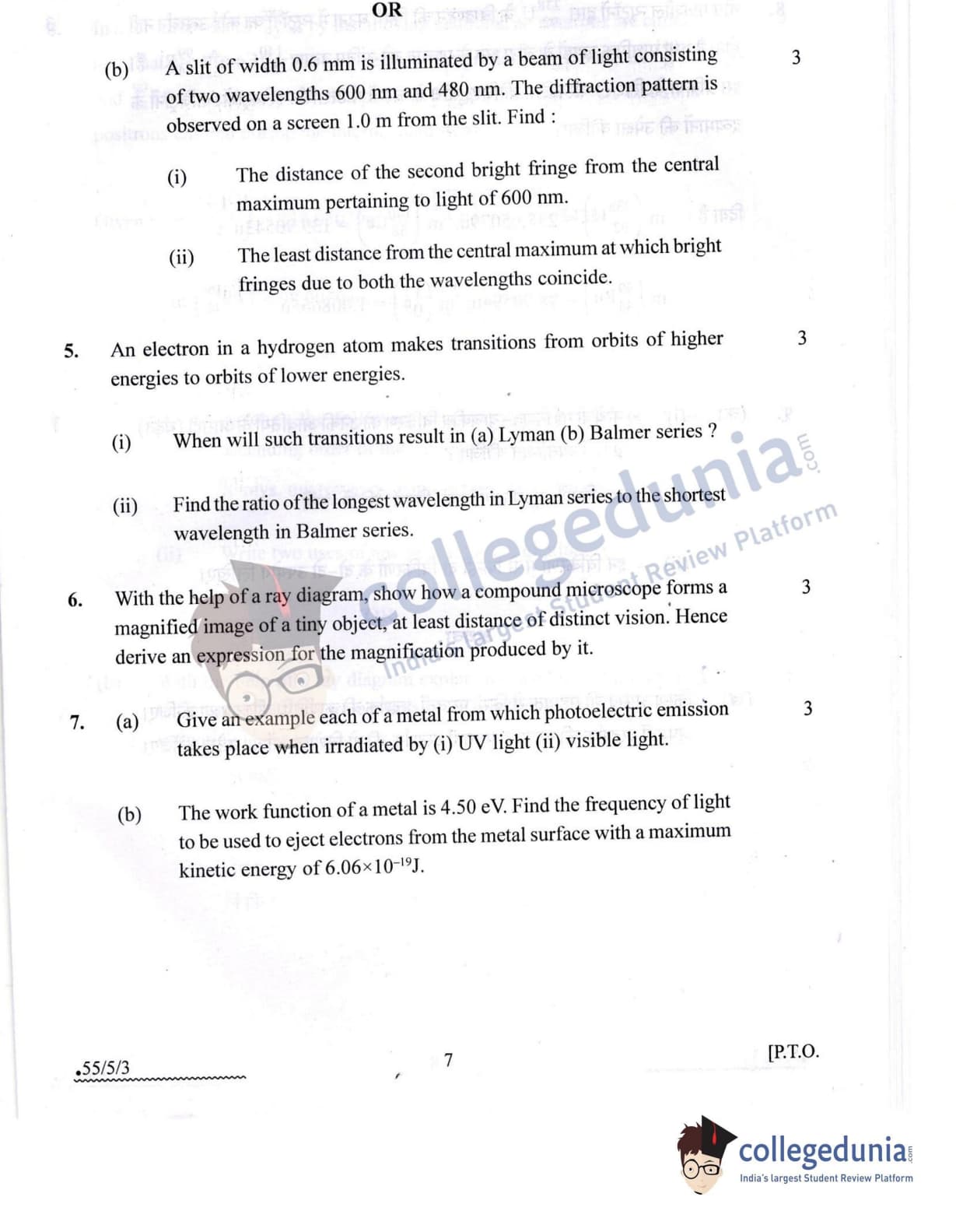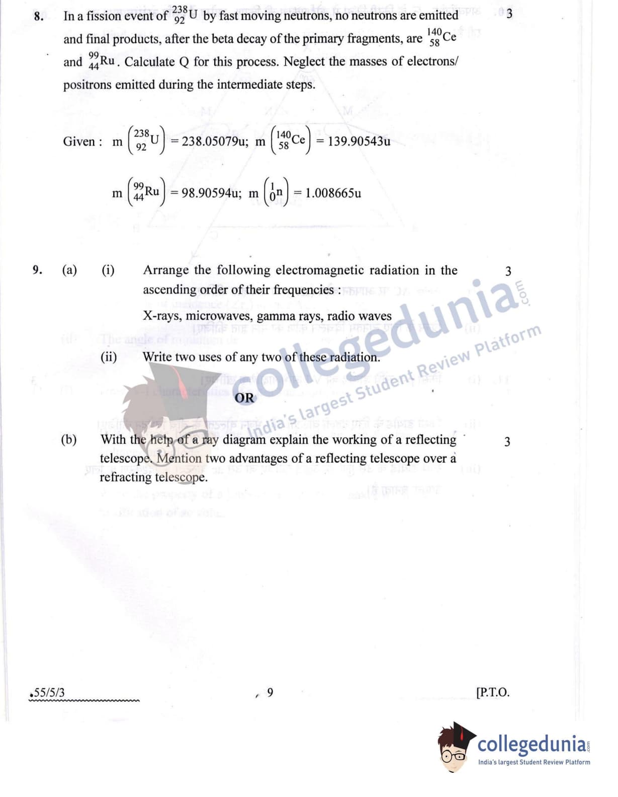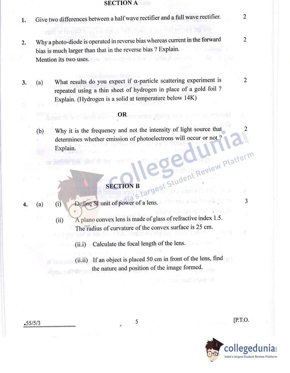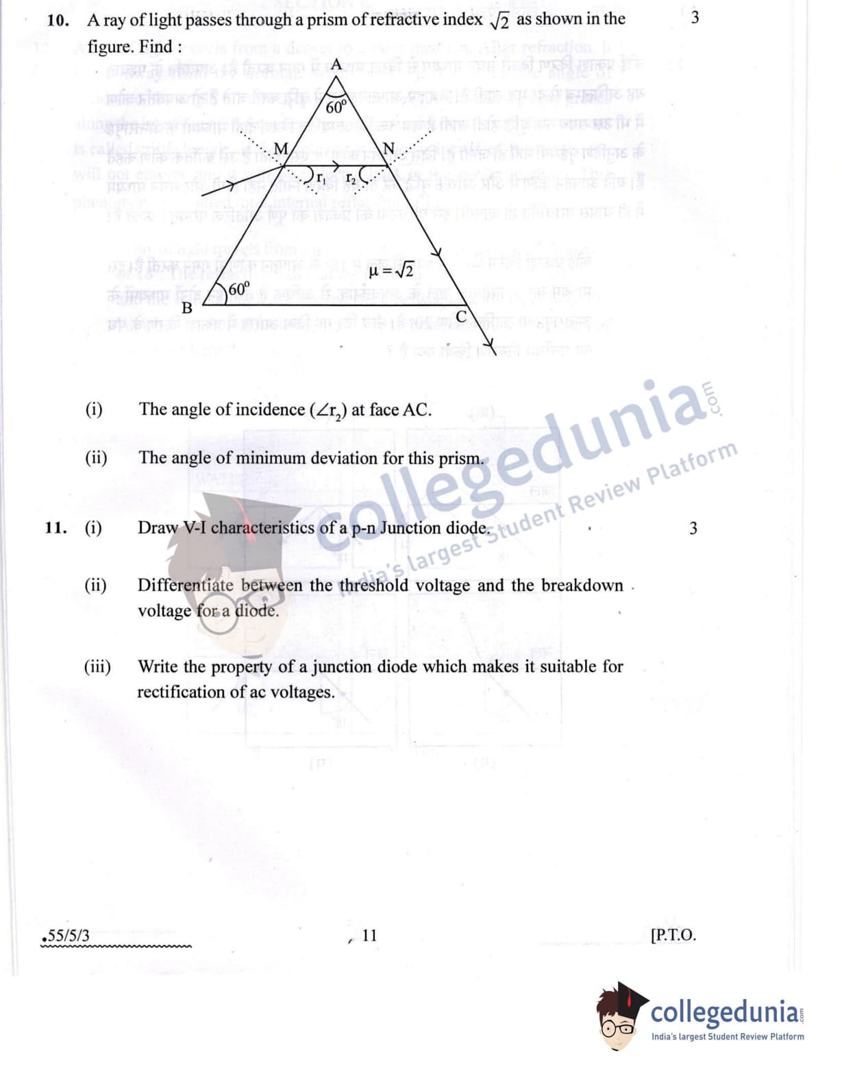 CBSE Class 12 Physics Question Paper 2022 with Answer Key (May 20, Set 3 - 55/5/3- Morning Session)