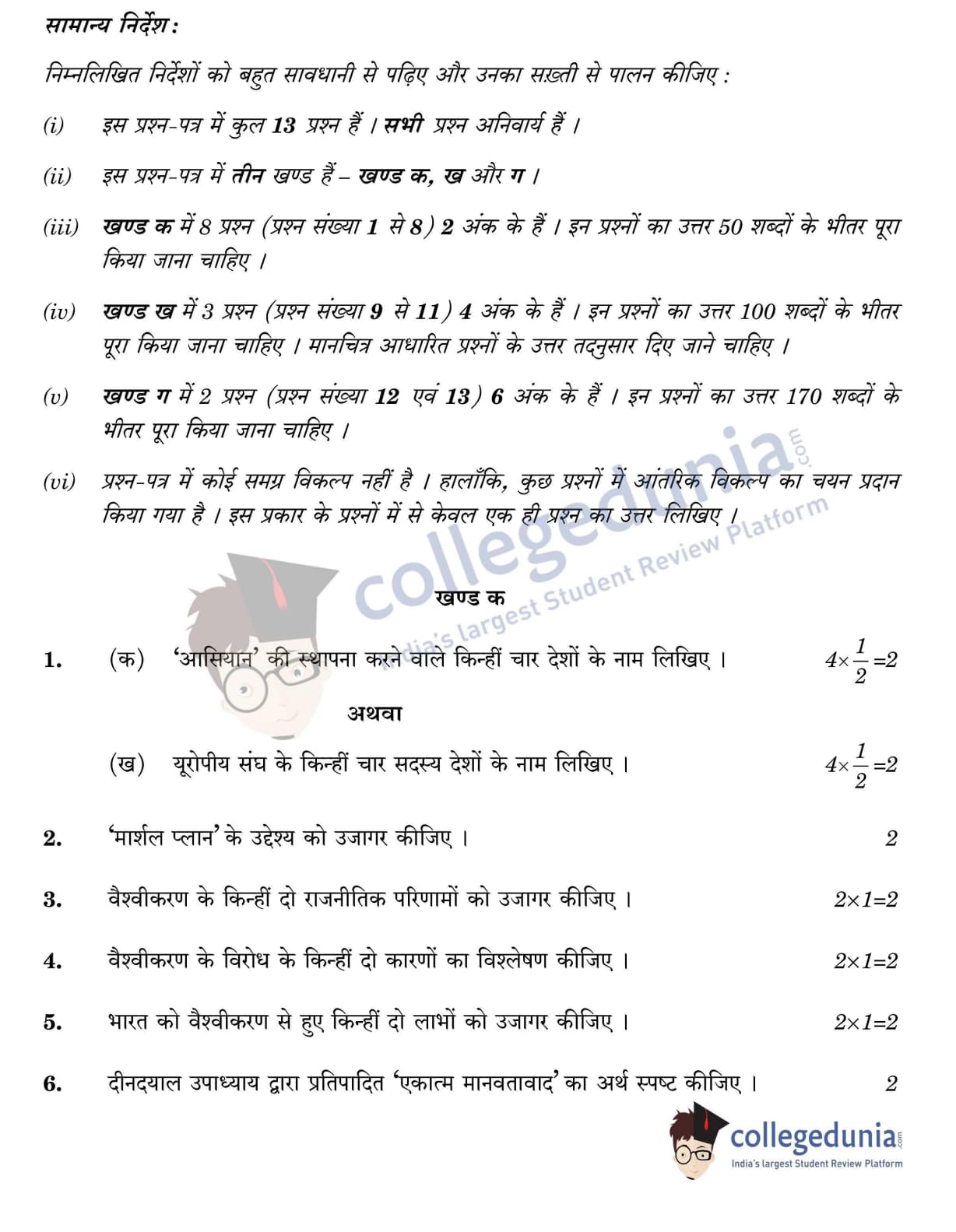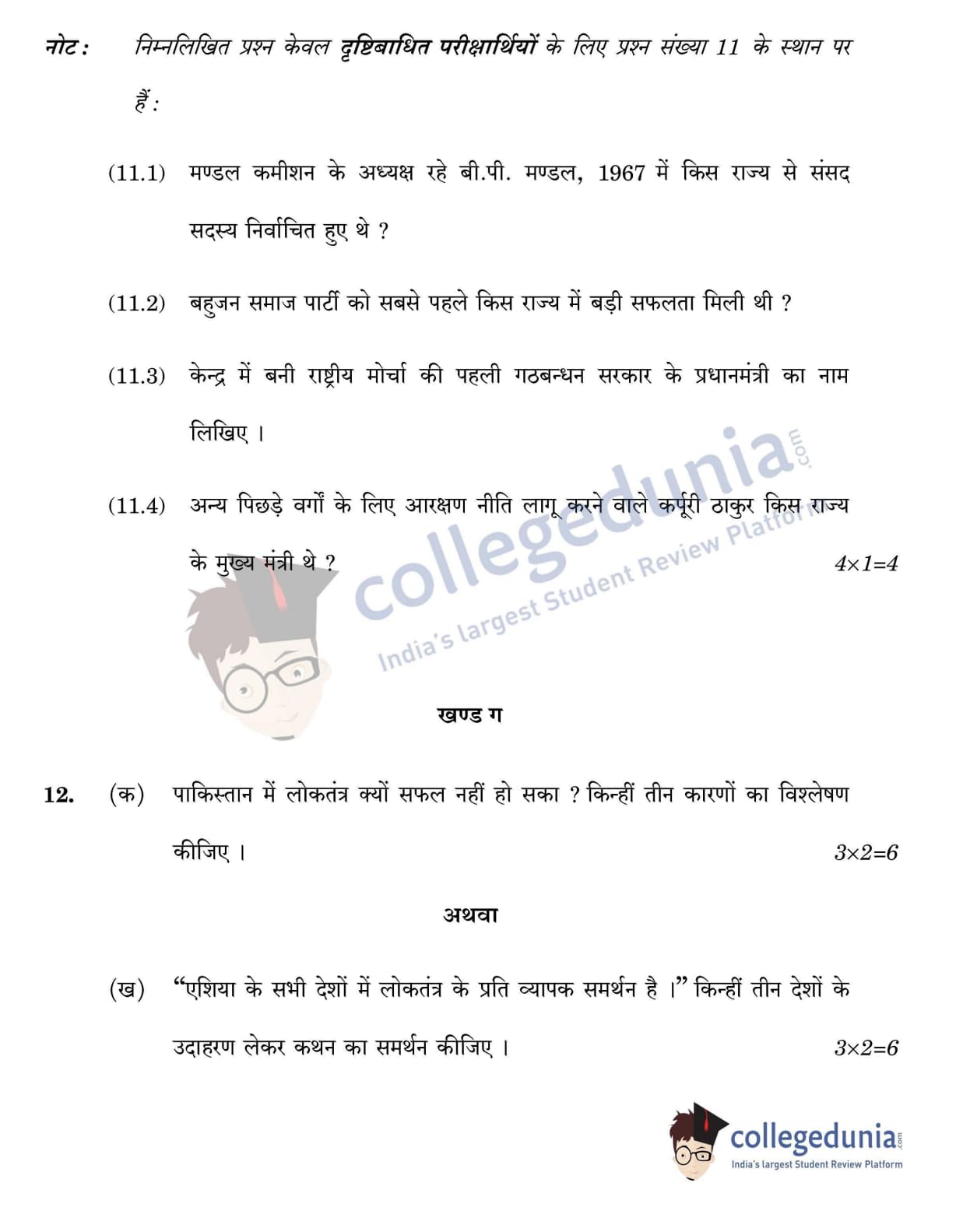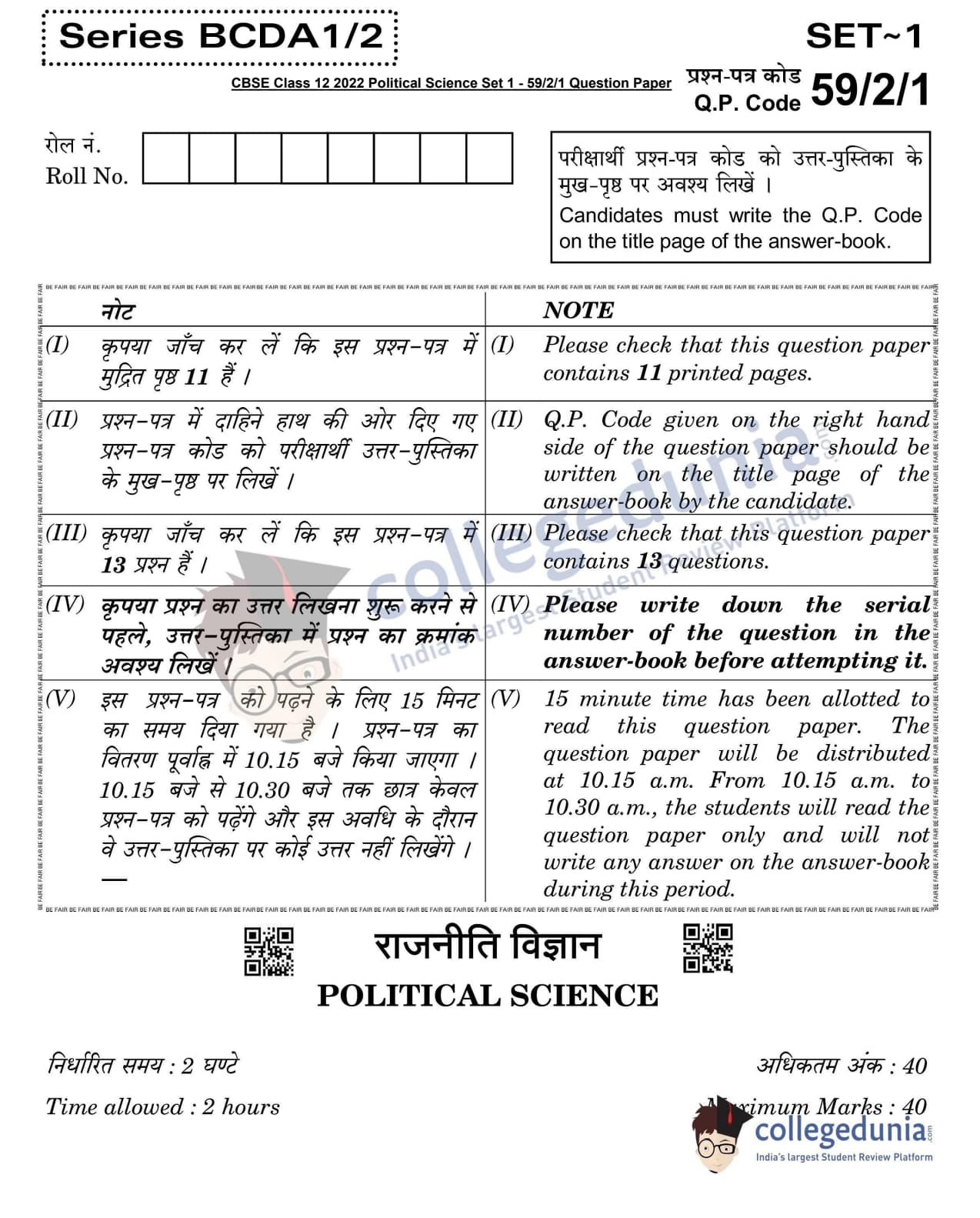 CBSE Class 12 Political Science Question Paper 2022 with Answer Key (May 24, Set 1 - 59/2/1- Morning Session)