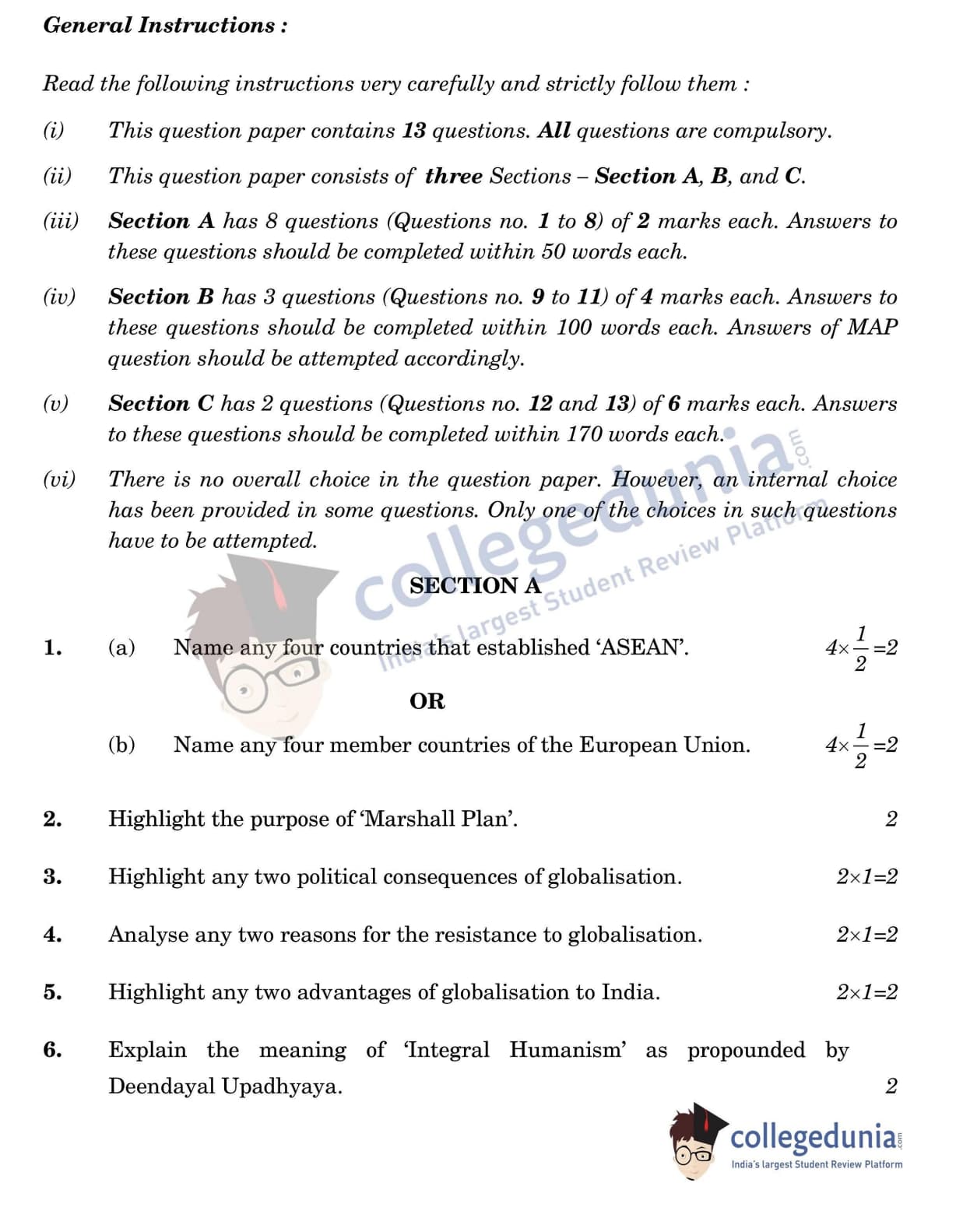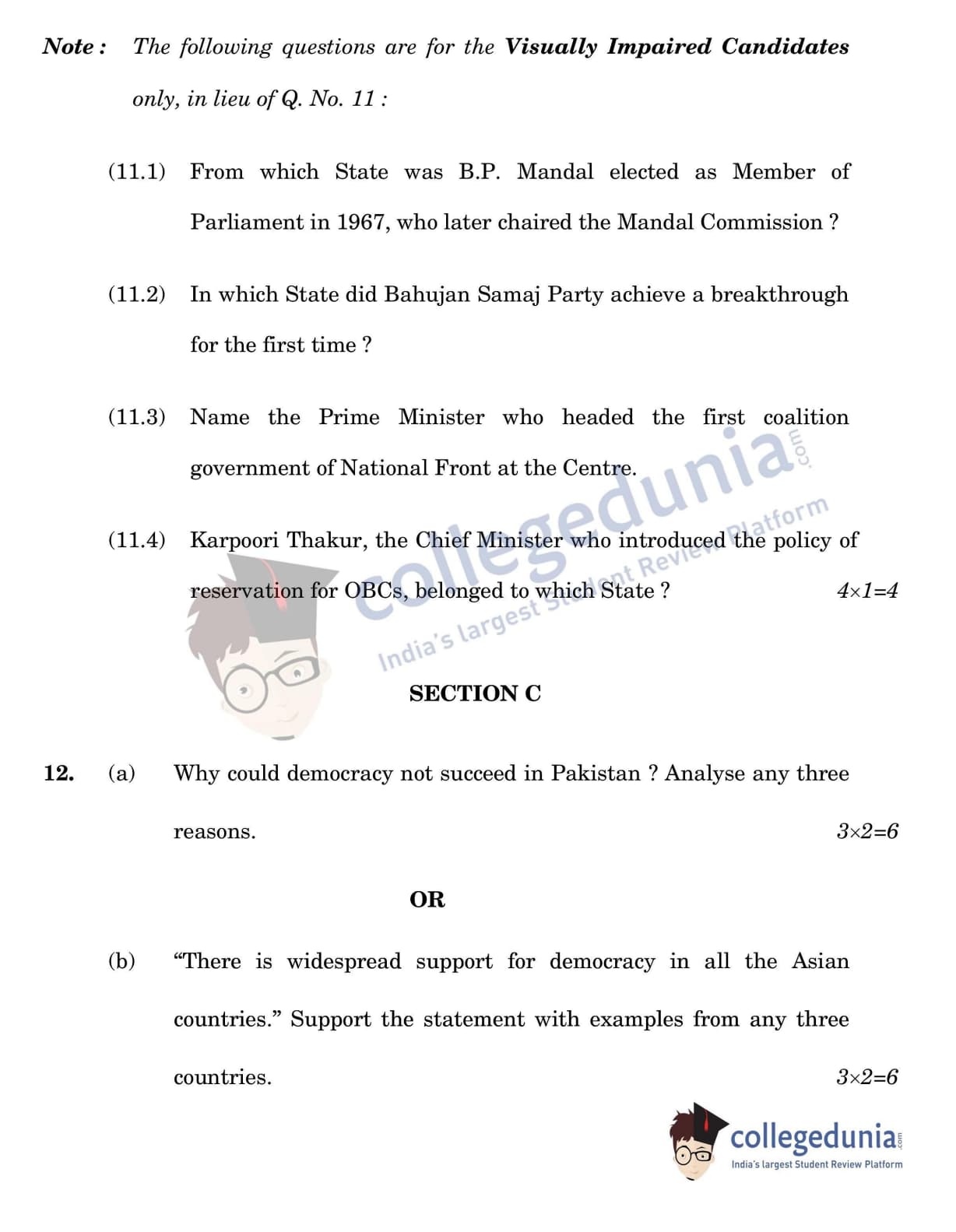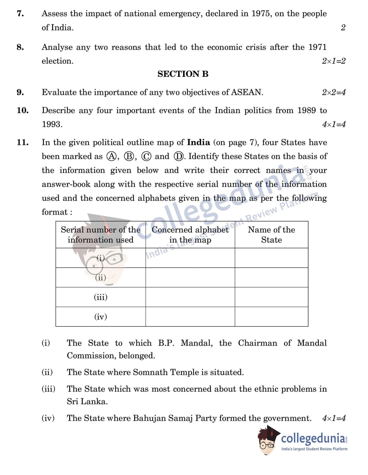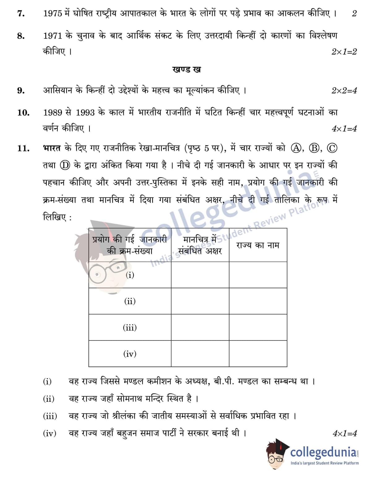 CBSE Class 12 Political Science Question Paper 2022 with Answer Key (May 24, Set 1 - 59/2/1- Morning Session)