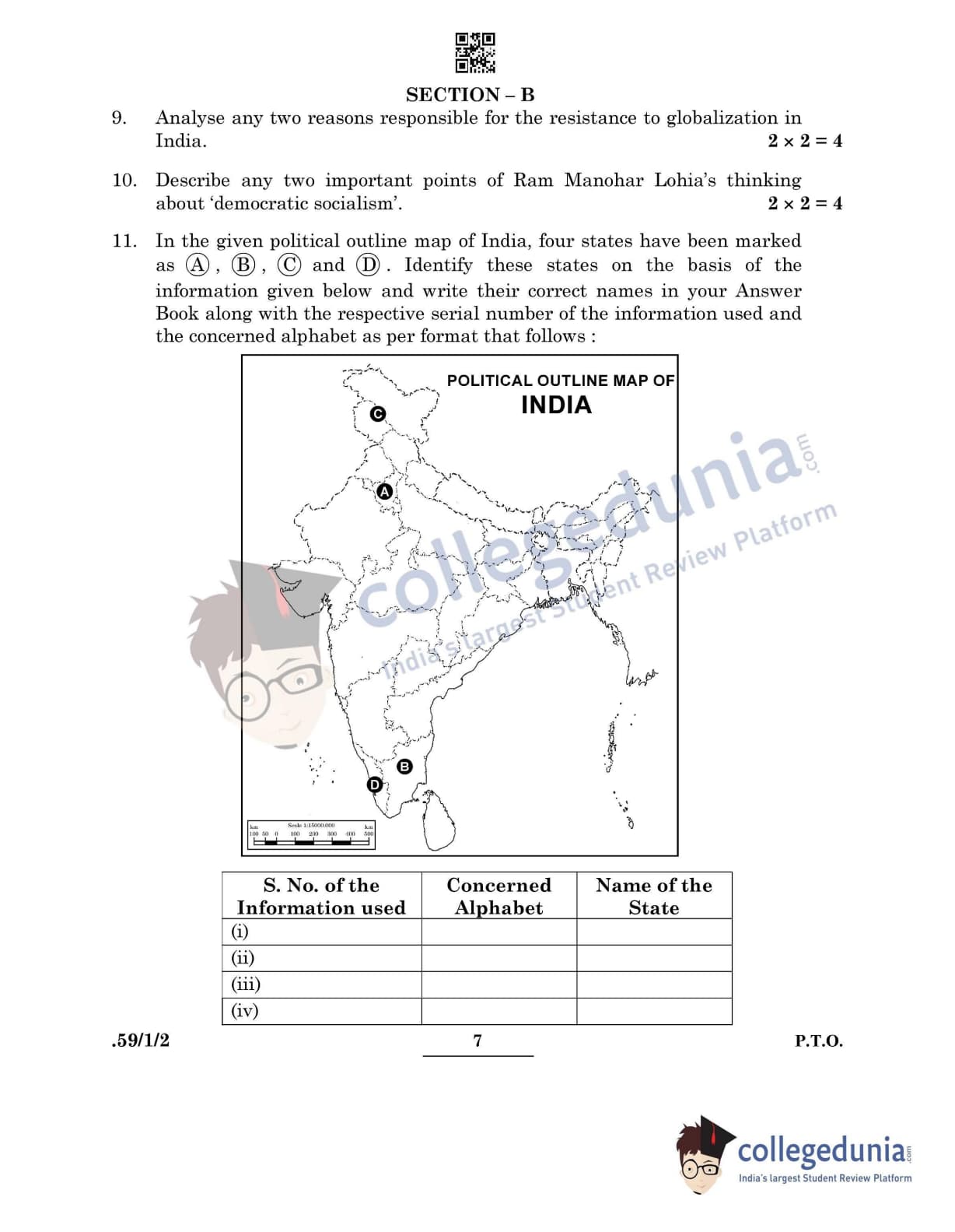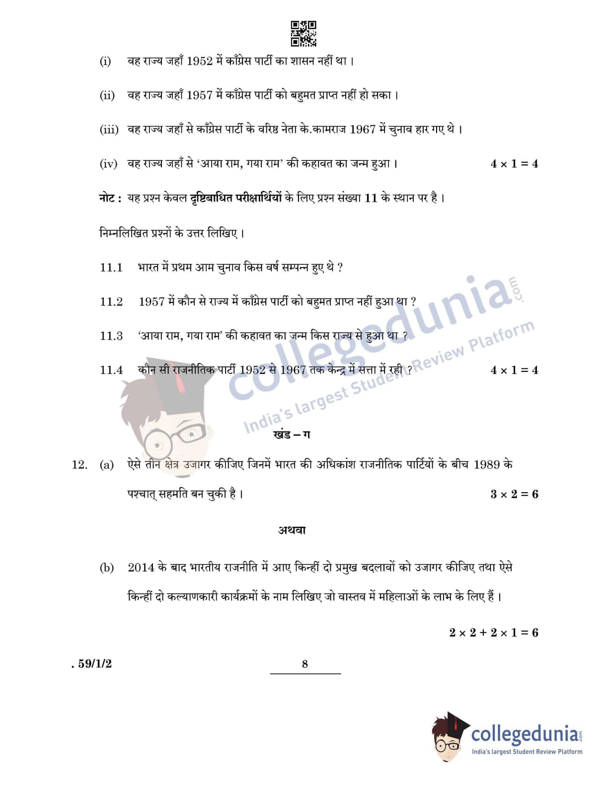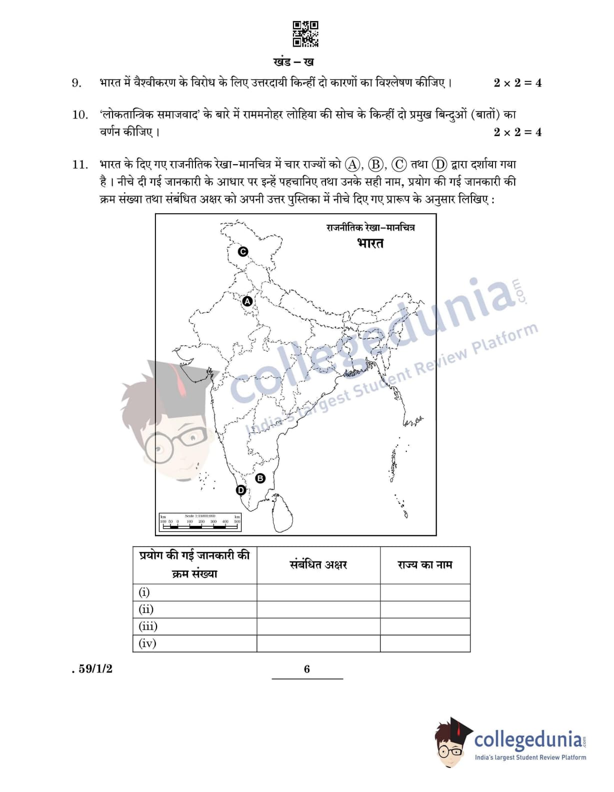 CBSE Class 12 Political Science Question Paper 2022 with Answer Key (May 24, Set 2 - 59/1/2- Morning Session)