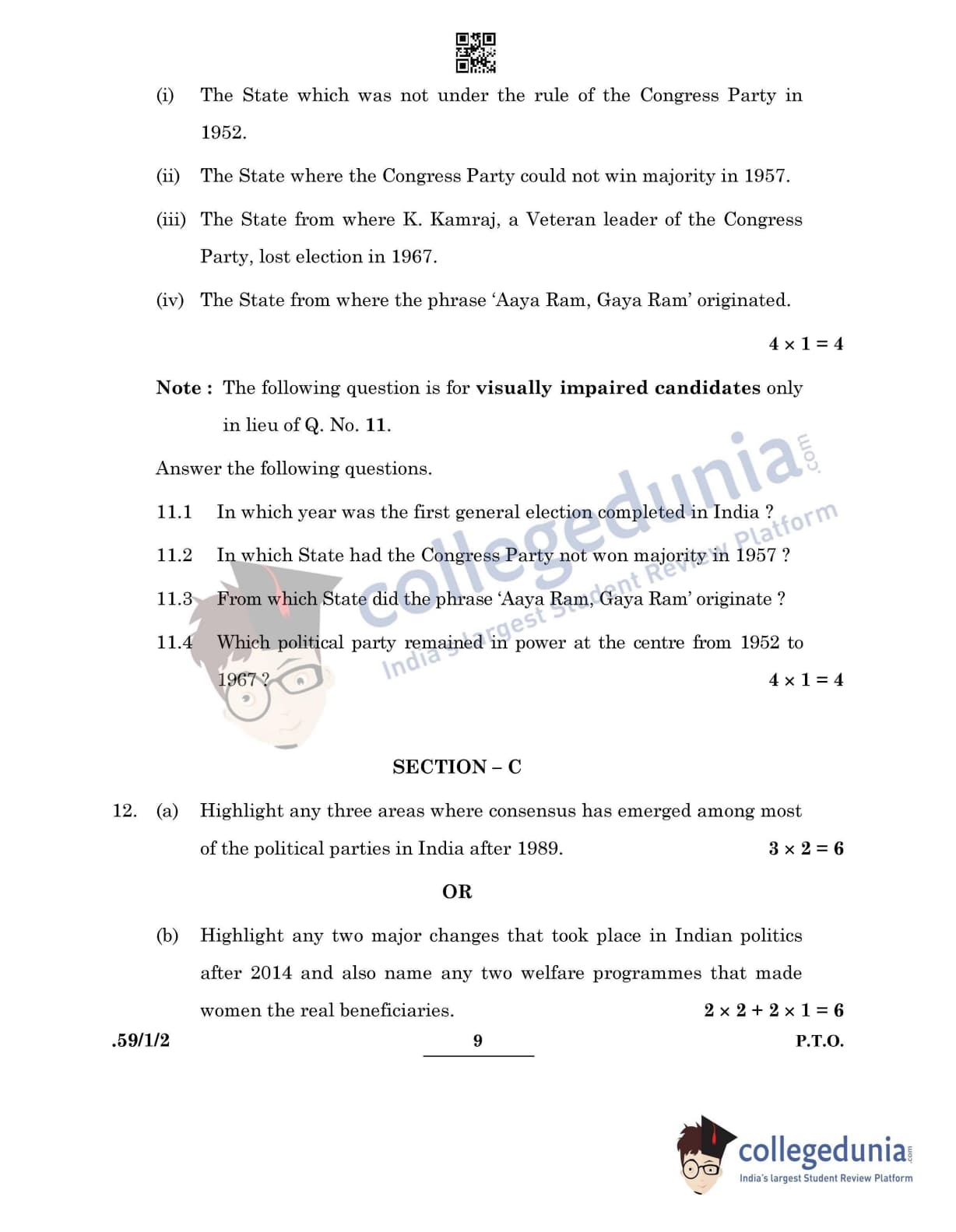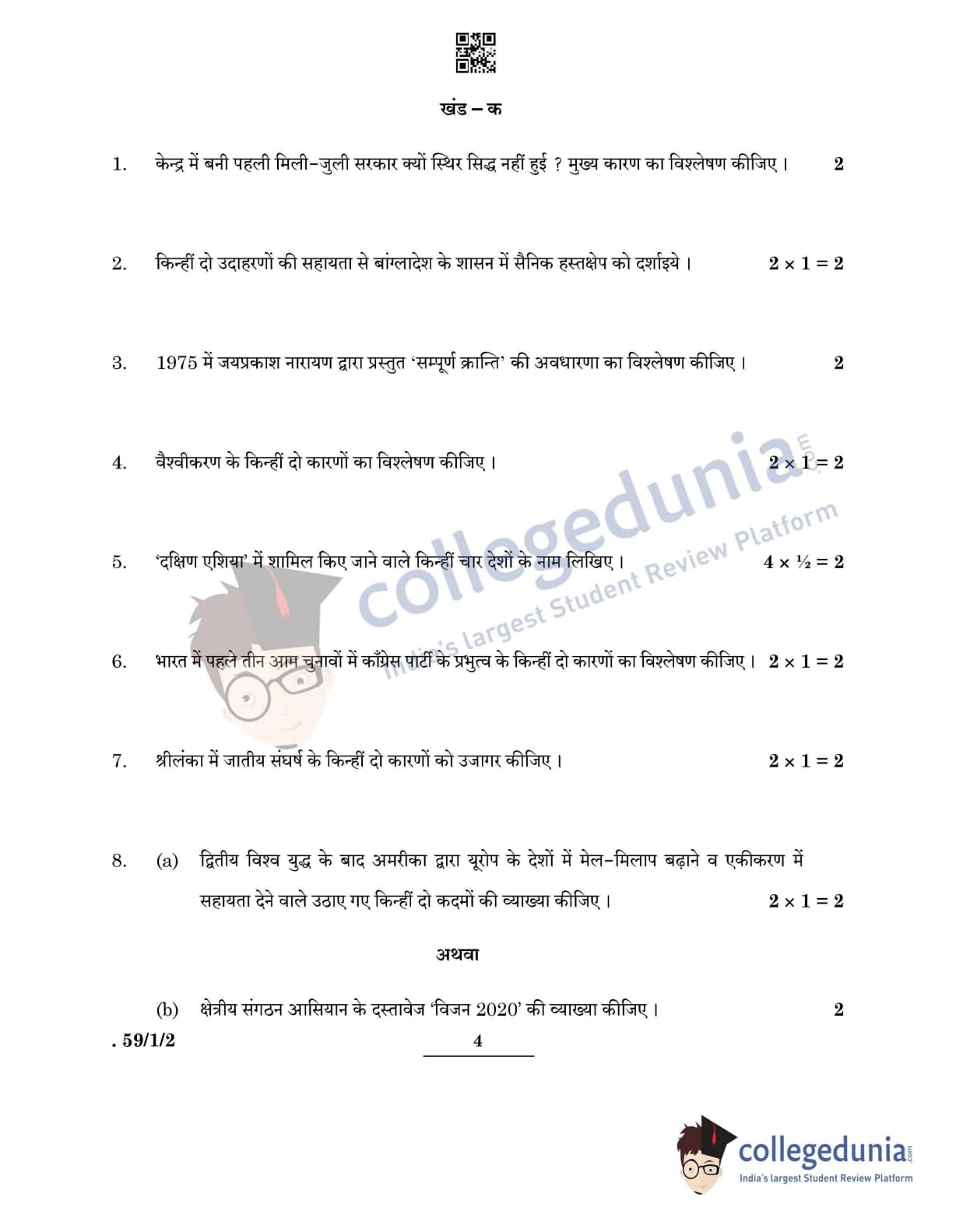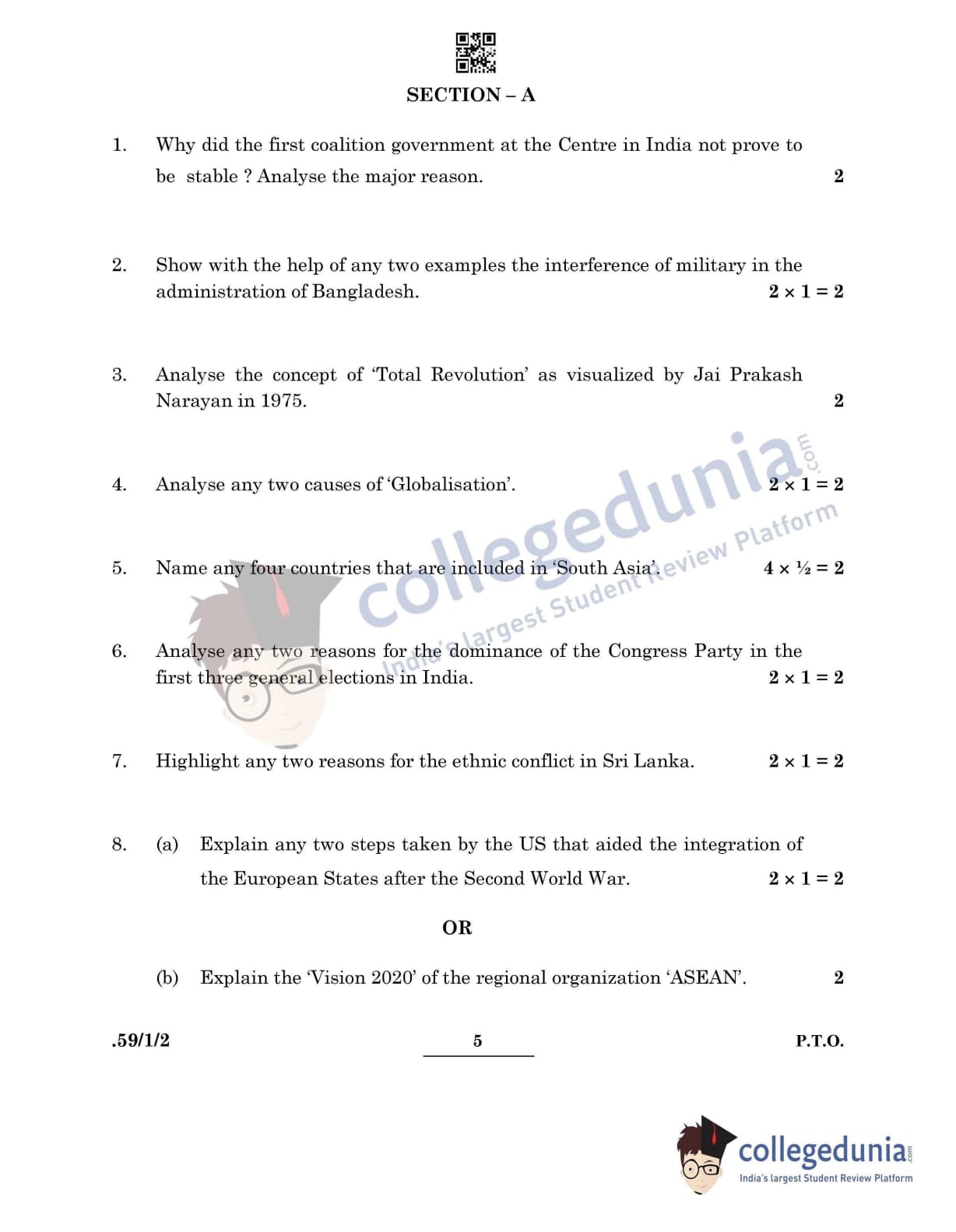 CBSE Class 12 Political Science Question Paper 2022 with Answer Key (May 24, Set 2 - 59/1/2- Morning Session)