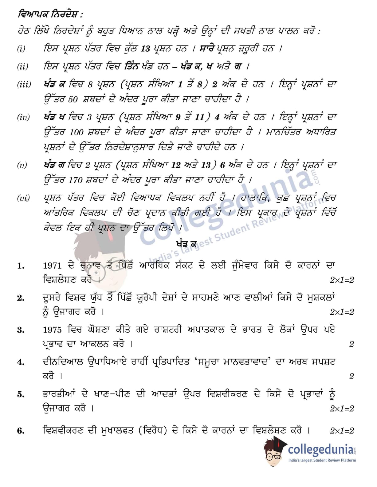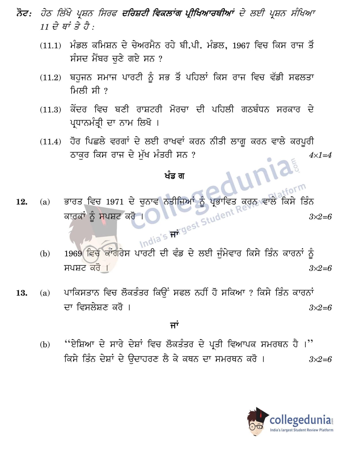 CBSE Class 12 2022 Political Science Question Paper Set 2 - 221/2/2 with Answer Key pdf is available for download. The exam was conducted by Central Board of Secondary Education on May 24, 2022 in the Morning Session 10:30 AM to 12:30 PM. The medium of paper was Punjabi. In terms of difficulty level, CBSE Class 12 Poltical Science paper was of Easy level. The question paper comprised a total of 13 questions divided among 3 sections.