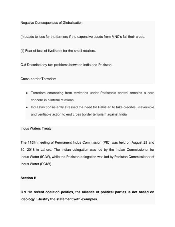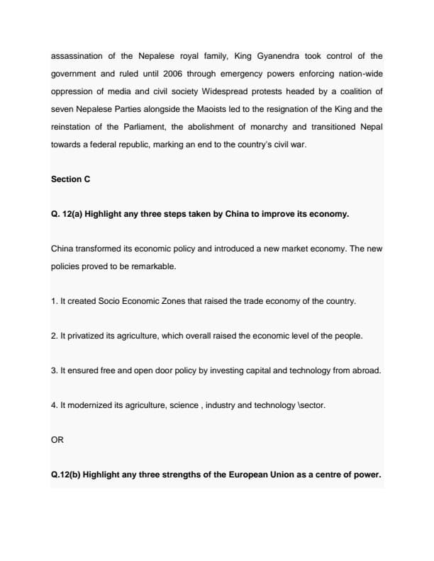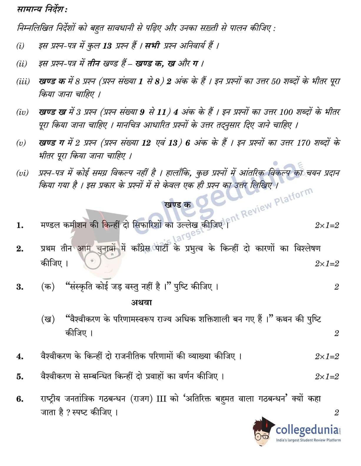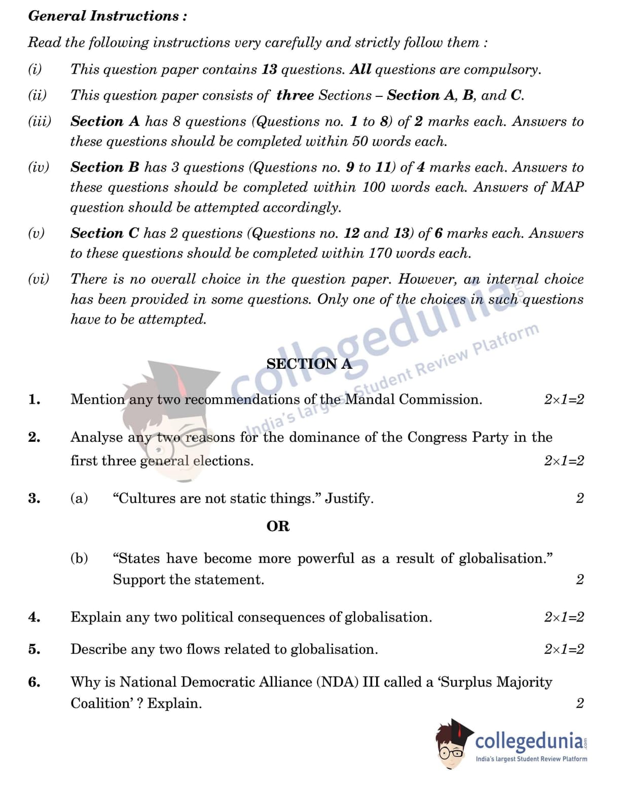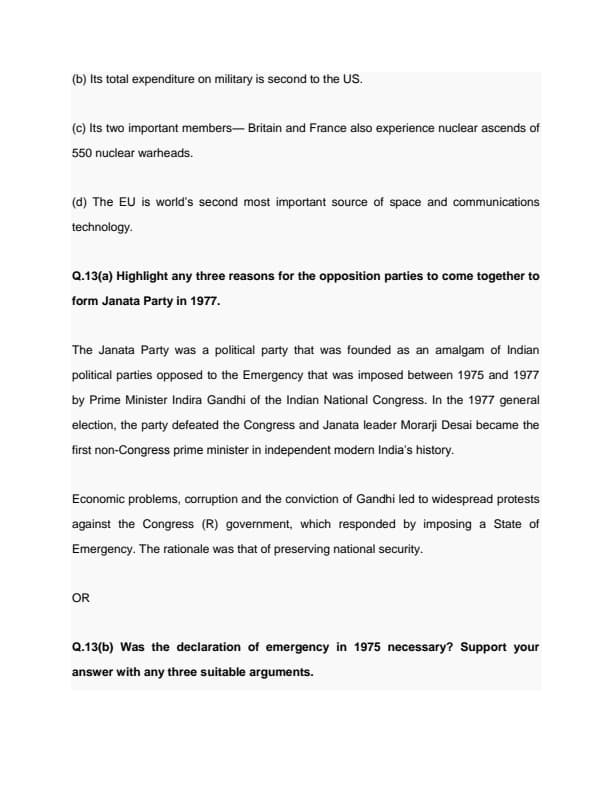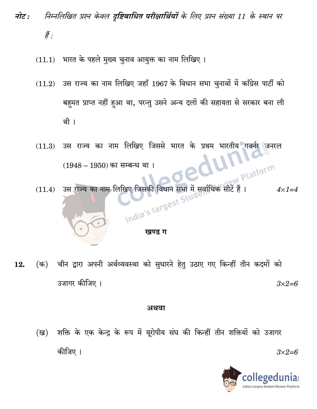 CBSE Class 12 Political Science Question Paper 2022 with Answer Key (May 24, Set 3 - 59/4/3- Morning Session)
