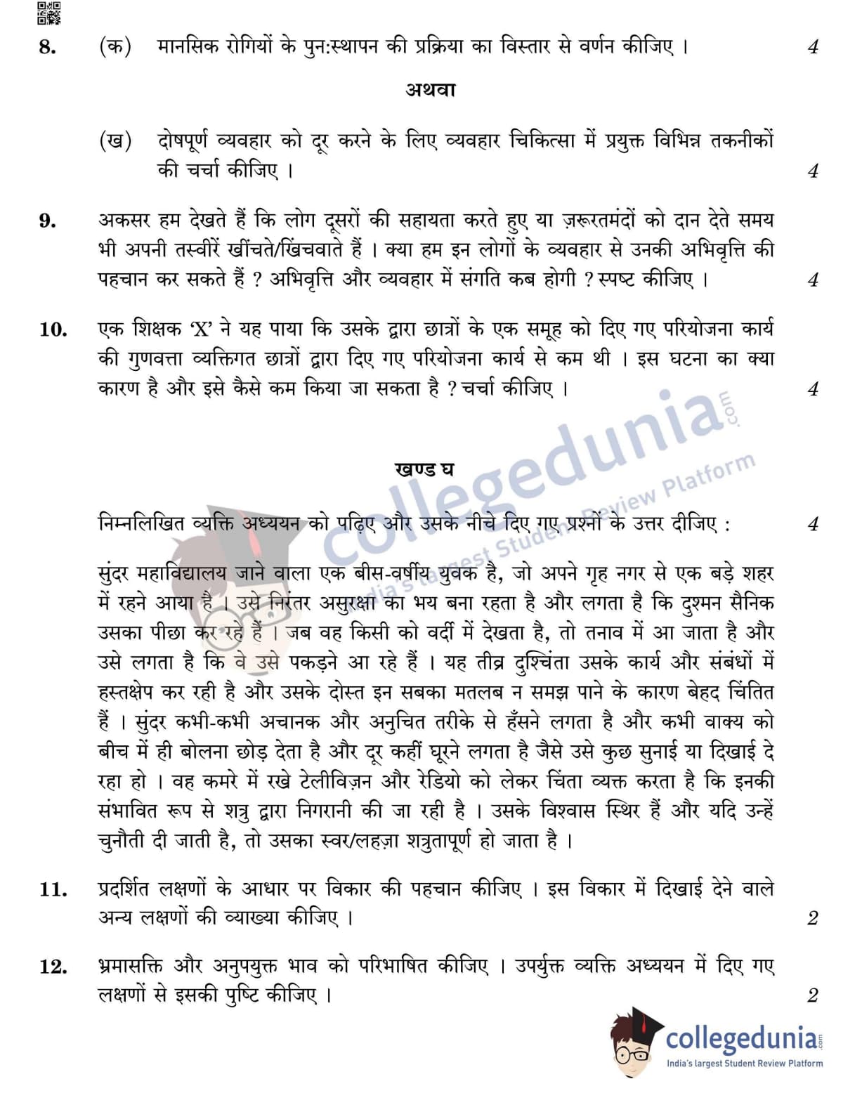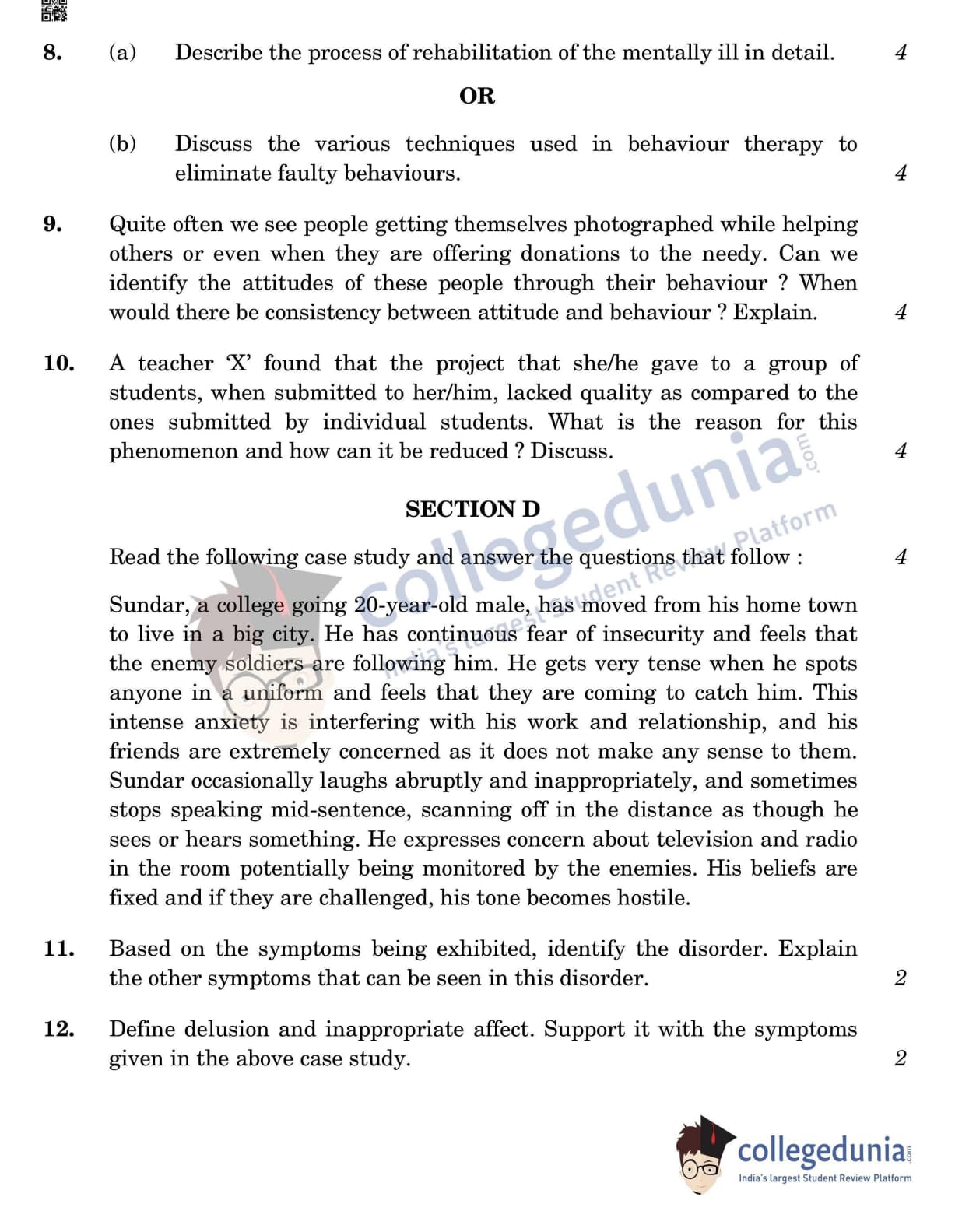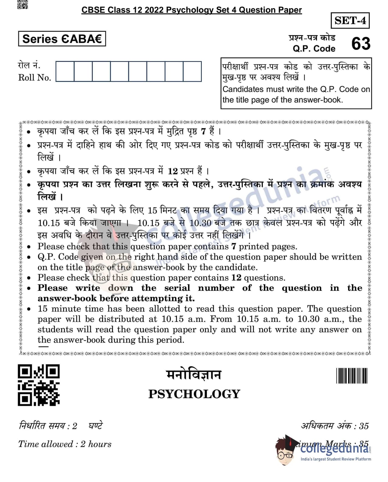 CBSE Class 12 Psychology Question Paper 2022 with Answer Key (June 15, Set 4- Morning Session)