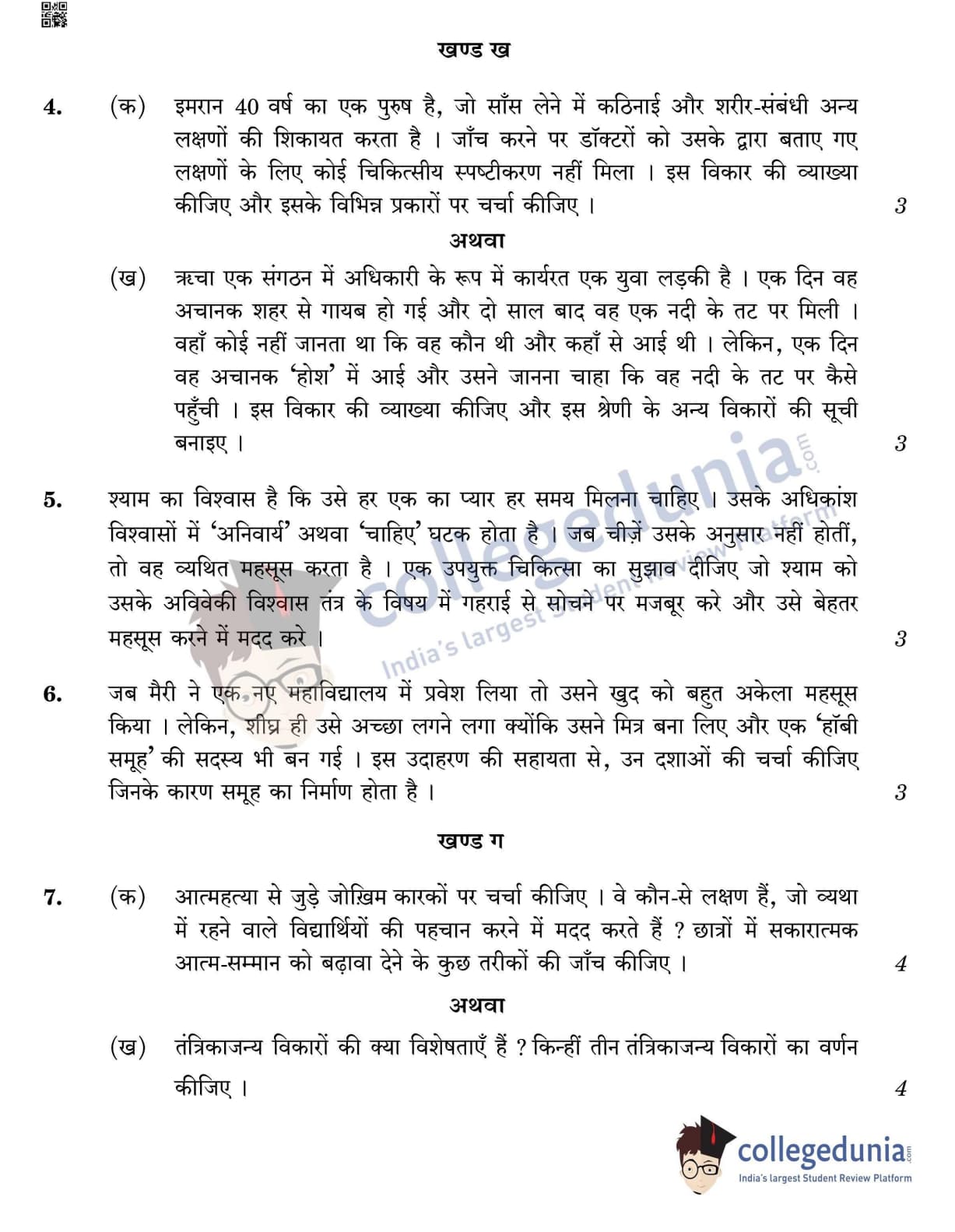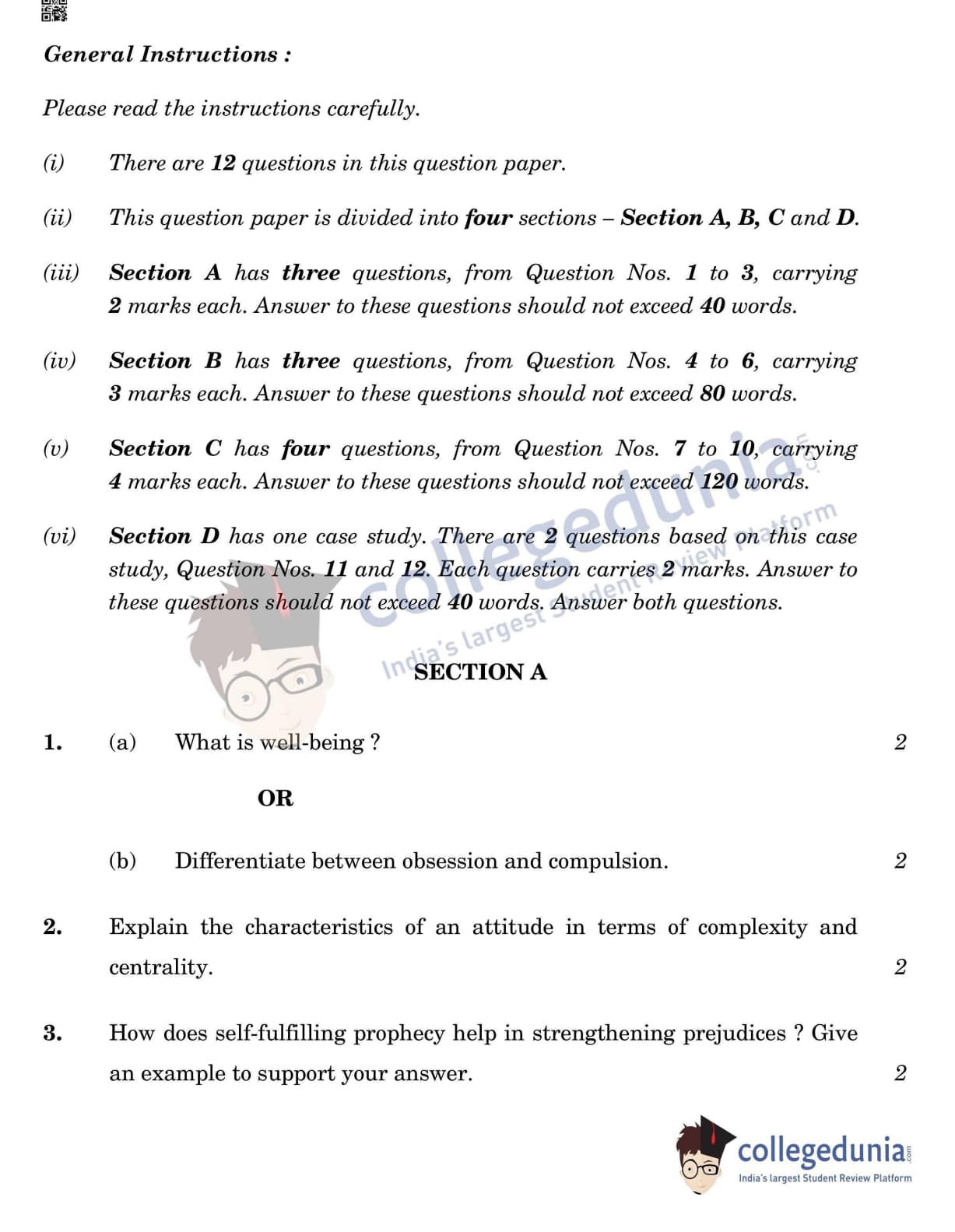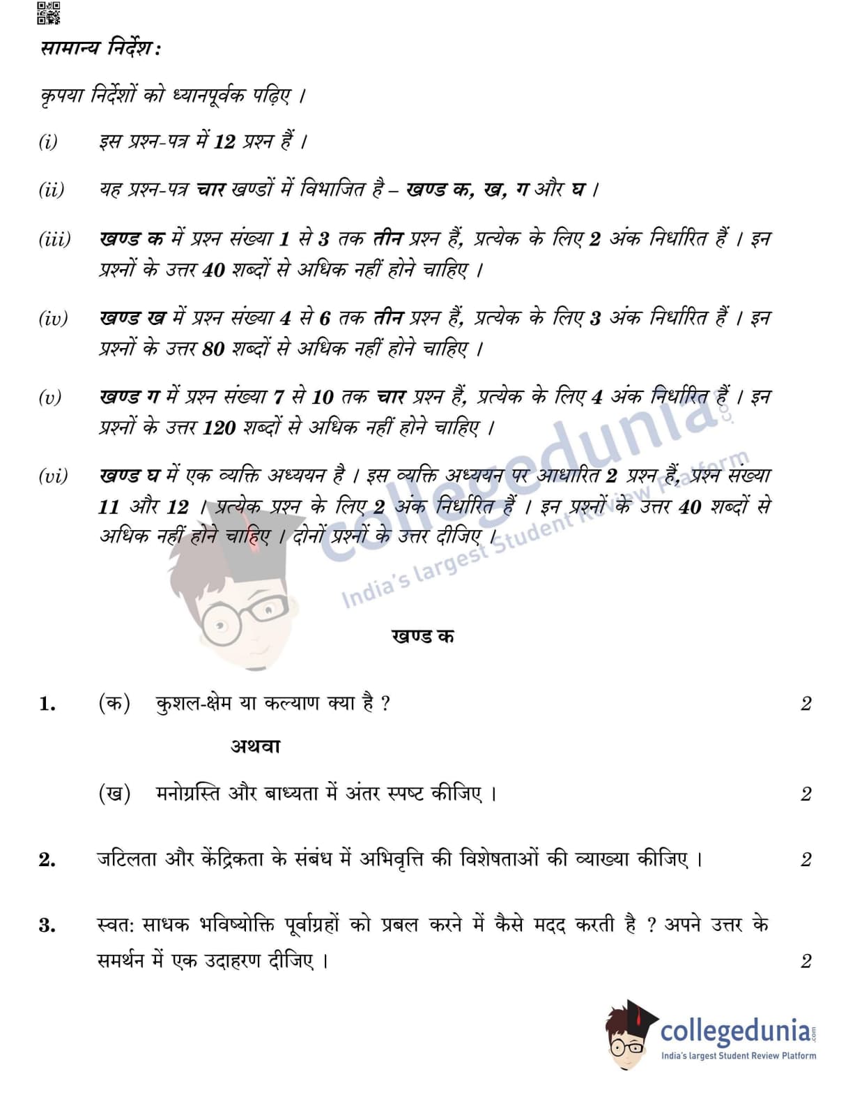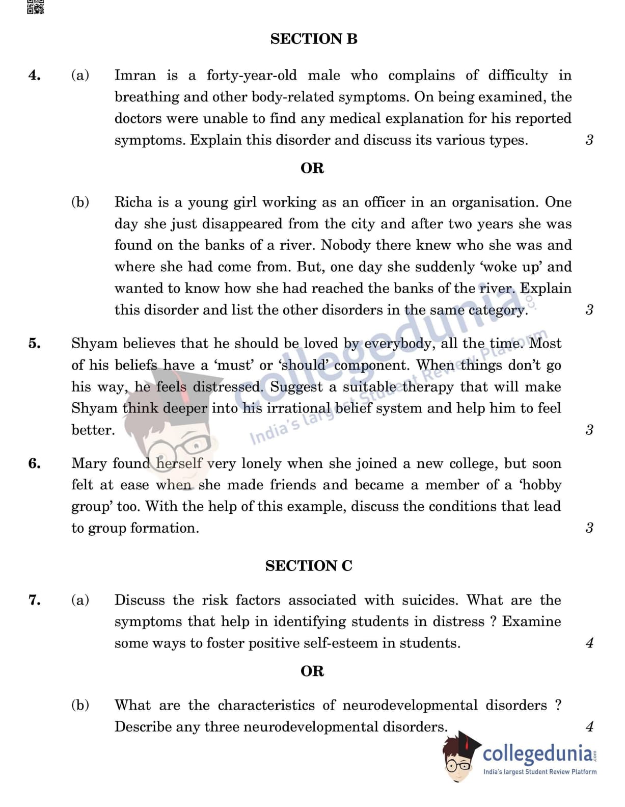CBSE Class 12 Psychology Question Paper 2022 with Answer Key (June 15, Set 4- Morning Session)