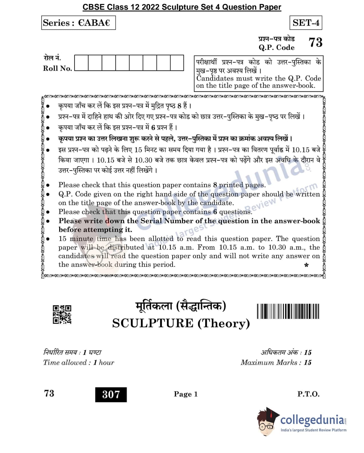 | CBSE Class 12 2022 Sculpture Question Paper PDF | CBSE Class 12 2022 Sculpture Answer Key PDF |