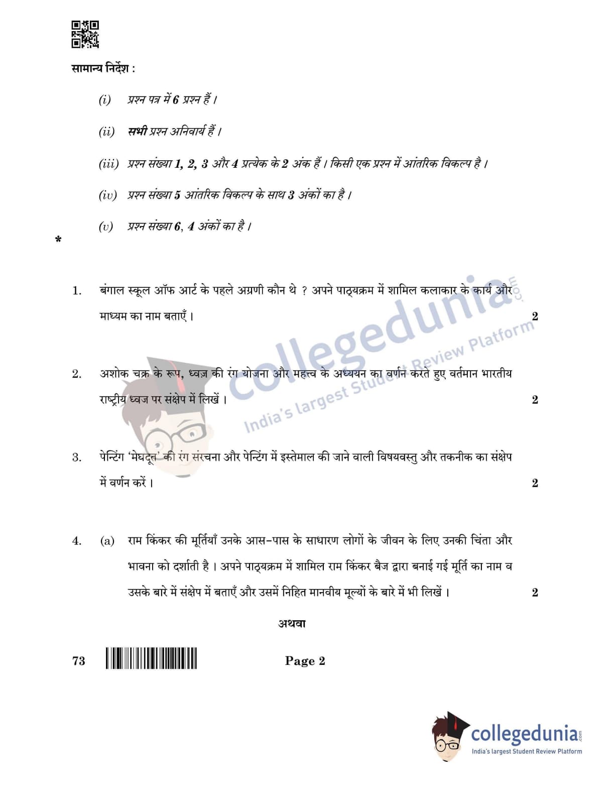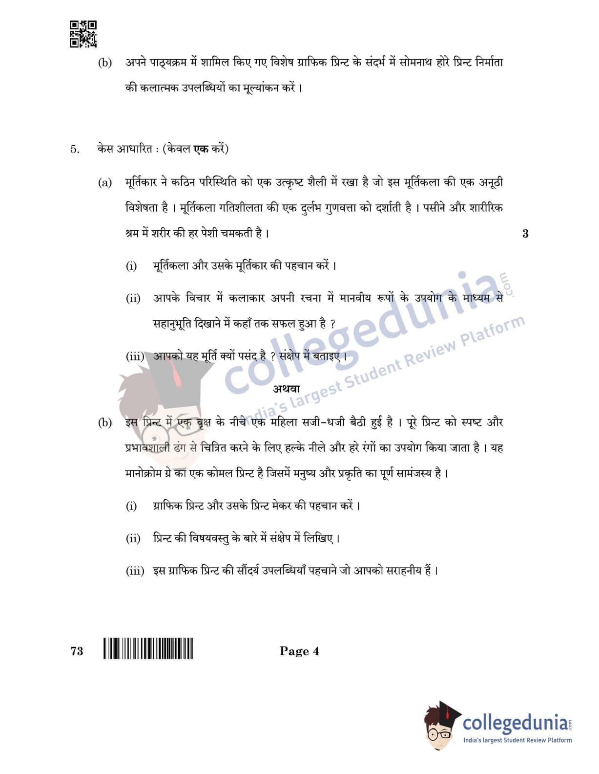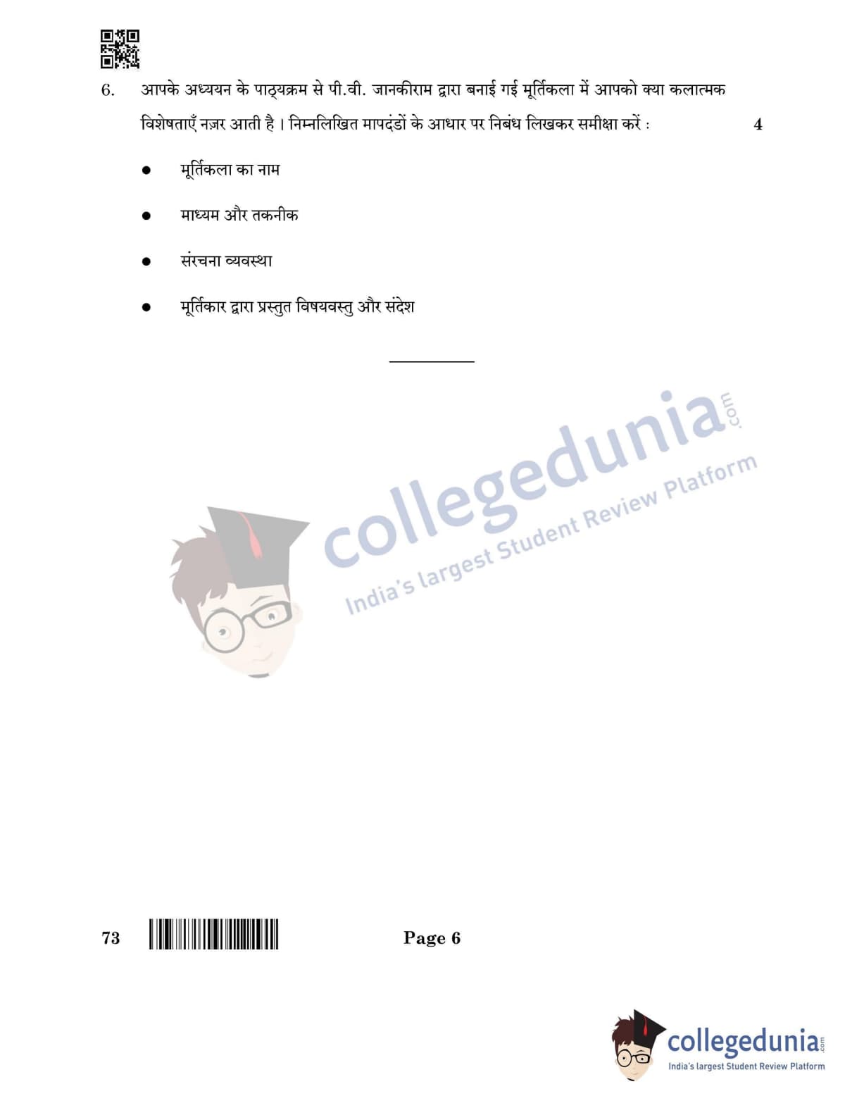 CBSE Class 12 Sculpture Question Paper 2022 with Answer Key (June 6, Set 4- Morning Session)
