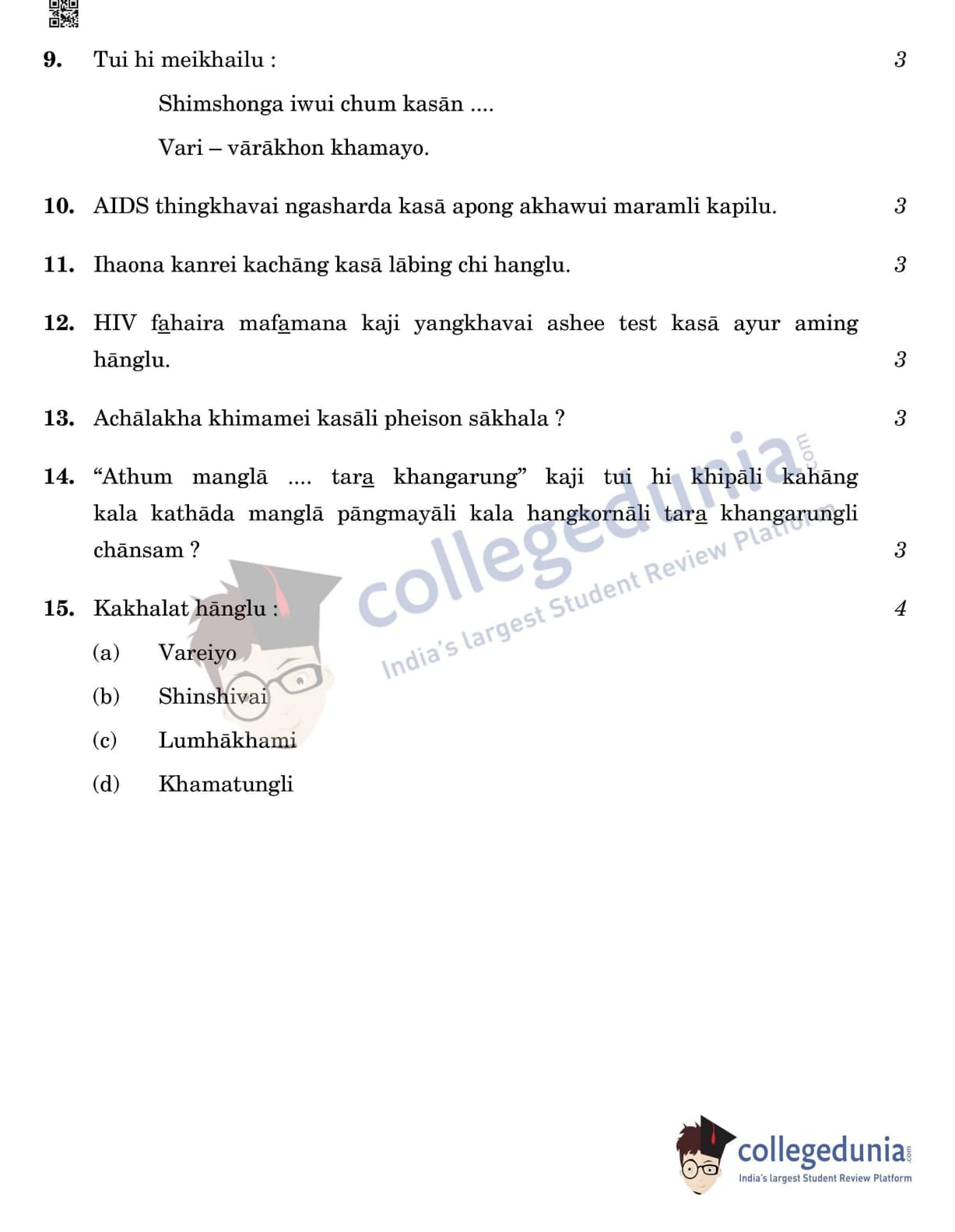 CBSE Class 12 Tangkhul Question Paper 2022 with Answer Key (May 11, Set 4- Morning Session)