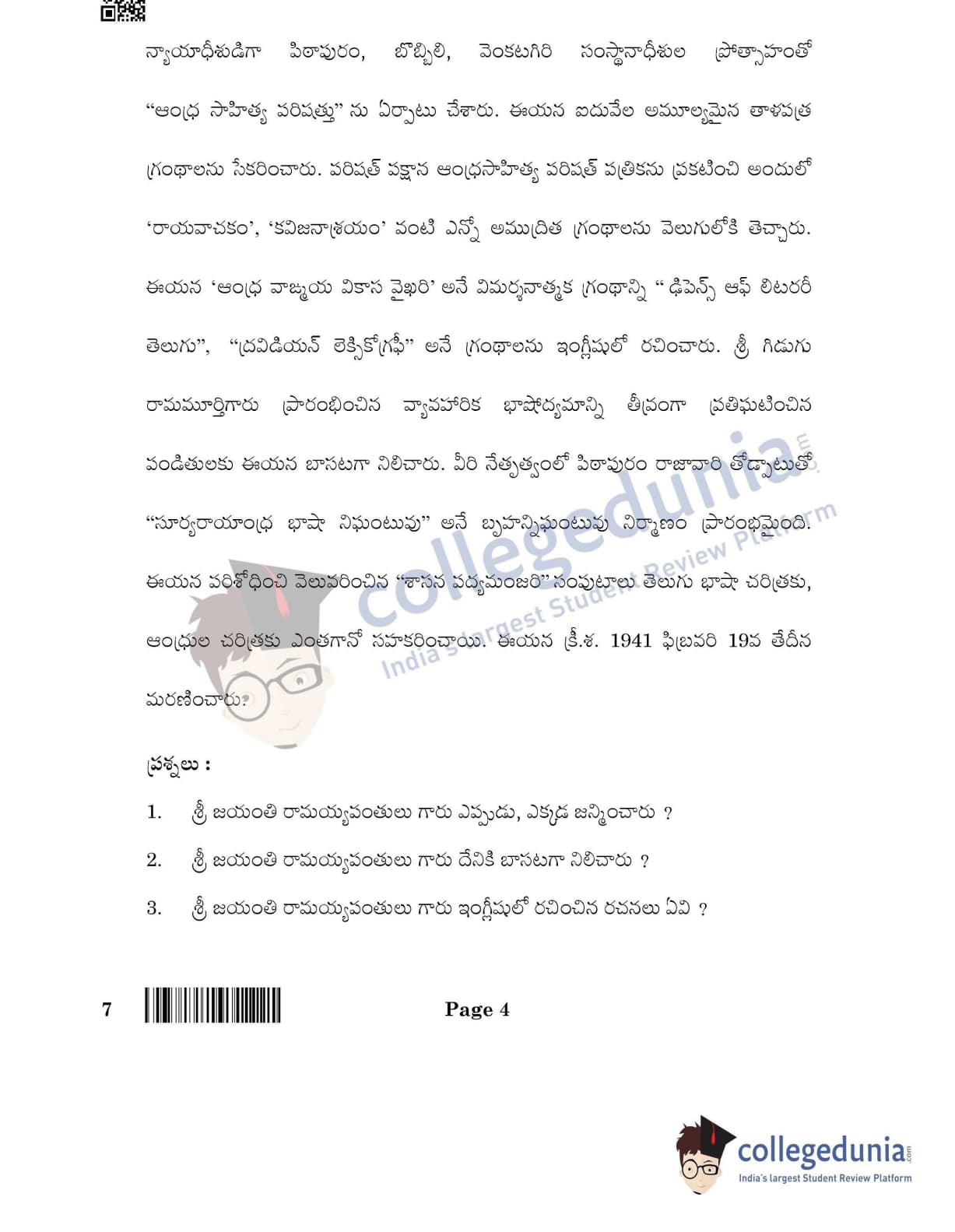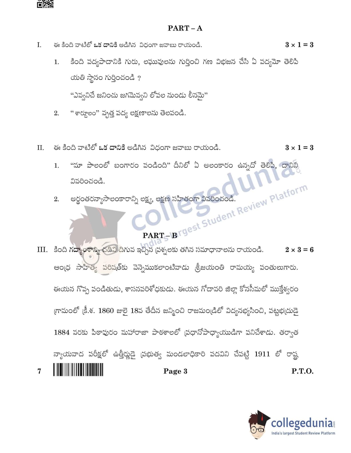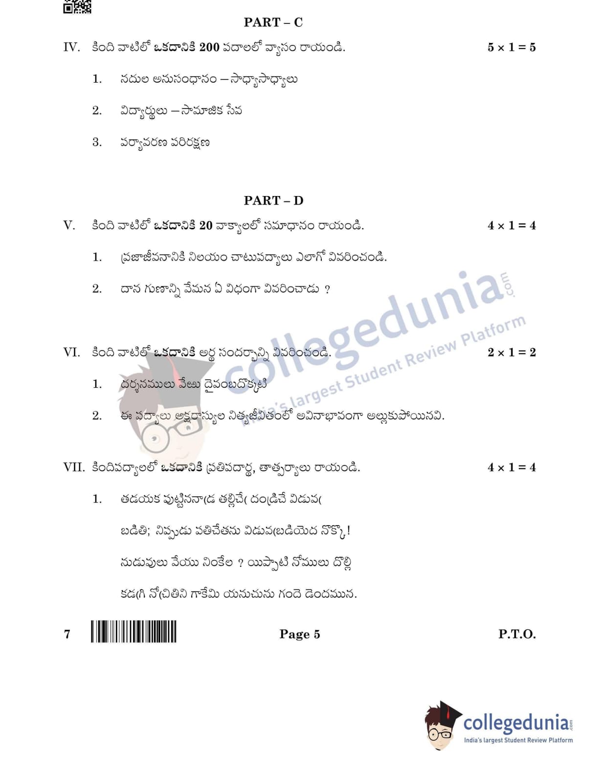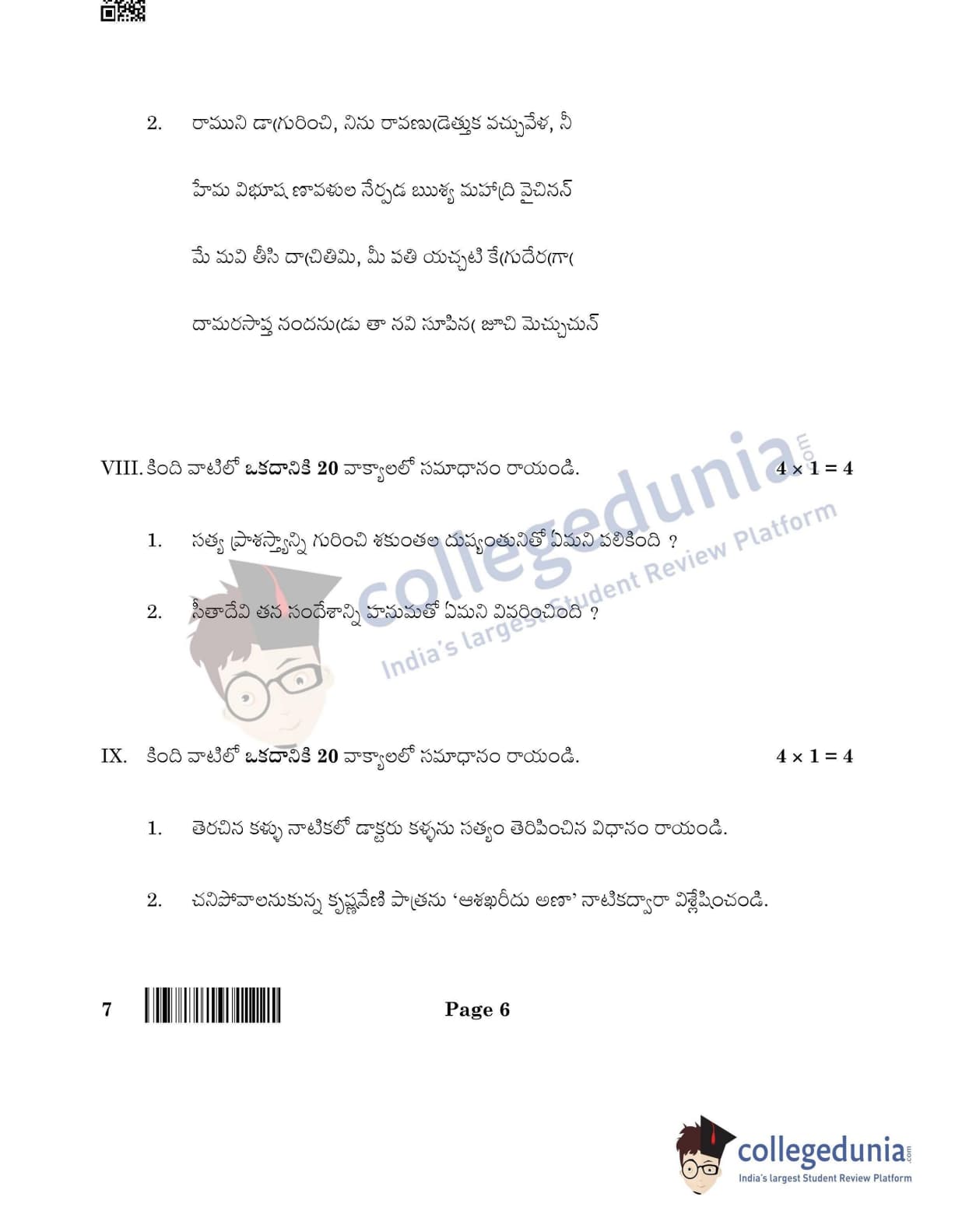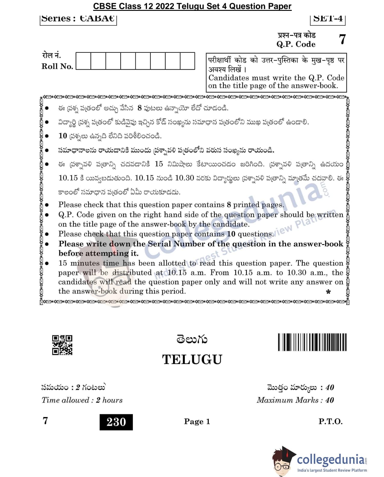 CBSE Class 12 Telugu Question Paper 2022 with Answer Key (May 11, Set 4- Morning Session)
