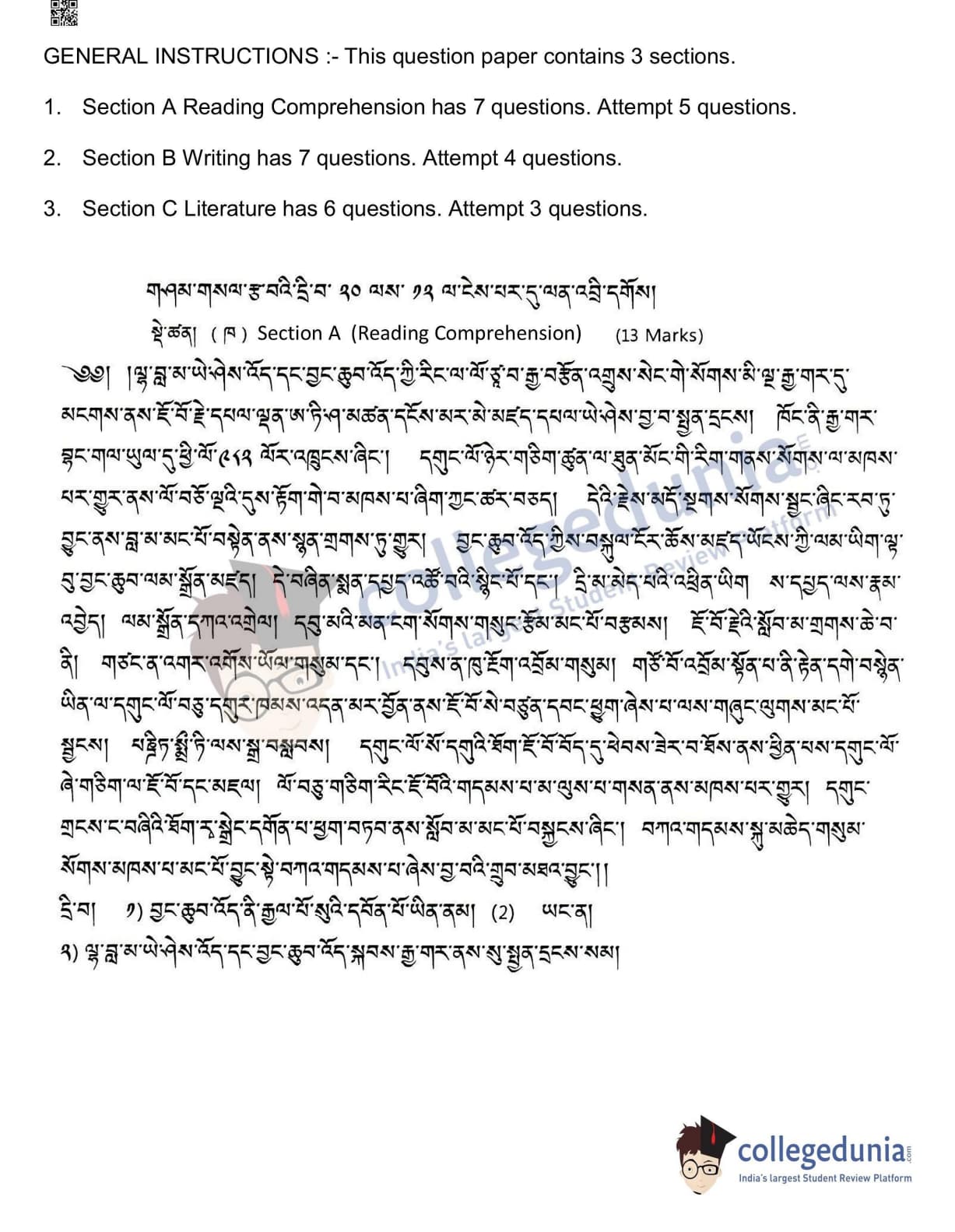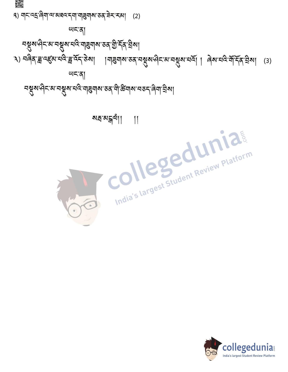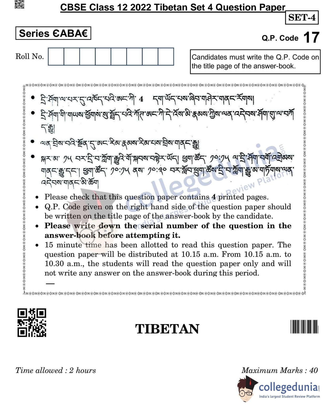 CBSE Class 12 Tibetan Question Paper 2022 with Answer Key (May 11, Set 4- Morning Session)