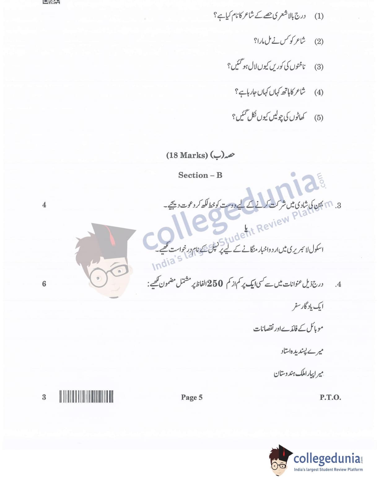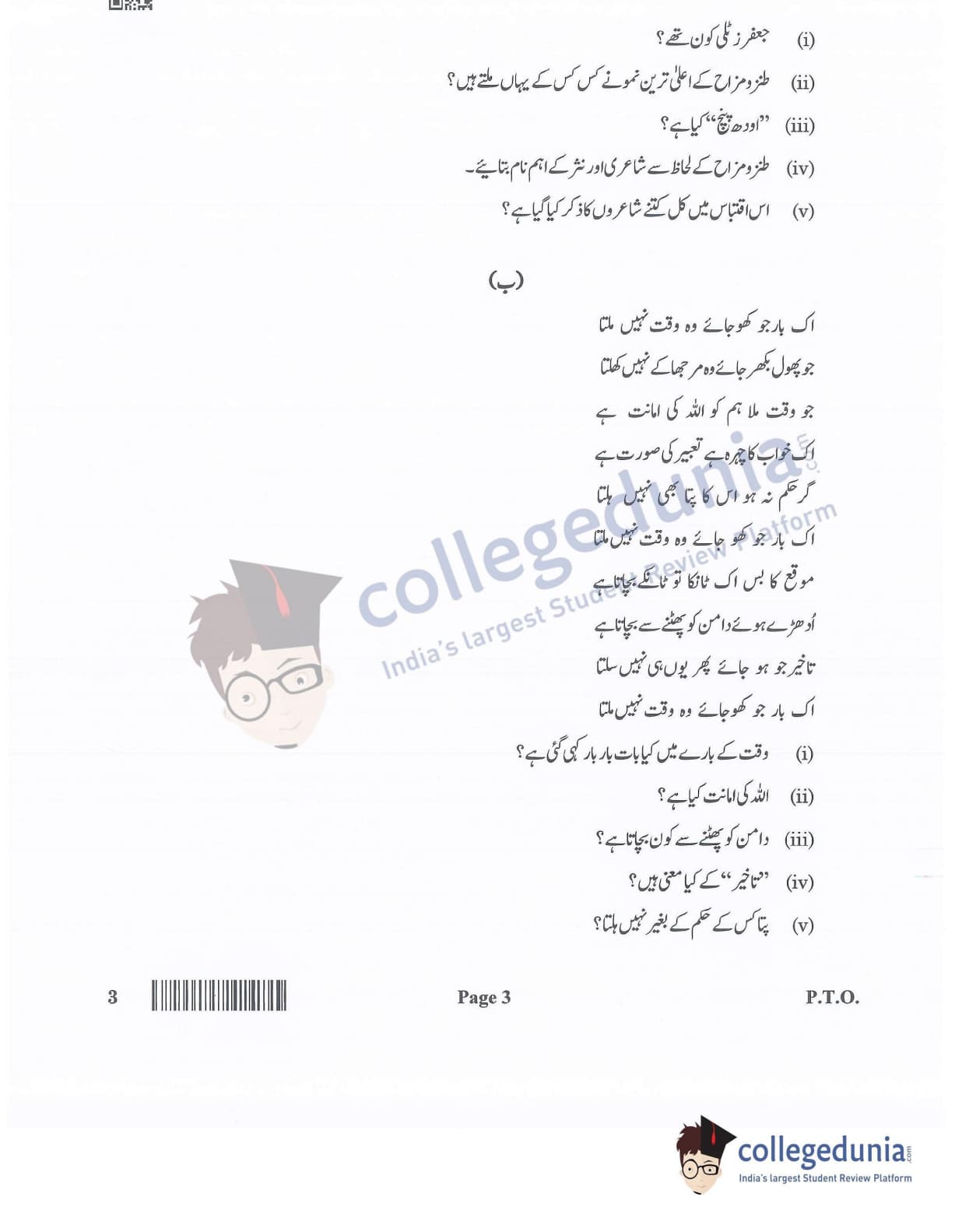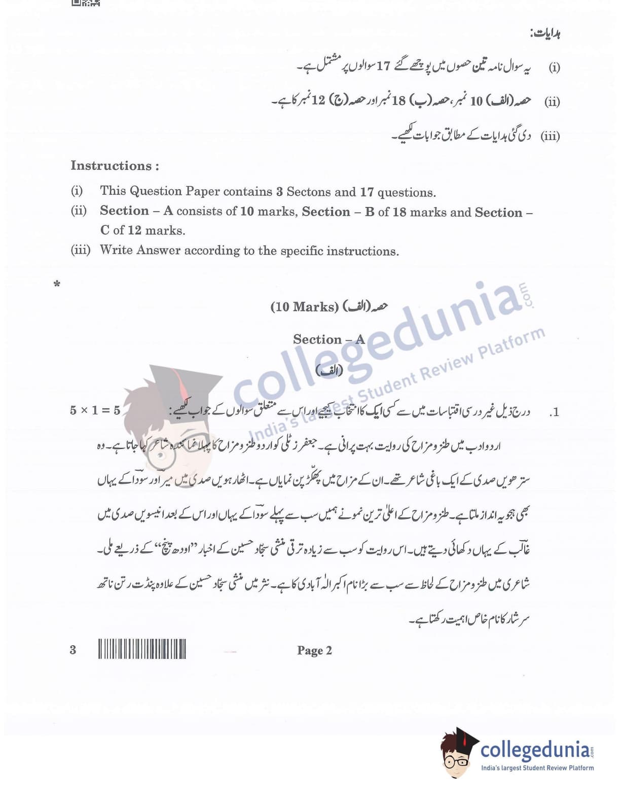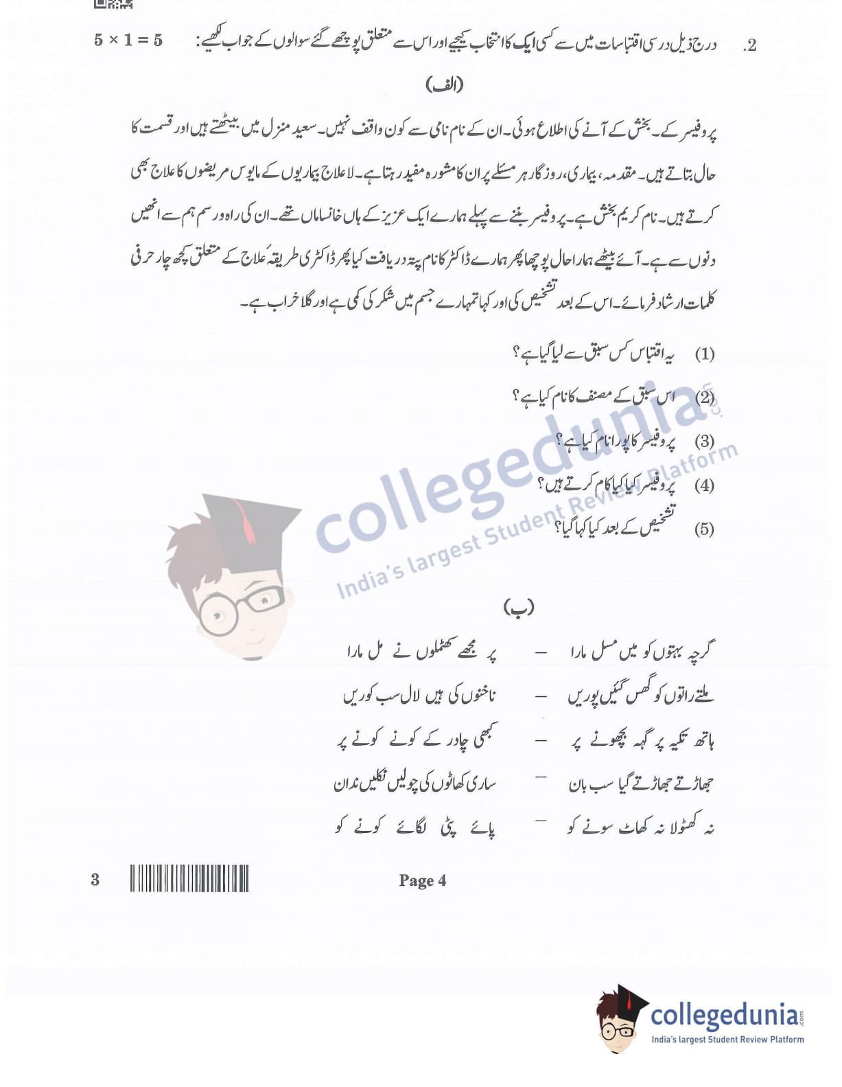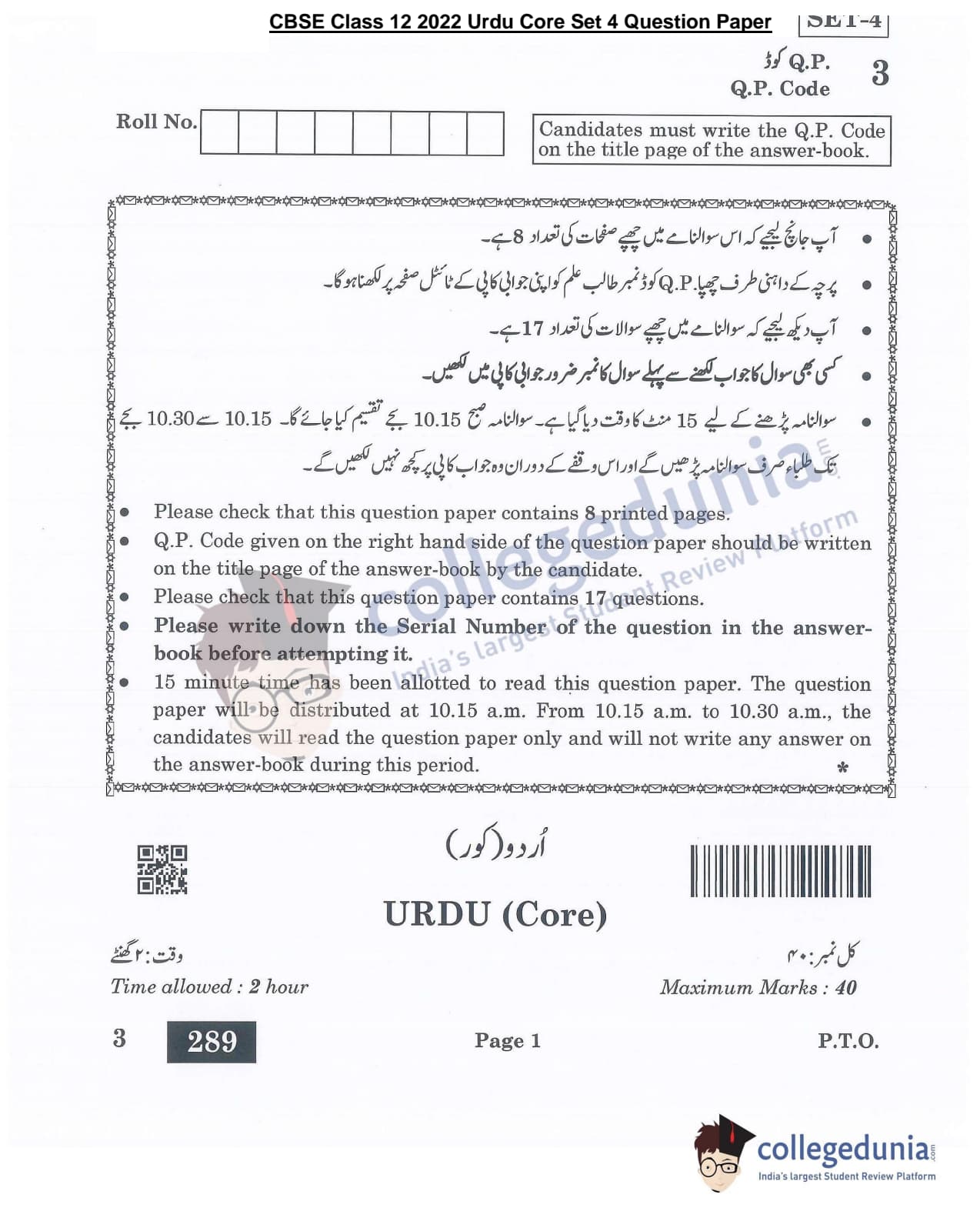 CBSE Class 12 Urdu Core Question Paper 2022 with Answer Key (May 27, Set 4- Morning Session)