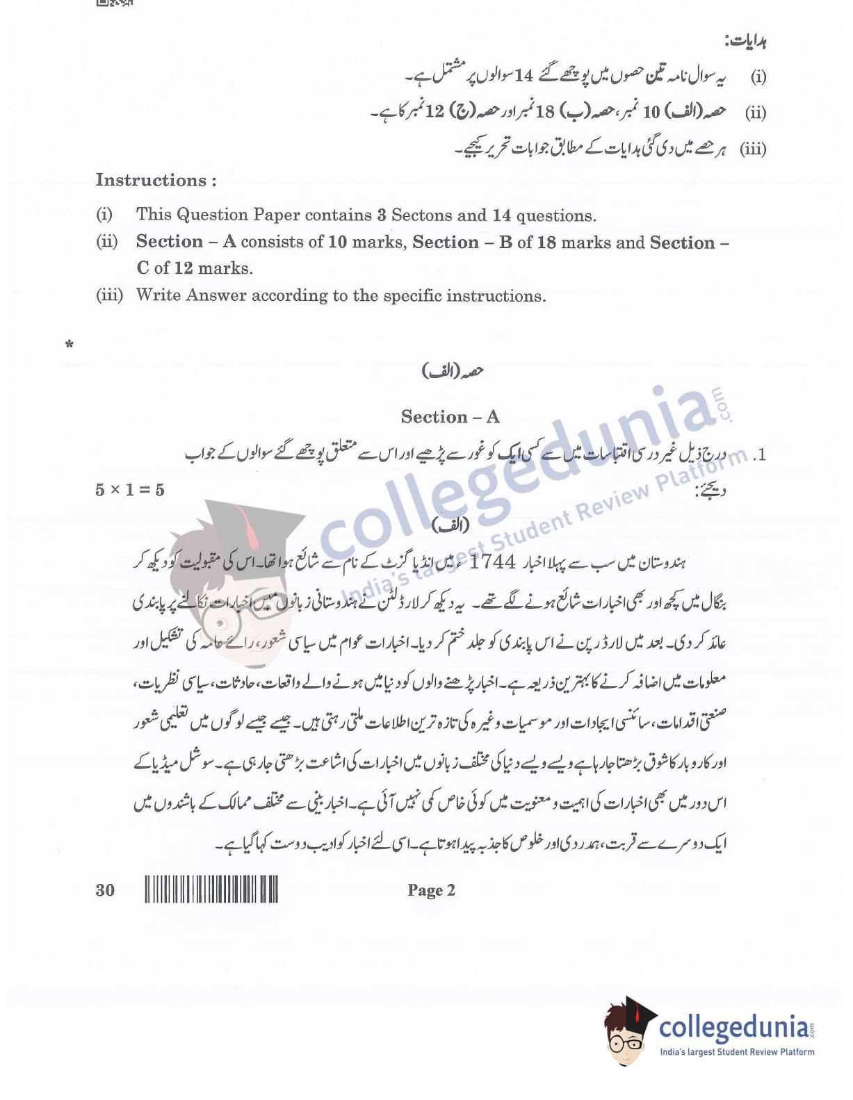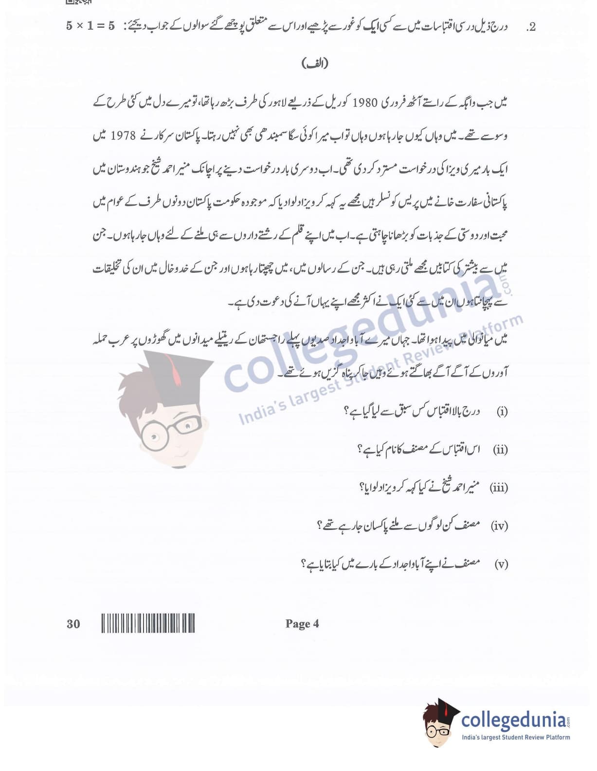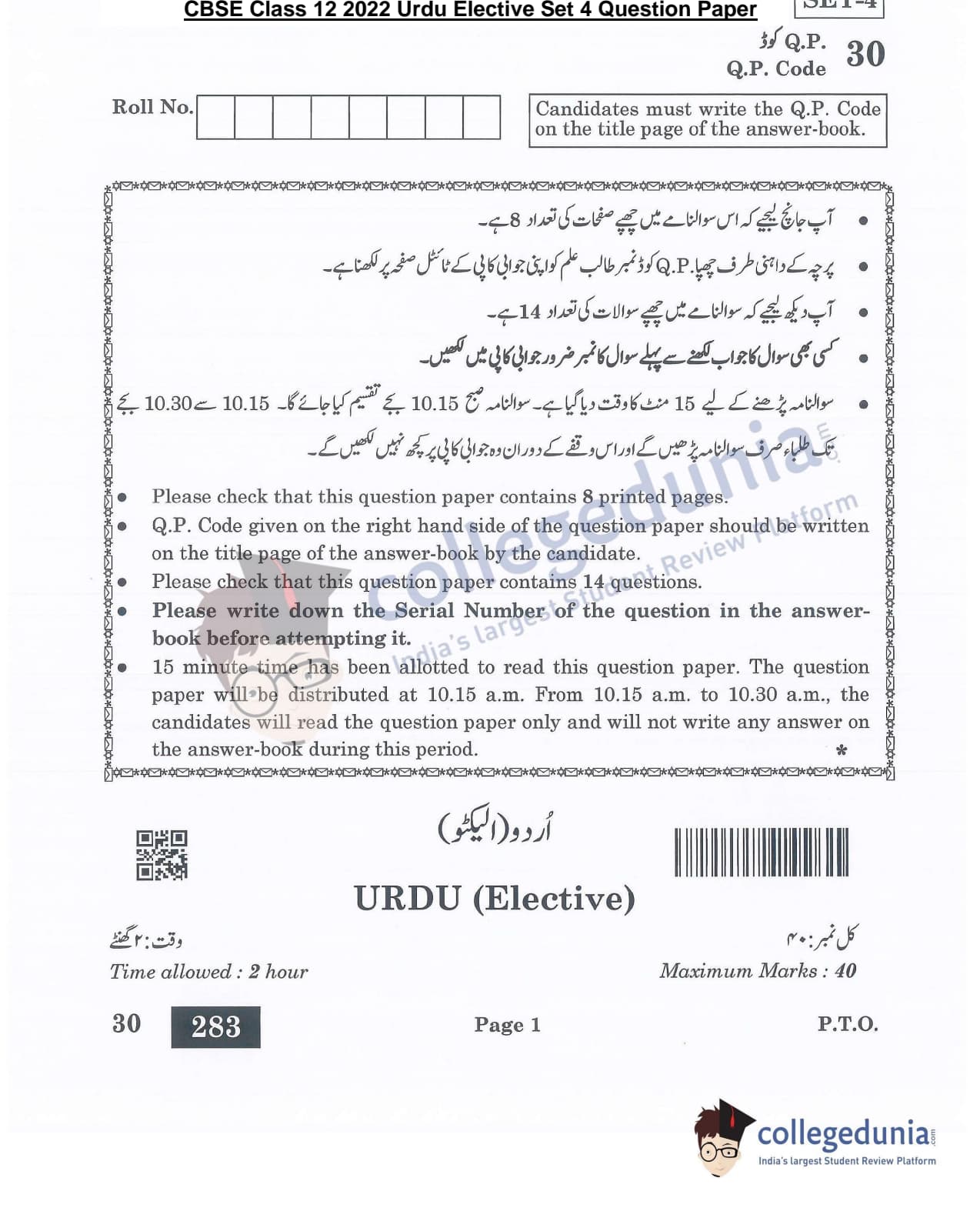 CBSE Class 12 Urdu Elective Question Paper 2022 with Answer Key (May 31, Set 4- Morning Session)