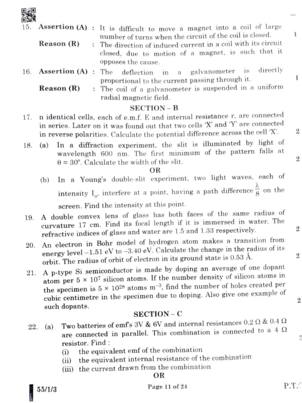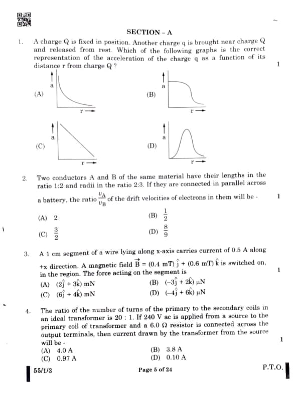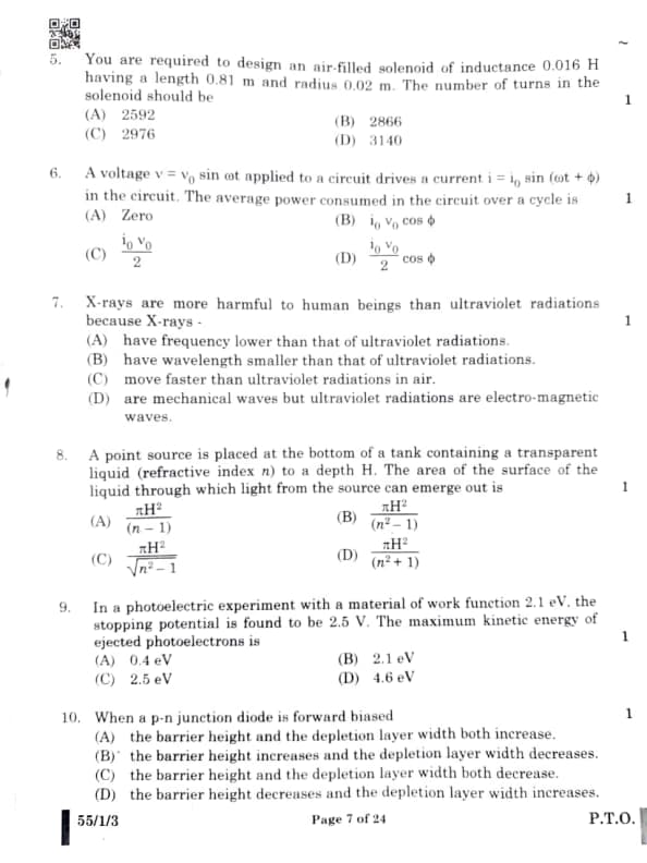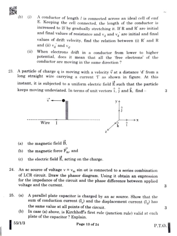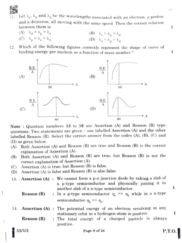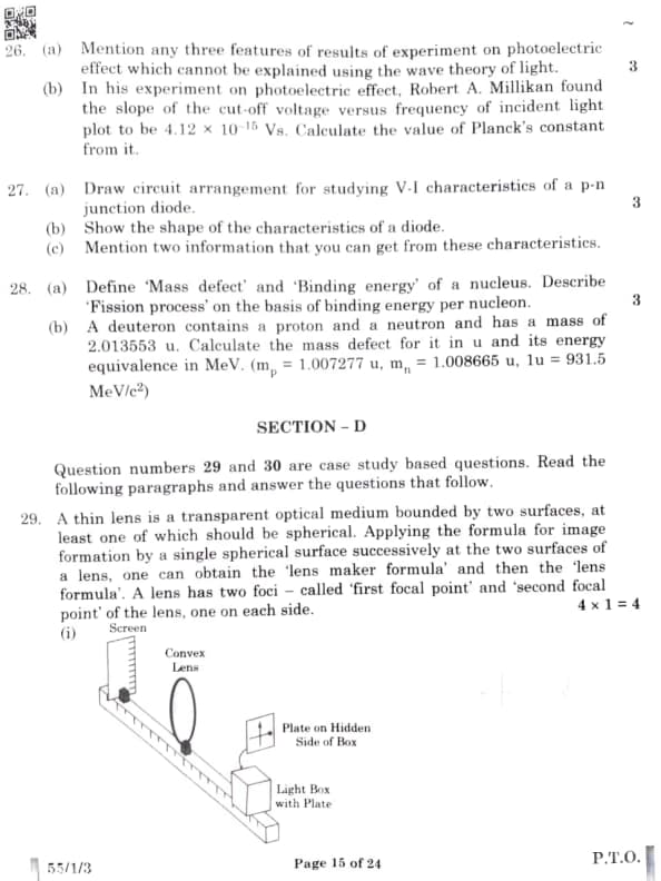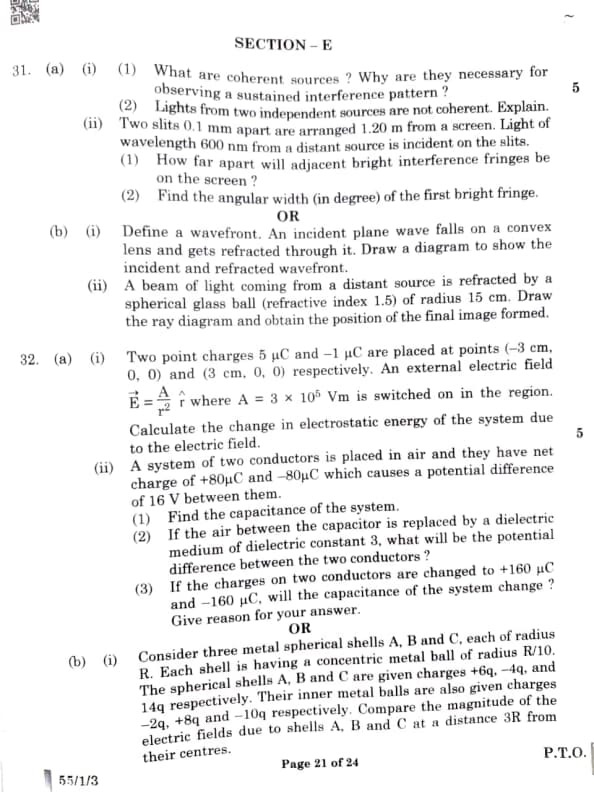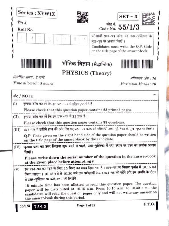 CBSE Board Class 12 Physics (55/1/3) Question Paper 2025 with Solutions