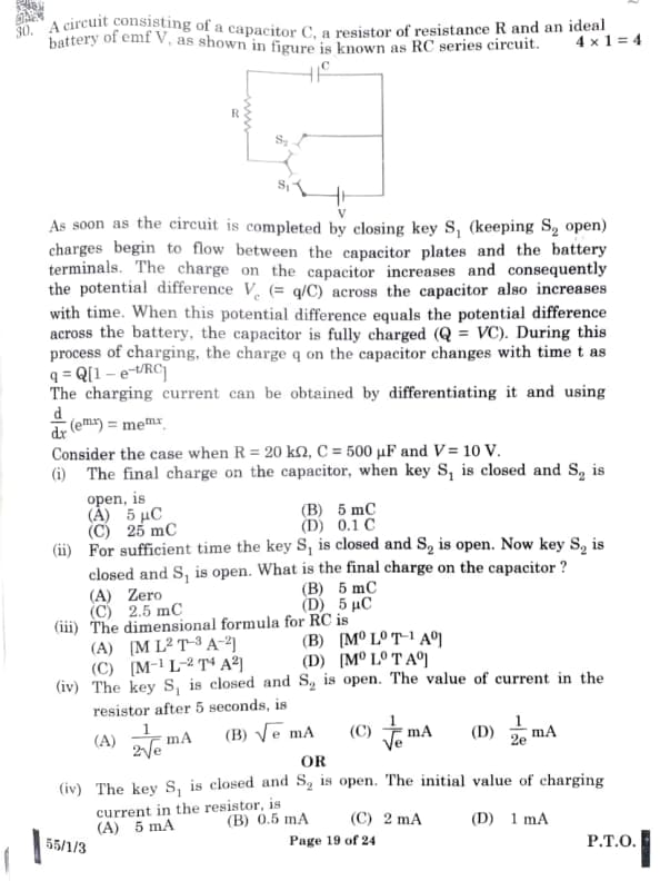 (I) The final charge on the capacitor, when key \( S_1 \) is closed and \( S_2 \) is open, is: