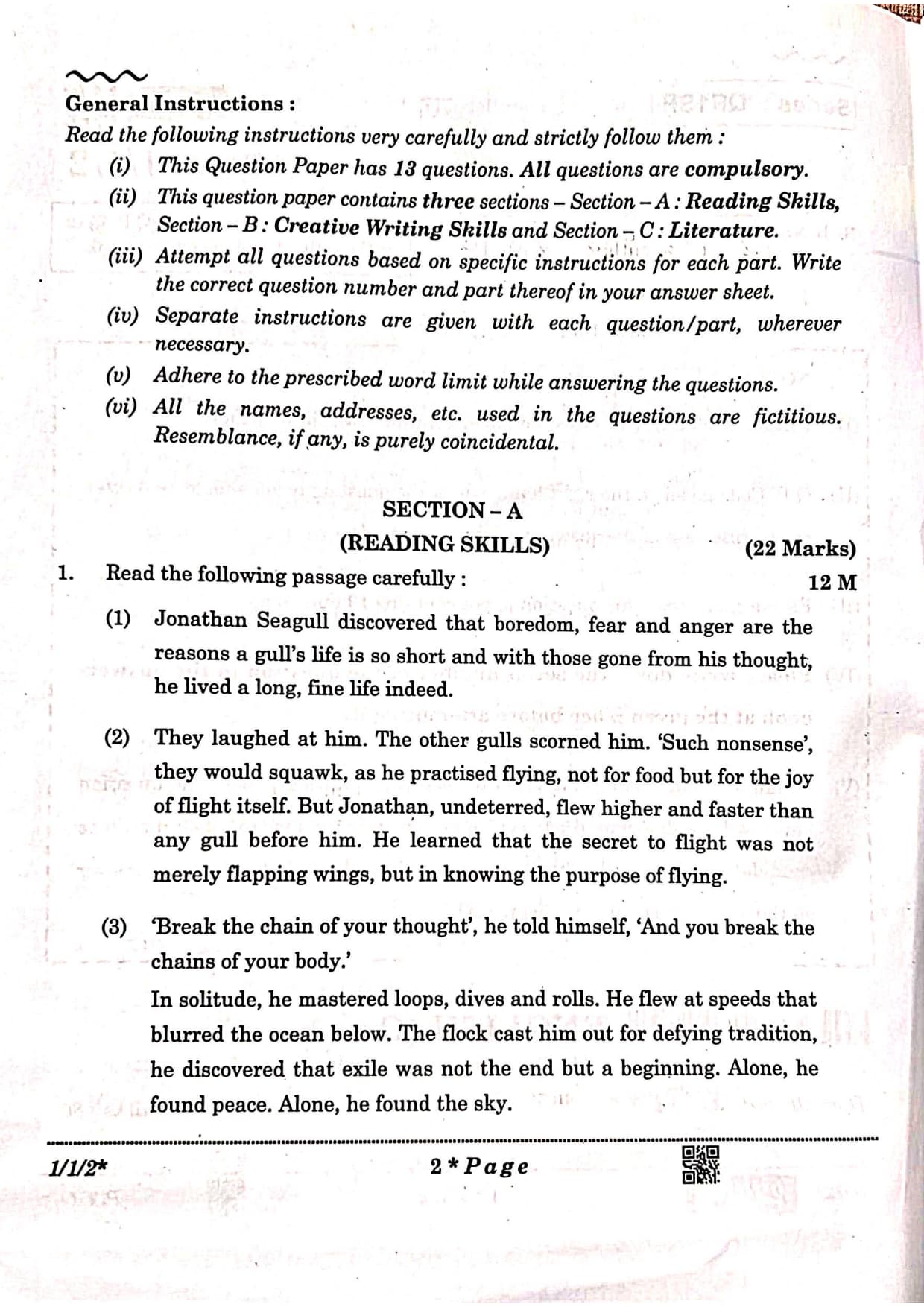 CBSE Class 12 2026 English Core Set 2 Question Paper with Solution PDF