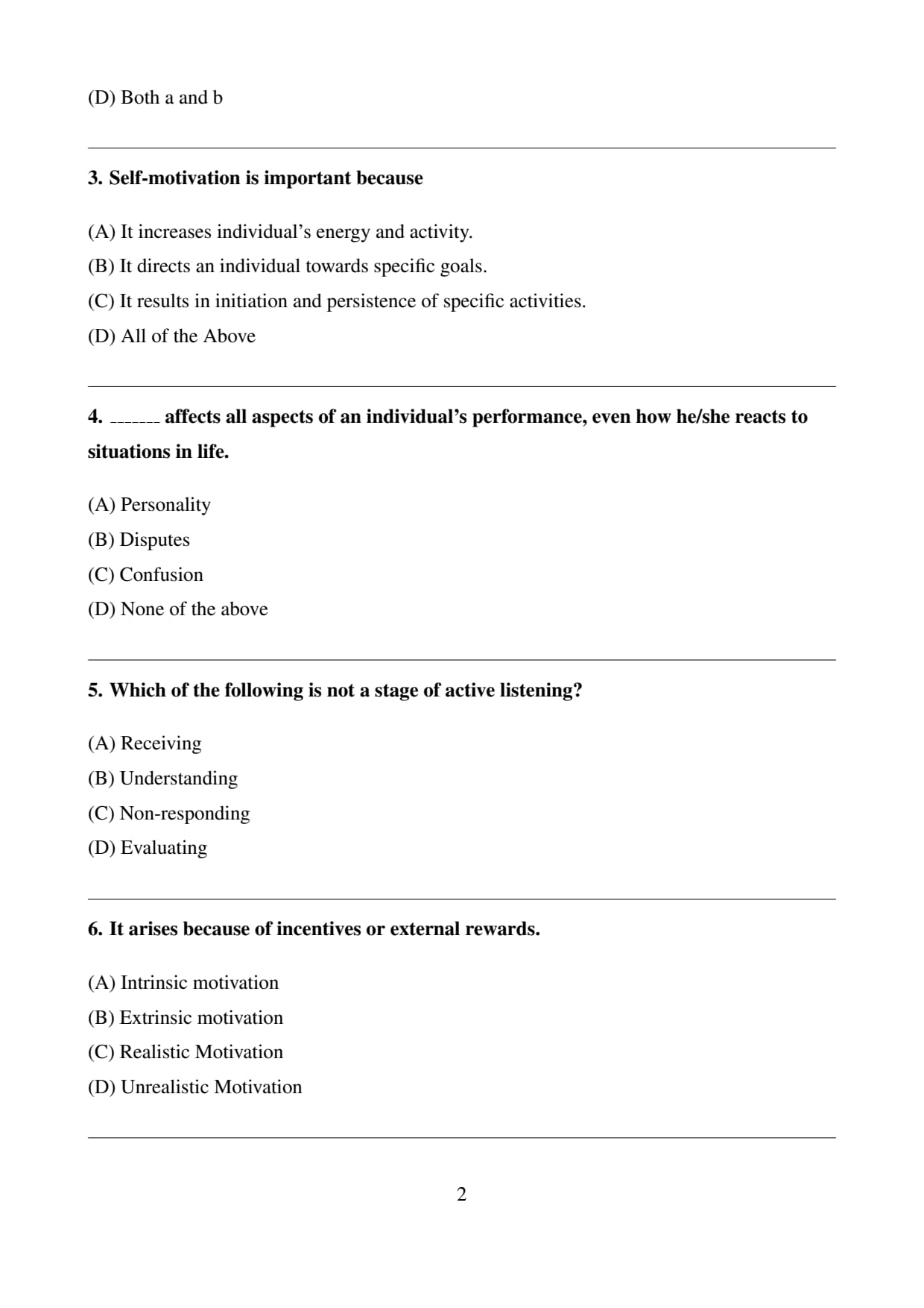 _____ affects all aspects of an individual’s performance, even how he/she reacts to situations in life.