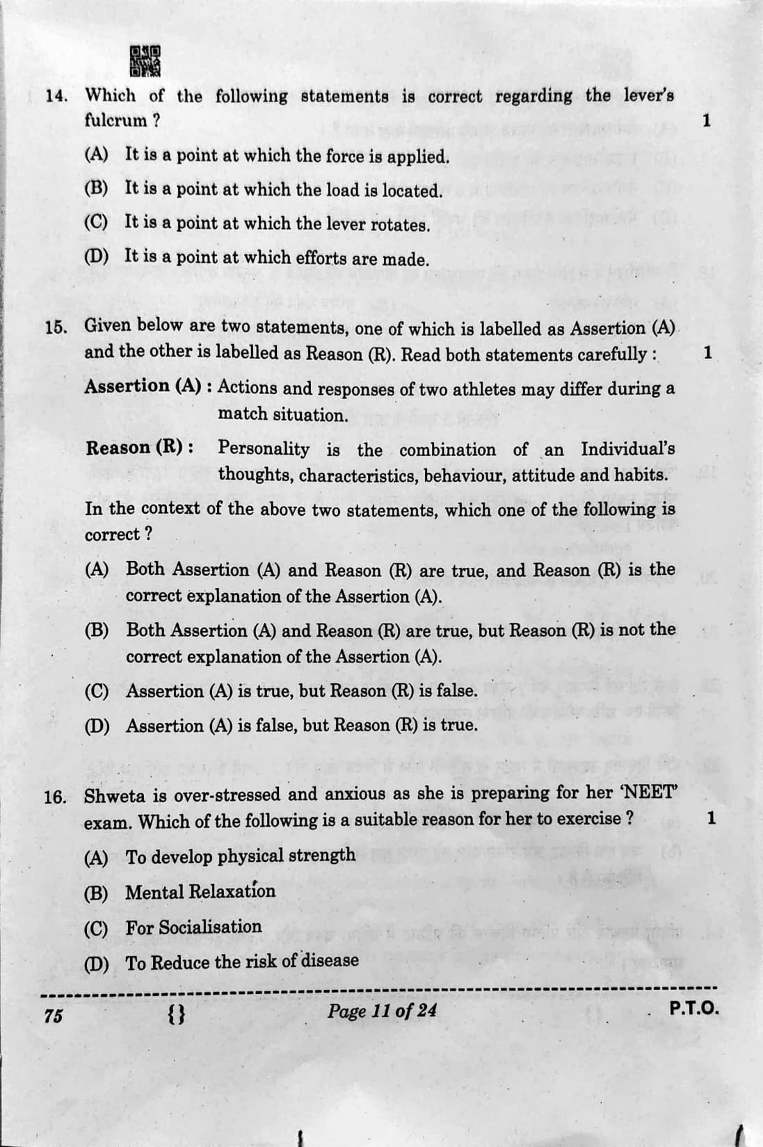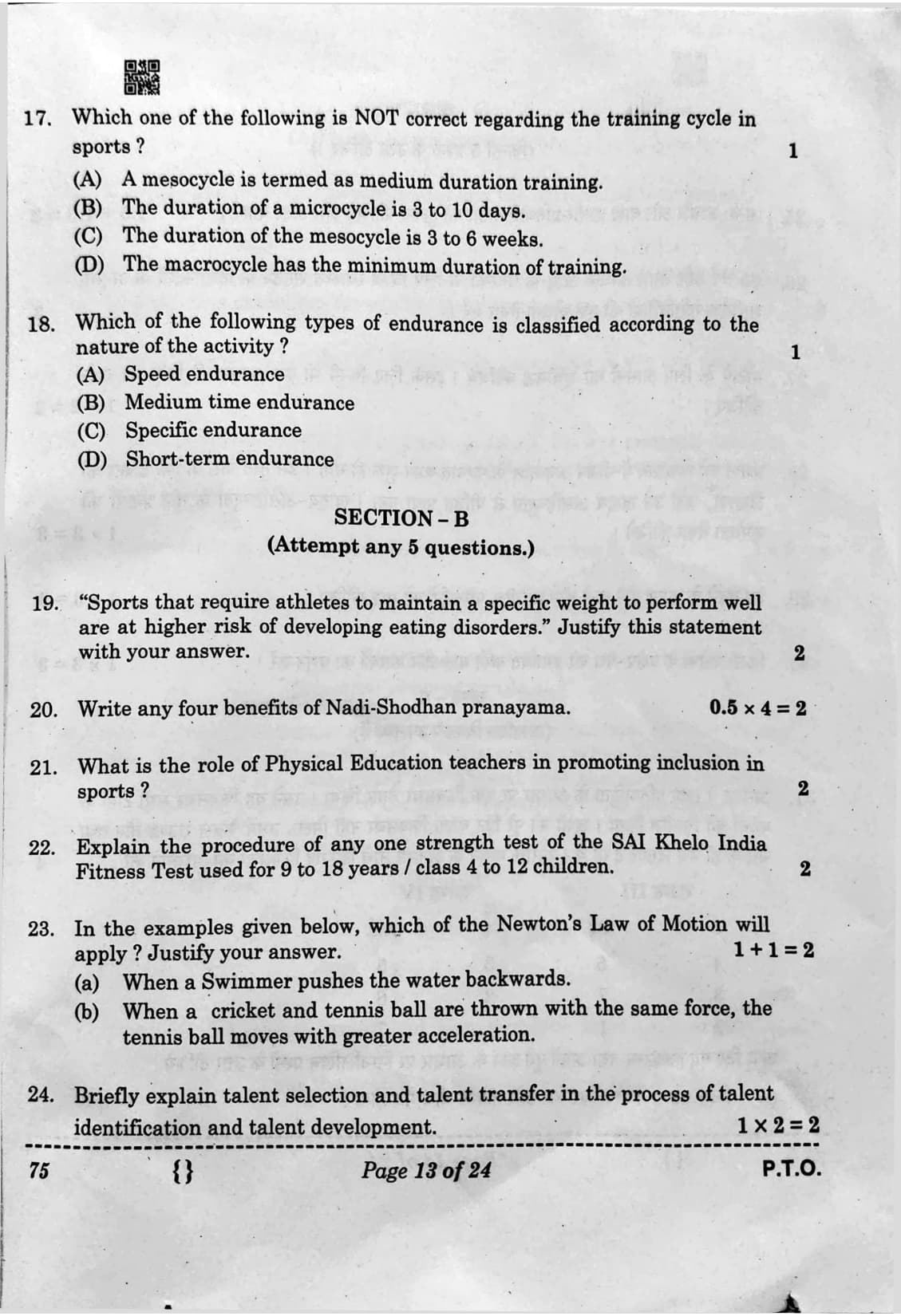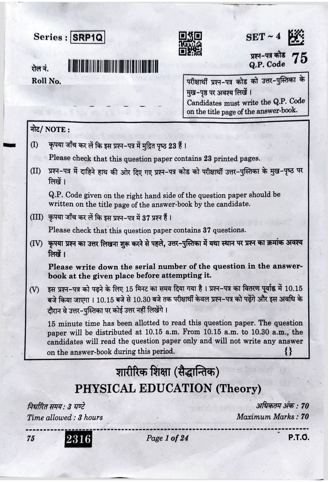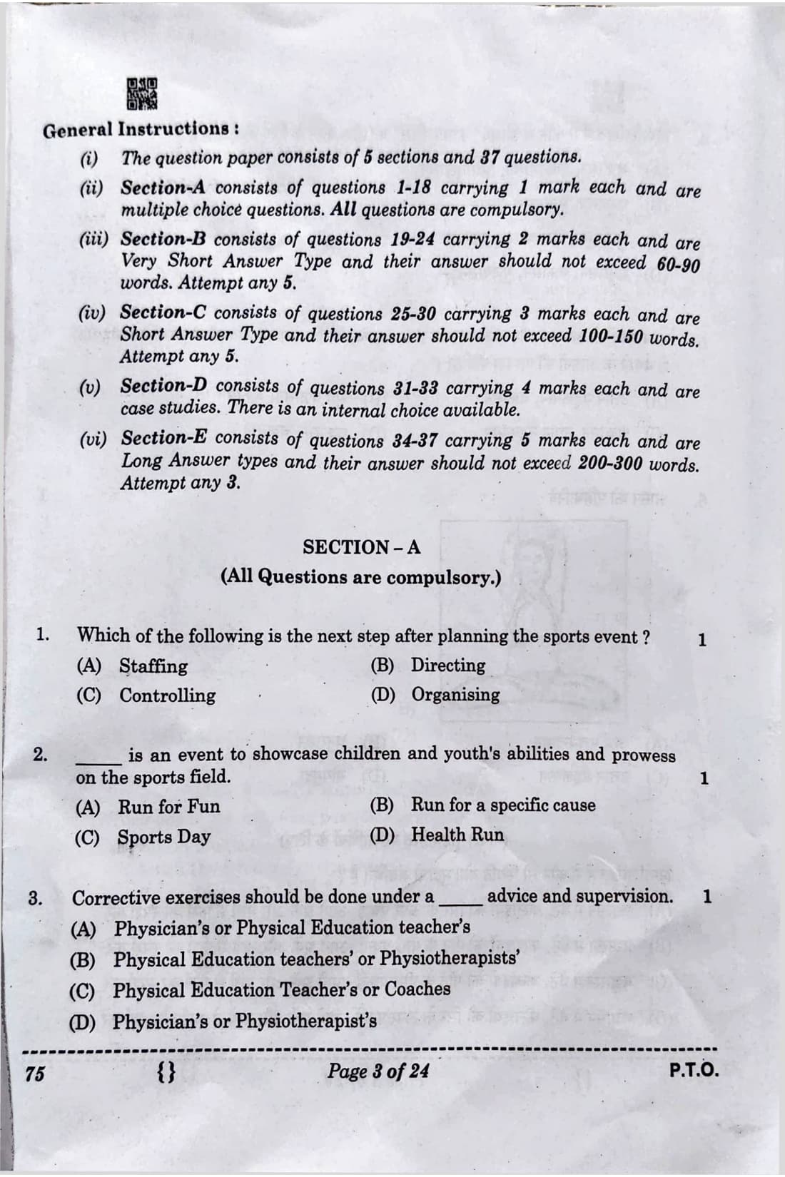 CBSE Class 12 2026 Physical Education Question Paper PDF