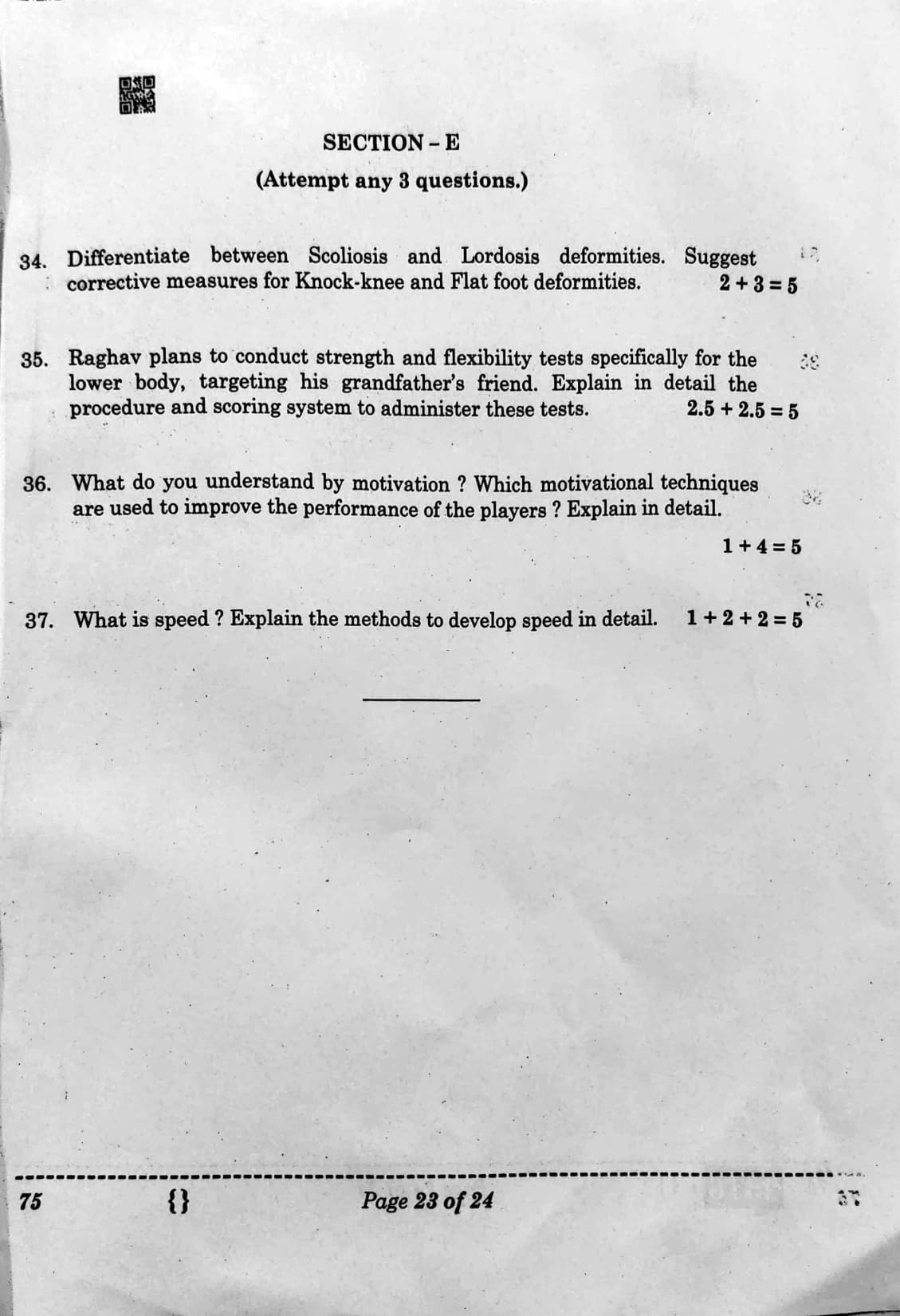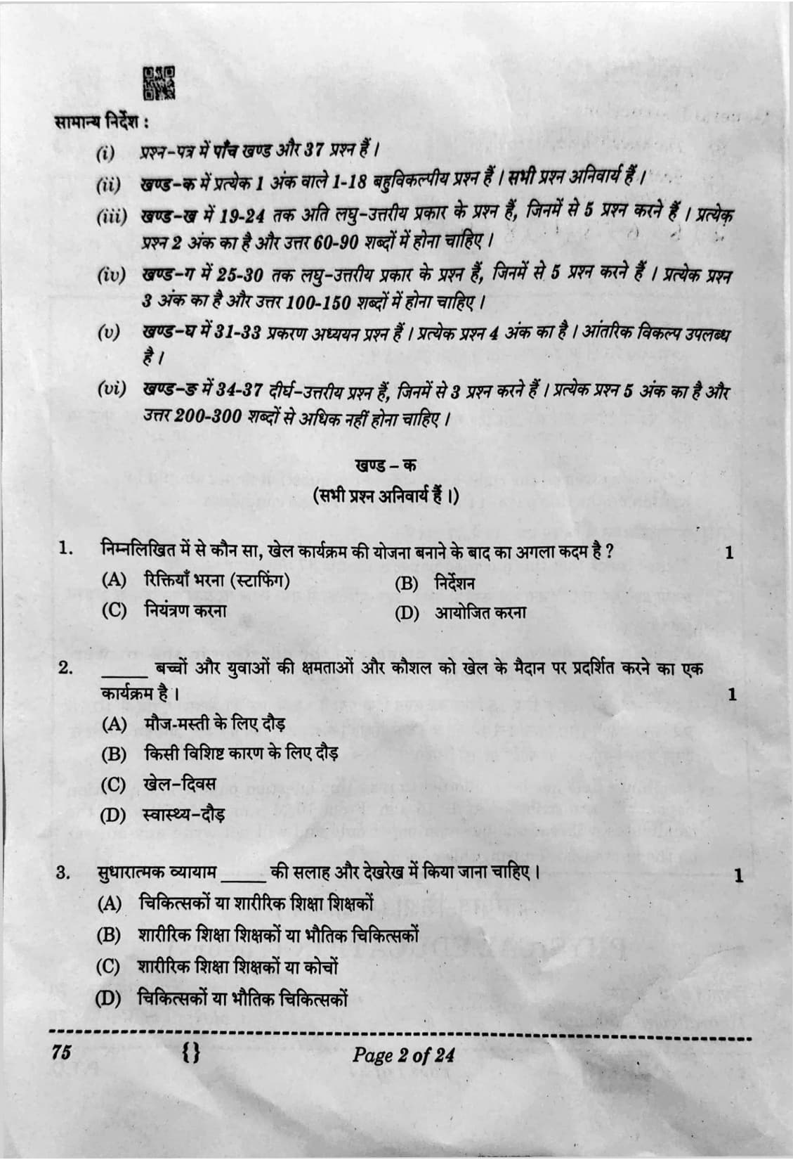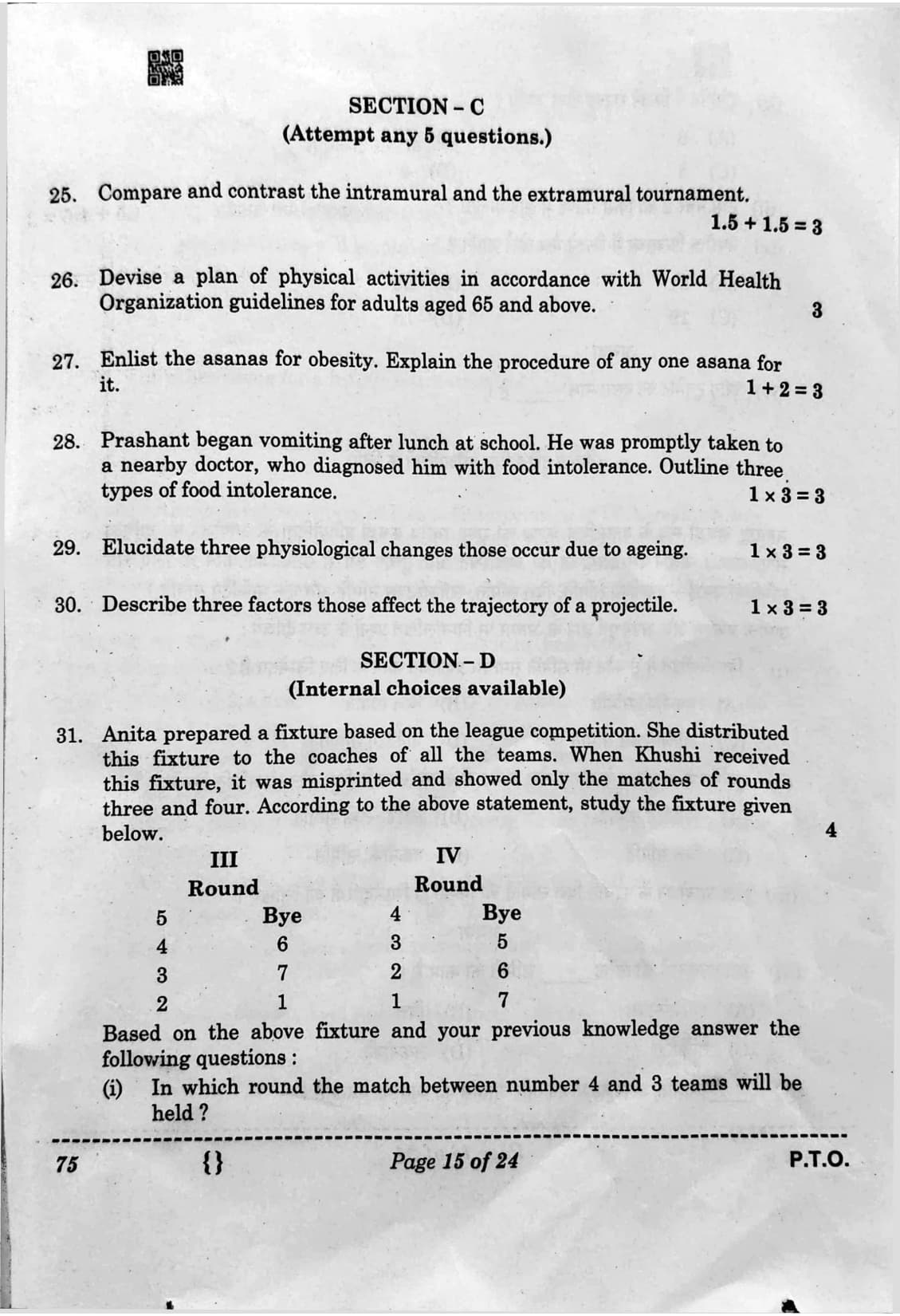 CBSE Class 12 2026 Physical Education Question Paper PDF