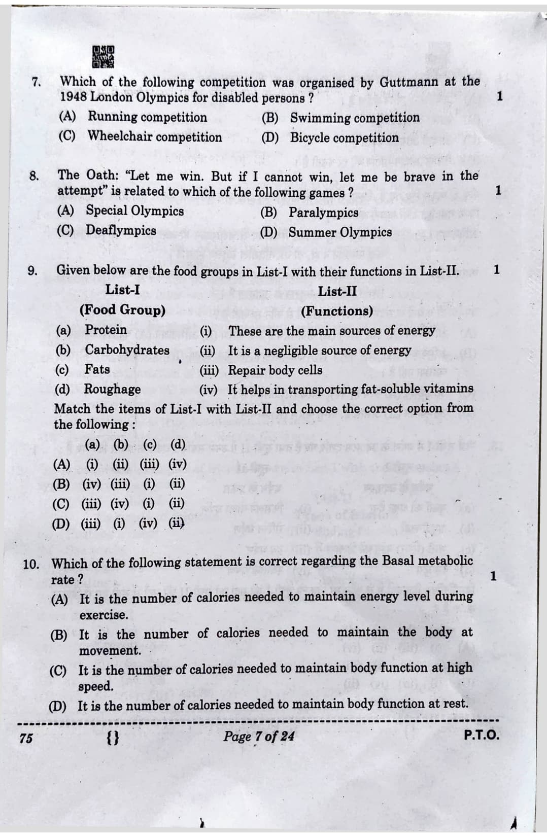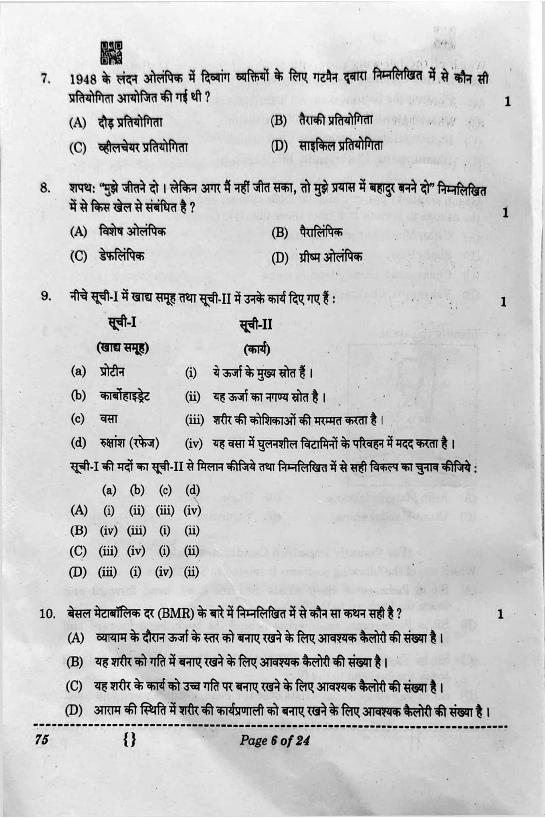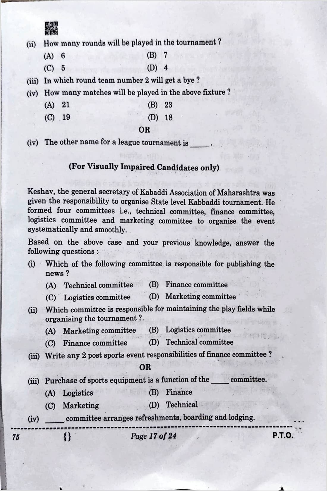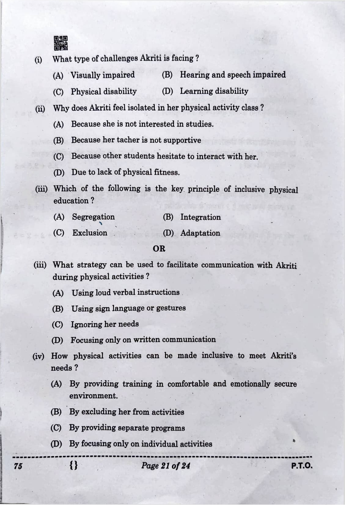 CBSE Class 12 2026 Physical Education Question Paper PDF