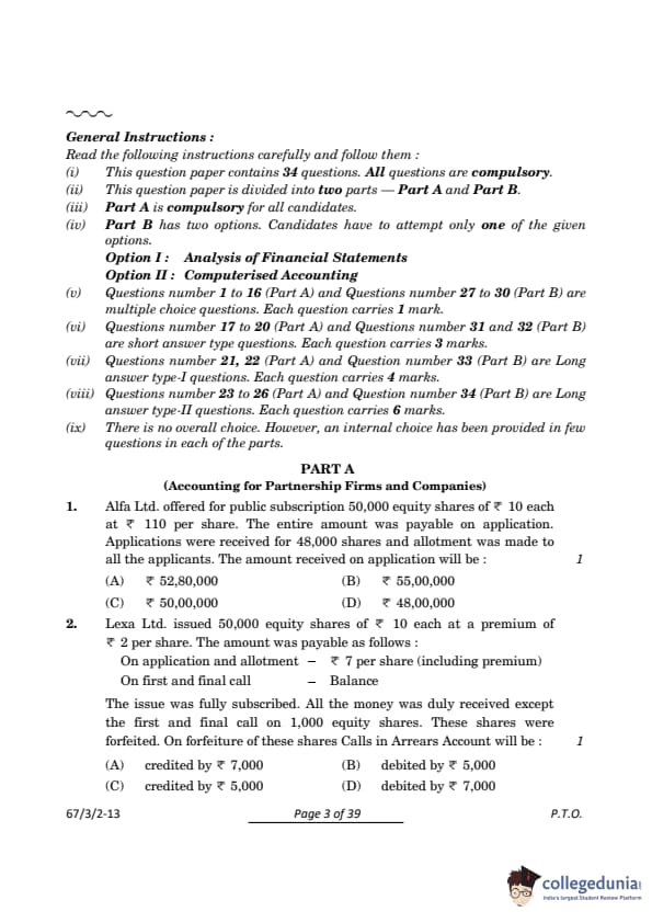 | CBSE Class 12 2024 Accountancy Question Paper with Answer Key | Check Solution |