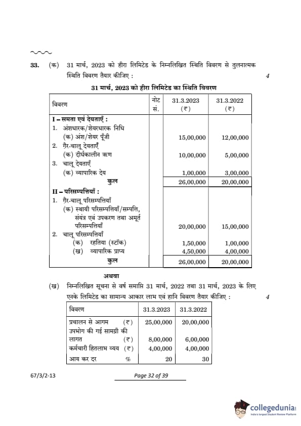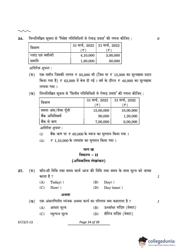 CBSE Class 12 Accountancy Question Paper 2024 (Set 2- 67/3/2) with Answer Key