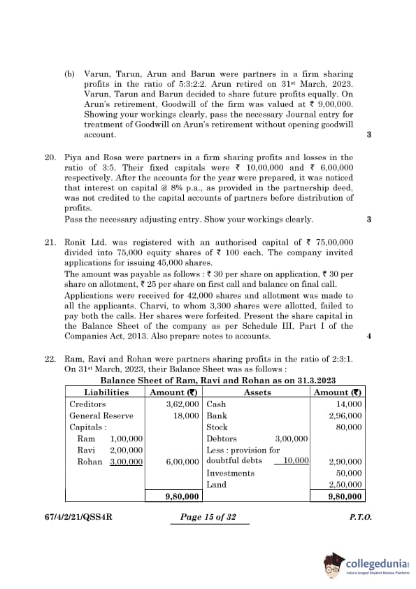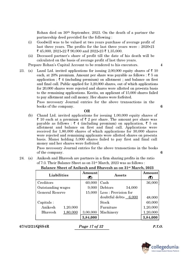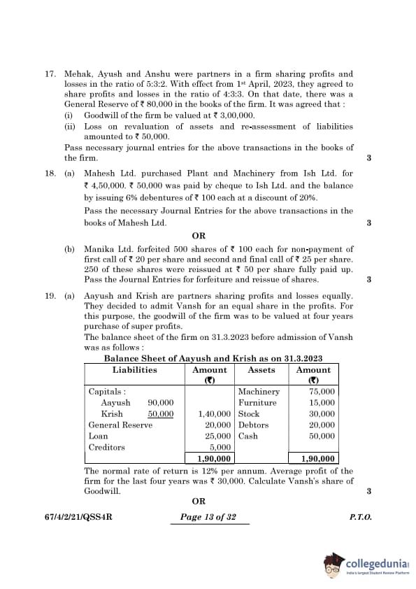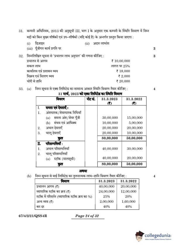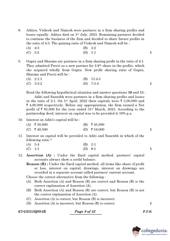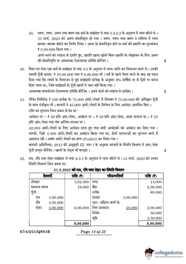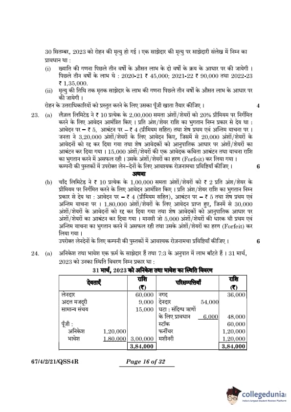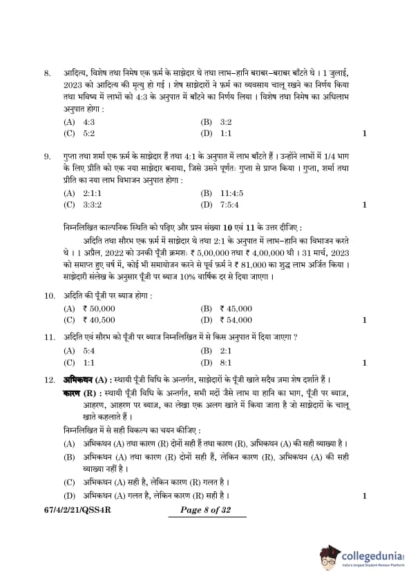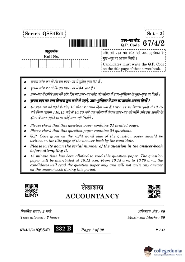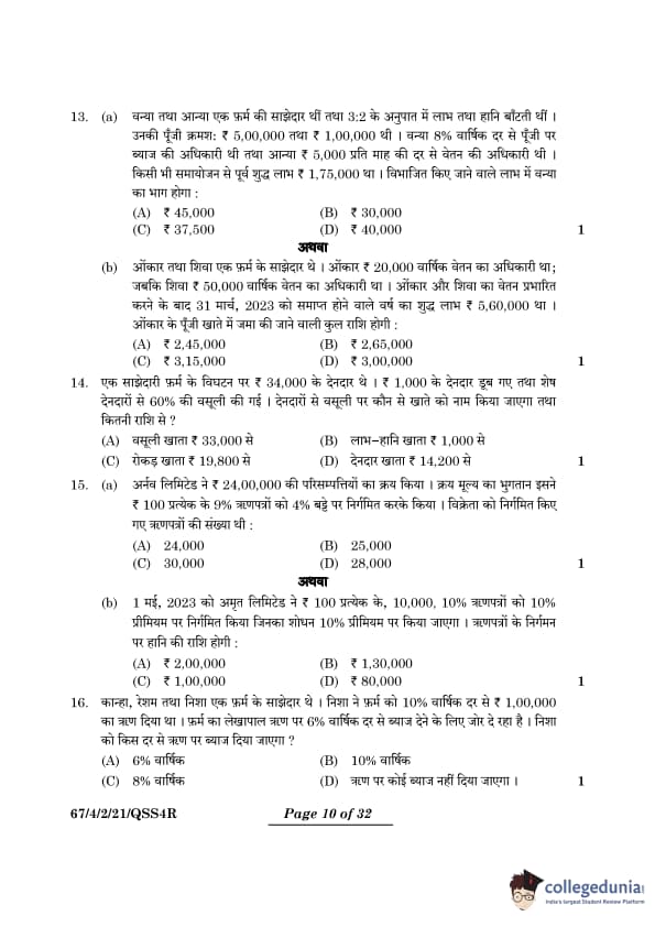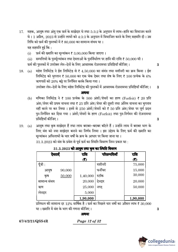 | CBSE Class 12 2024 Accountancy Question Paper with Answer Key | Check Solution |