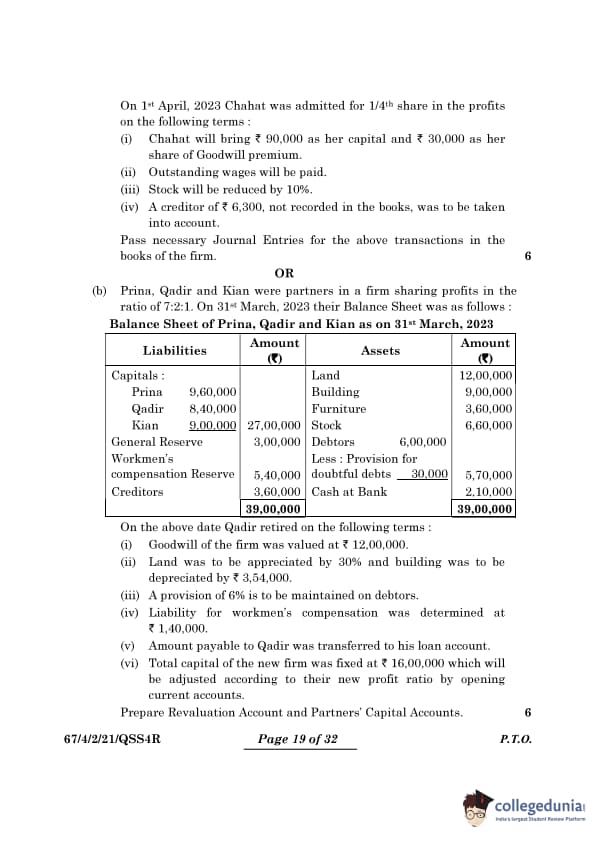 CBSE Class 12 Accountancy Question Paper 2024 (Set 2- 67/4/2) with Answer Key