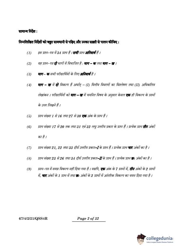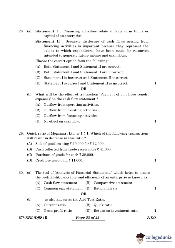 CBSE Class 12 Accountancy Set 2 Question Paper PDF (Code: 67/4/2) is now available for download. CBSE conducted the Class 12 Accountancy examination on March 23, 2024, from 10:30 AM to 1:30 PM. The question paper consists of 34 questions carrying a total of 80 marks. Part A is compulsory for all candidates. Part B has two options. Candidates have to attempt only one of the given options. Option I : Analysis of Financial Statements and Option II : Computerised Accounting. Candidates can use the link below to download the CBSE Class 12 Accountancy Set 2 Question Paper with detailed solutions.