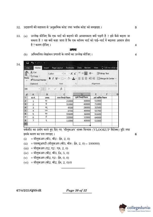 (vi) = VLOOKUP(B2, B2 : E8, 2, 0)/0