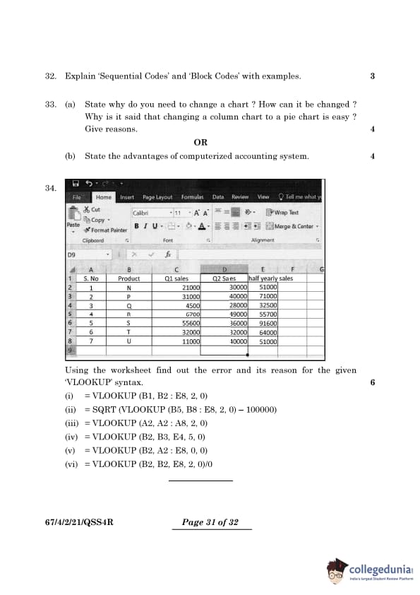 (iv) = VLOOKUP(B2, B3 : E4, 5, 0)