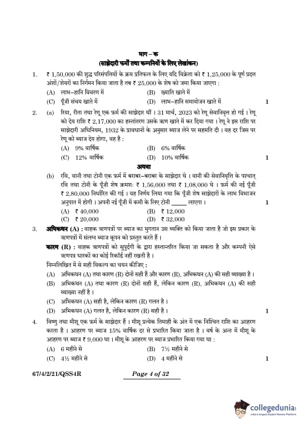 CBSE Class 12 2024 Accountancy Questions with Solutions