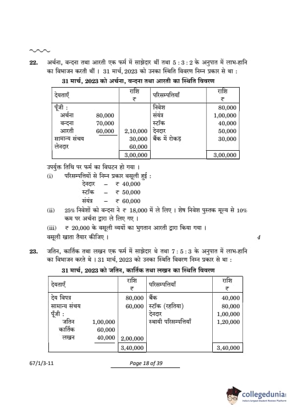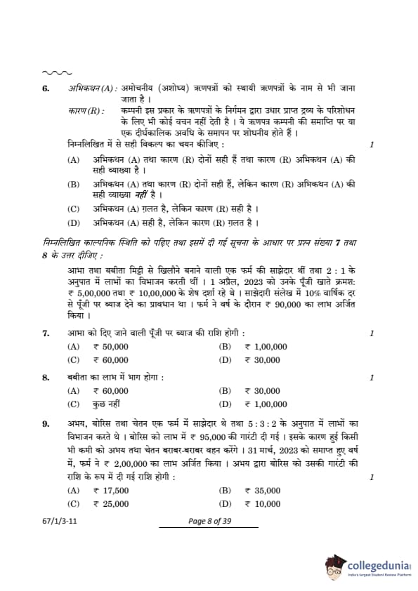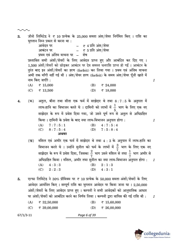 | CBSE Class 12 2024 Accountancy Question Paper with Answer Key | Check Solution |
