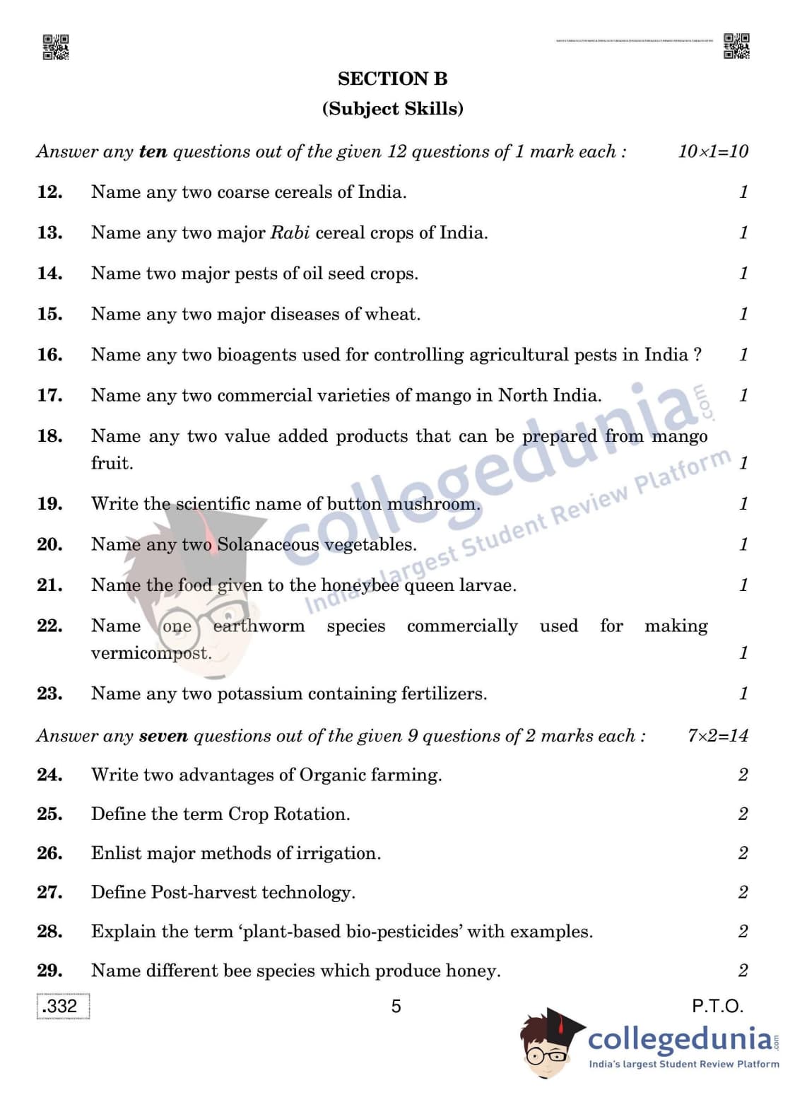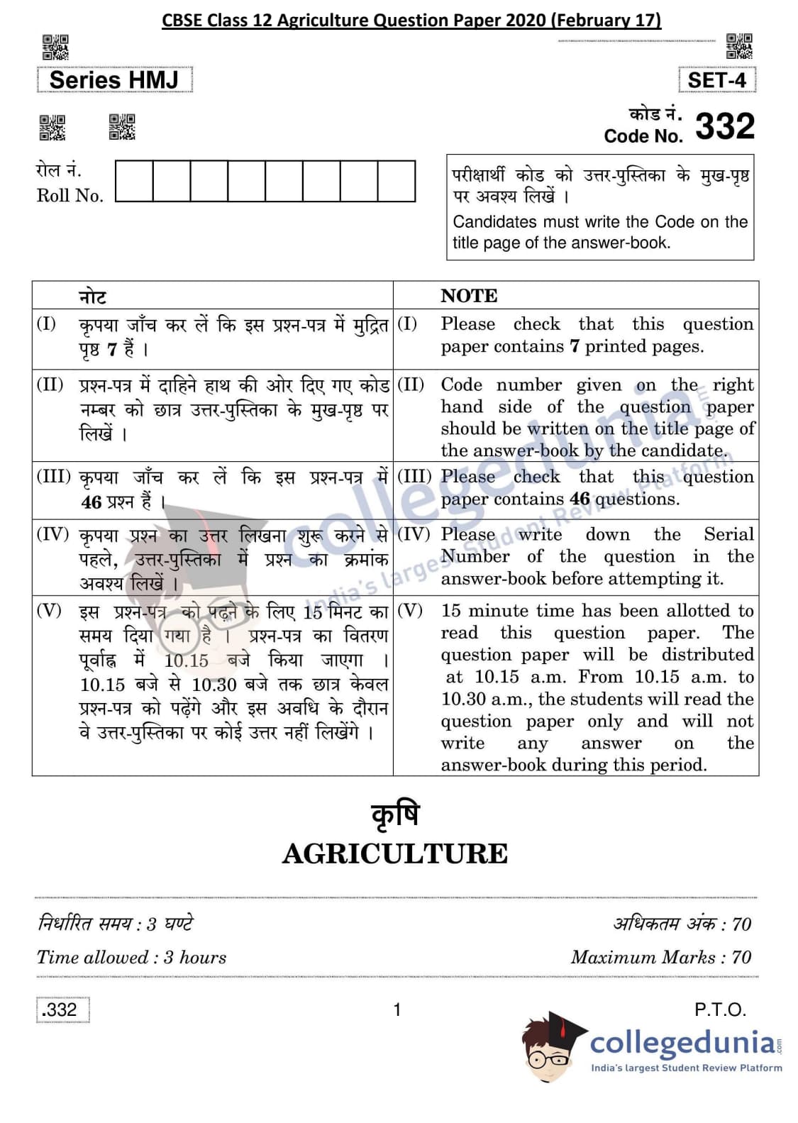 CBSE Class 12 Agriculture Question Paper 2020 with Answer Key (February 17)